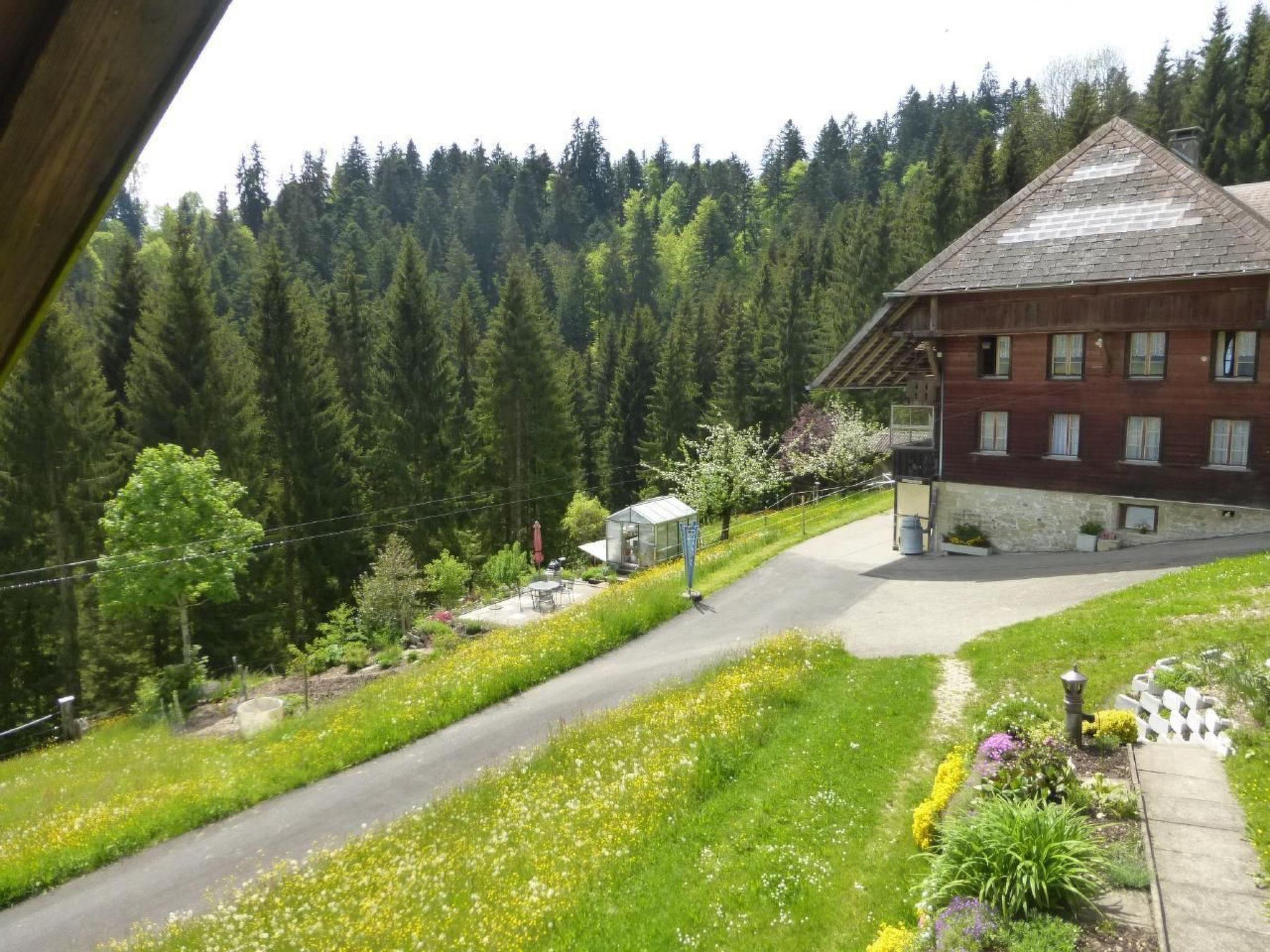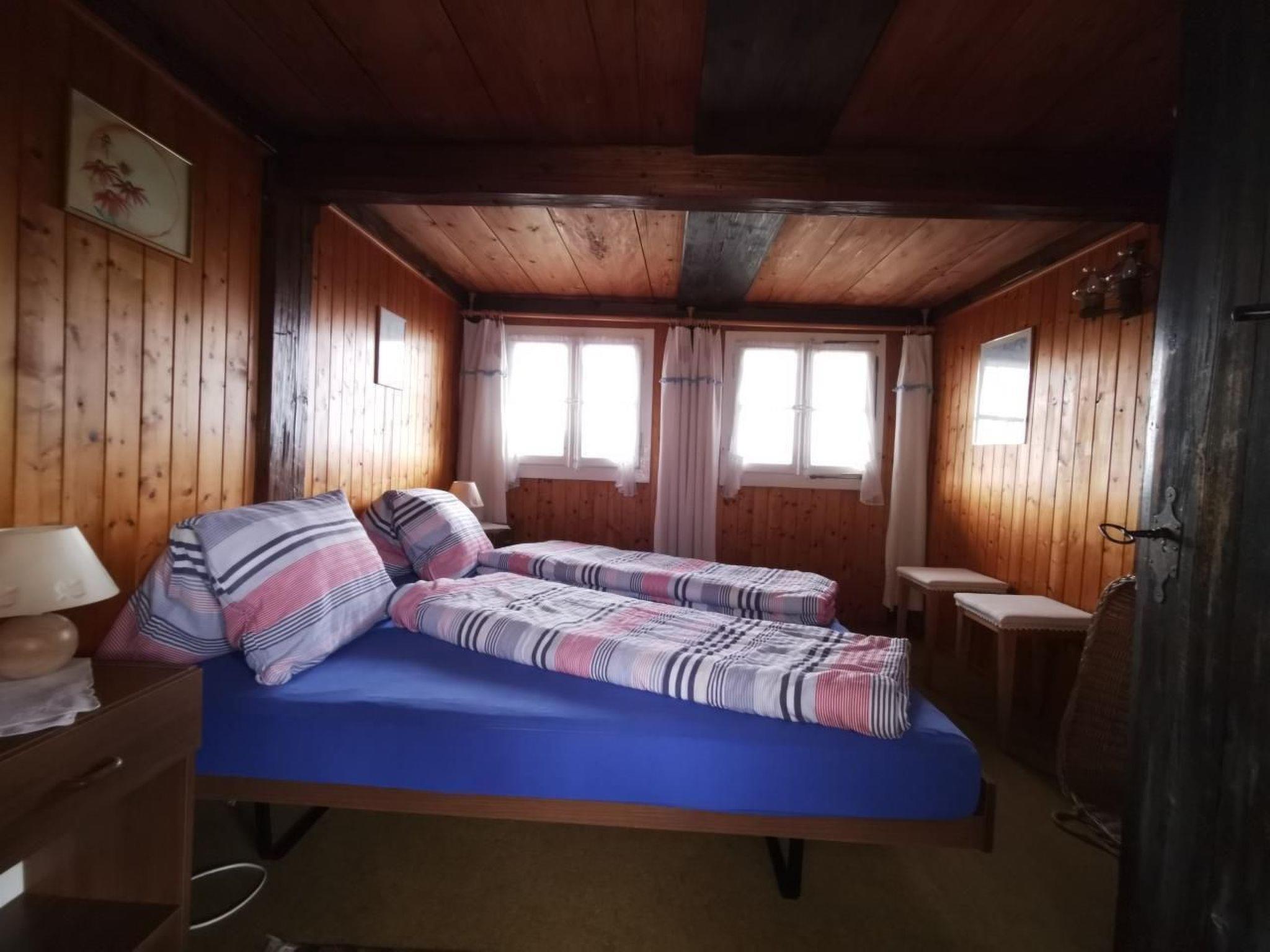The charming, rustic wooden chalet Ronachhüttli is located in the hilly landscape of the Emmental. At 900 metres above sea level, above the village of Signau. The Holzspycher was converted into a holiday flat years ago. The flat can accommodate a maximum of 4 people. The kitchen on the ground floor is equipped with the necessary kitchen utensils. Directly next to the kitchen is a living room with SAT TV, small couch, table with corner bench and the terrace with chemineé, adjoining lawn and flower bed invites you to linger. On the first floor there is a bathroom and a bedroom with a double bed. On the second floor there is another room with two single beds and from the balcony of the Spychers you have a fabulous view of the Emmental hills. the accommodation is a good starting point for hiking and cycling (it is located directly on the heart route stage Langnau-Thun) The holiday flat is suitable for:- people who appreciate simplicity (love) - nature lovers - peace and relaxation in nature, away from the hustle and bustle of everyday life - cyclists and bikers - hikers - adventure seekers - connoisseurs.