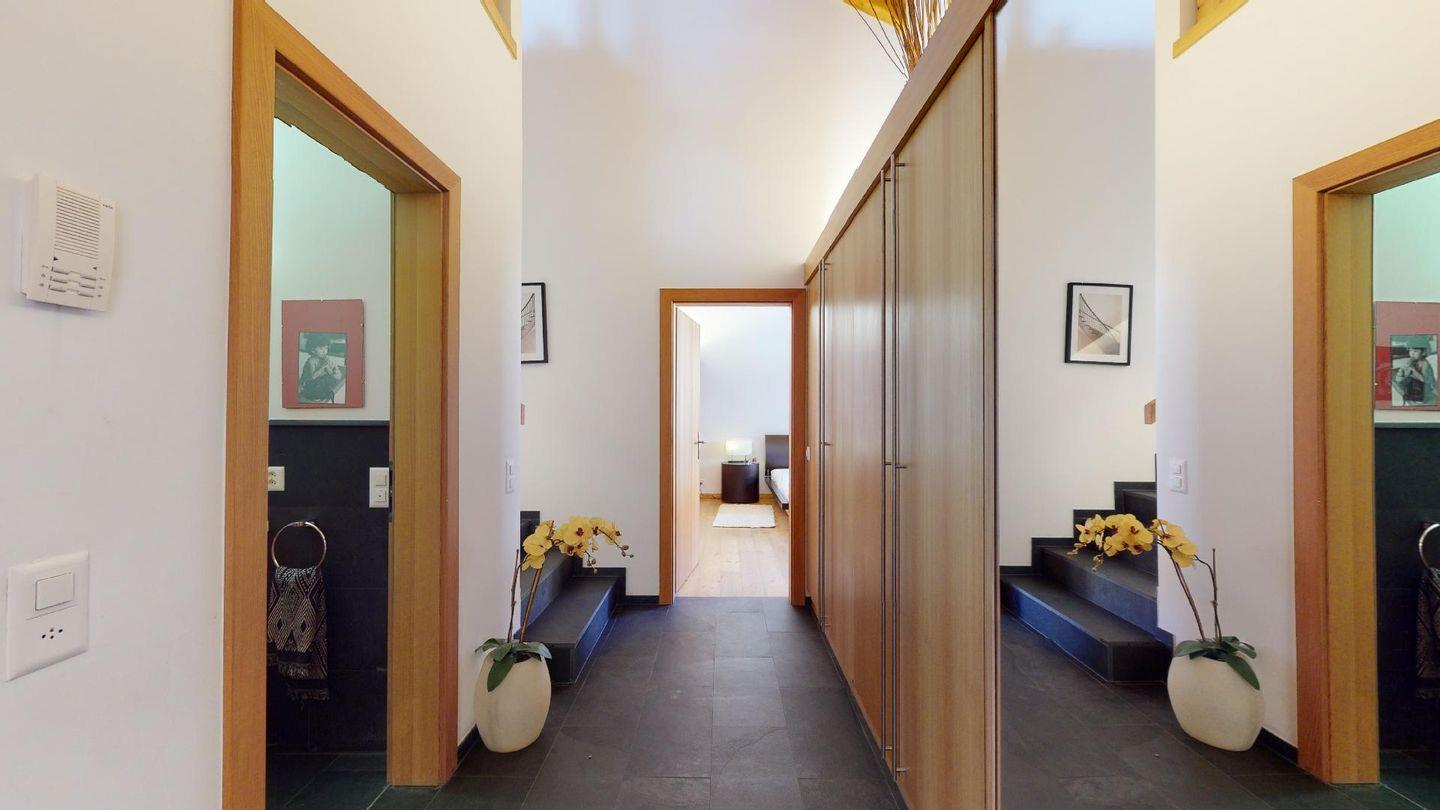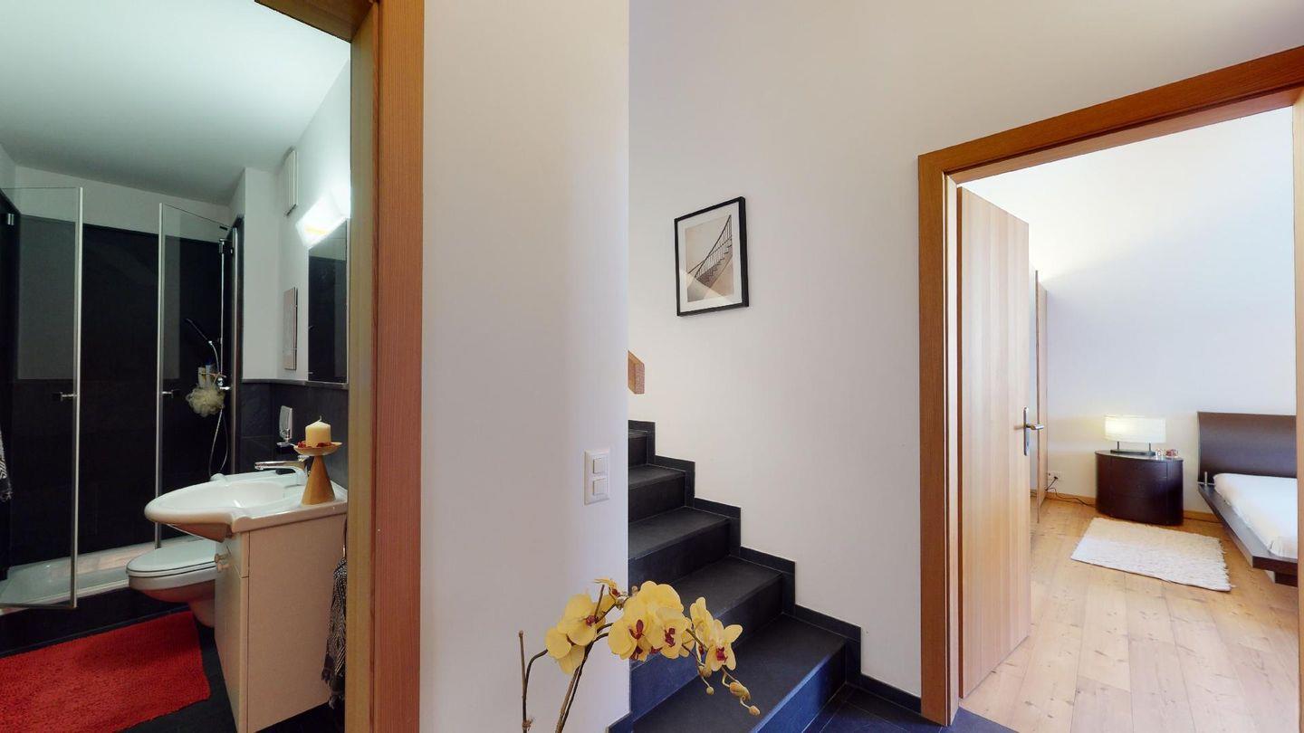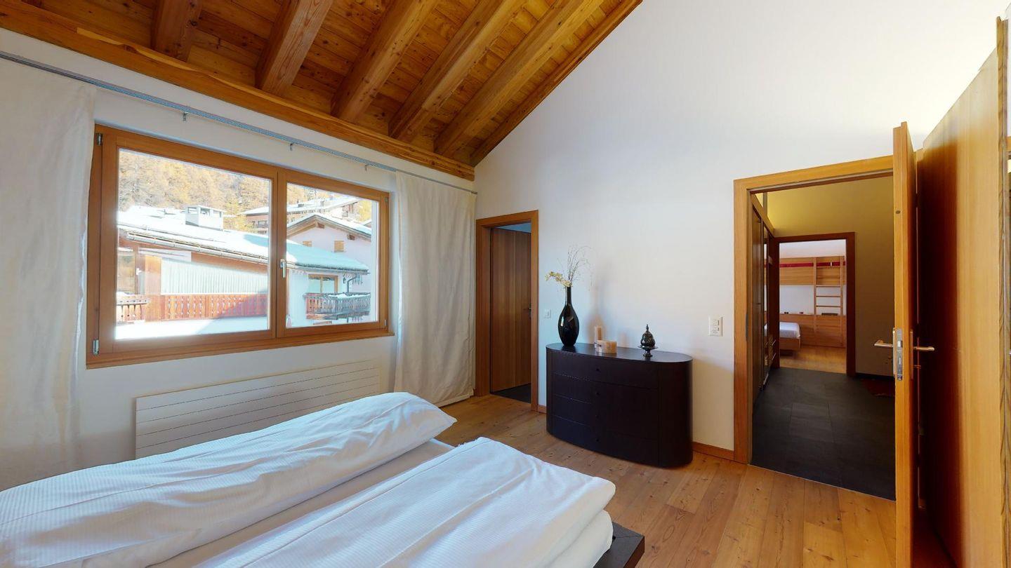 Grosse 3-½ Zimmermaisonette Wohnung im 2. Stock. Eingang mit grosser Garderobe. Ein Doppelschlafzimmer mit eigenem Badezimmer. Ein Schlafzimmer mit zwei Einzelbetten und zwei Hochbetten. Badezimmer mit Dusche. Obere Etage mit offener Küche mit Kühlschrank, Tiefkühler, Herd, Ofen, Mikrowelle und Geschirrspüler, Essecke sowie Balkon. Wohnzimmer mit TV und Kamin. Gemeinschaftliche Waschmaschine. 2 Parkplätze in der Tiefgarage. Haustiere sind nicht erlaubt.