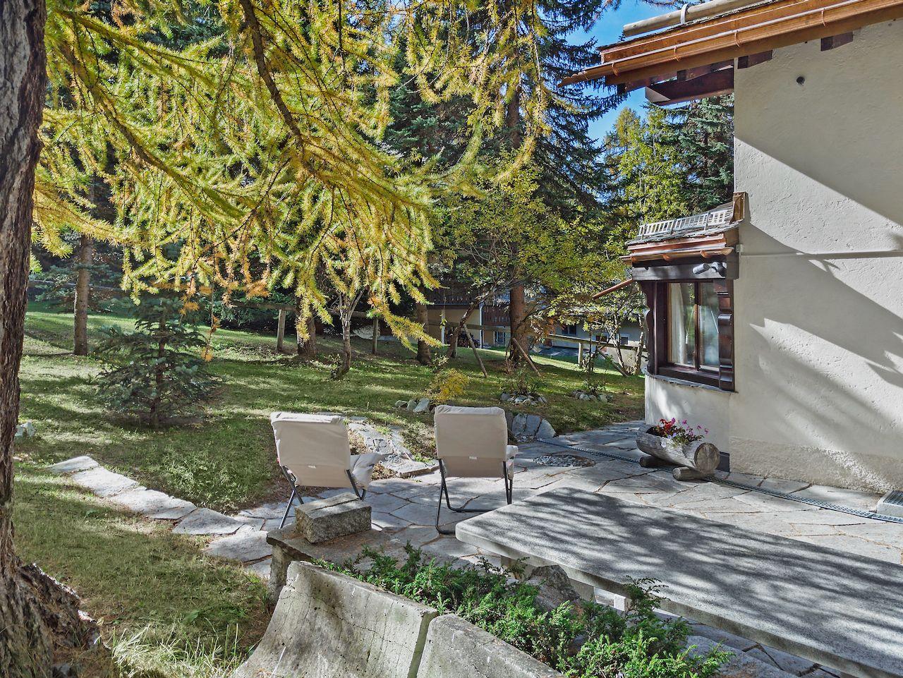 Grosser Garten mit Sitzplatz. Parkplatz im Freien. Skiständer vor dem Haus. Haustiere sind nicht erlaubt.