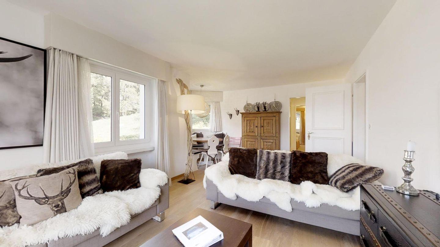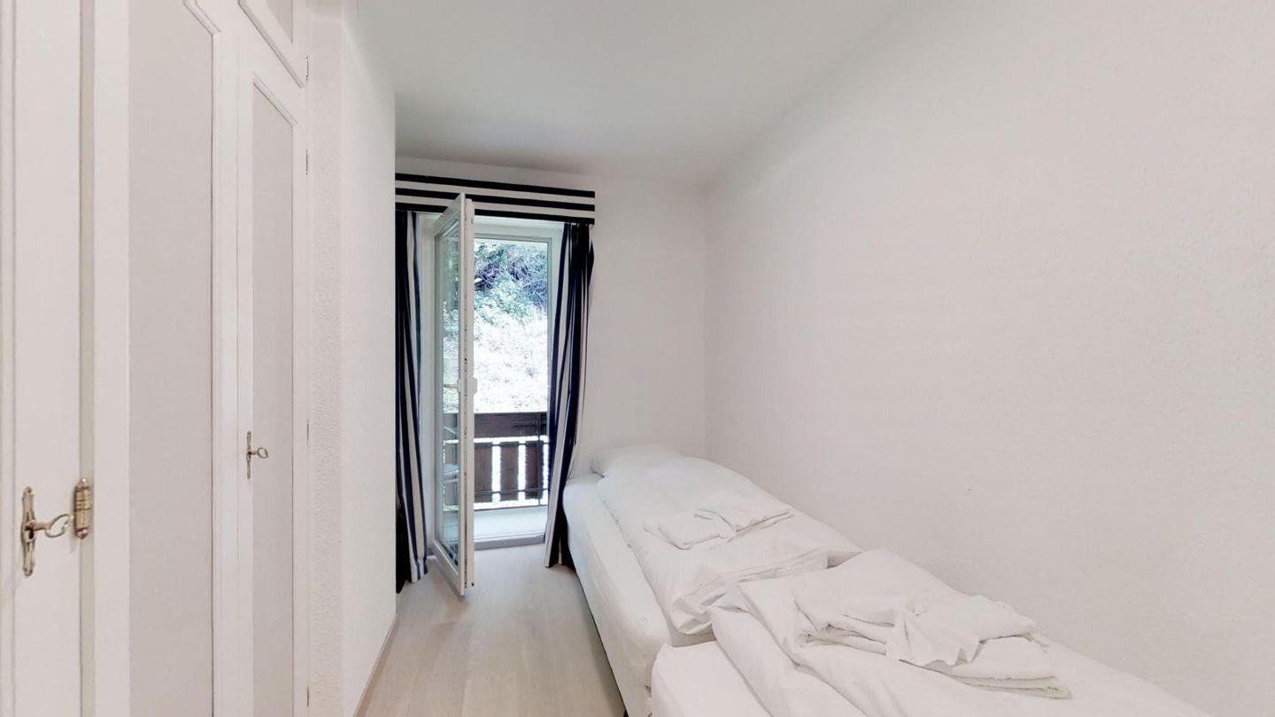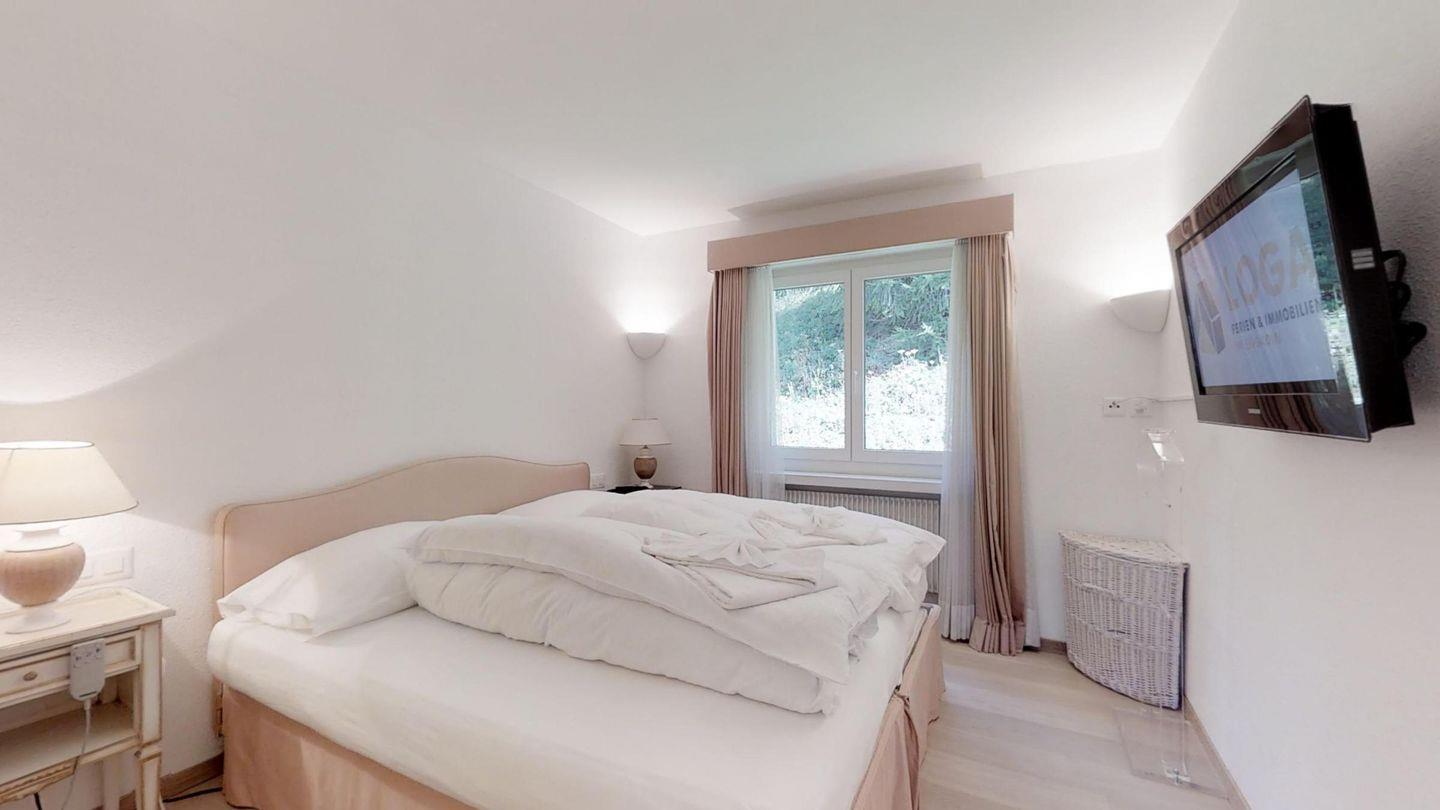 Moderne 3 ½ -Zimmerwohnung in der 1. Etage. Ca. 90 m2, an sehr sonniger und ruhiger Lage direkt am Waldrand. Eingang mit Garderobe. Helles Wohnzimmer mit gemütlicher Essecke und direktem Zugang zum Balkon mit Südlage und wunderschöner Bergsicht. 1 Doppelschlafzimmer mit TV. 1 Zimmer mit zwei separaten Betten und Zugang zu kleinem Balkon. Beide Schlafzimmer verfügen über elektrisch verstellbare Gesundheitsbetten. Badezimmer mit Wanne/WC/Lavabo. Geschlossene Küche mit Backofen, Kühlschrank und Geschirrspüler. Kaffeemaschine CHICCO D'ORO. Waschmaschine und Tumbler im Haus. 1 Garagenplatz. Haustiere sind nicht erlaubt.