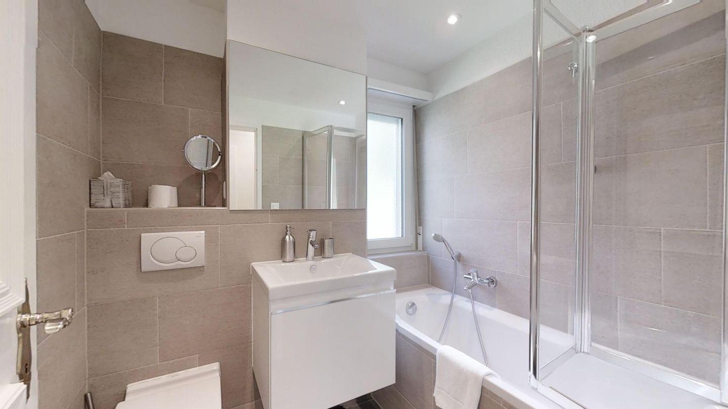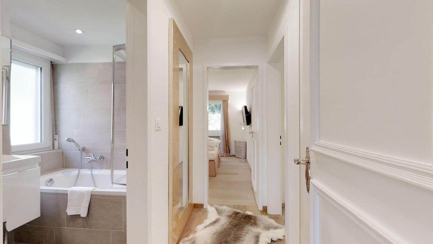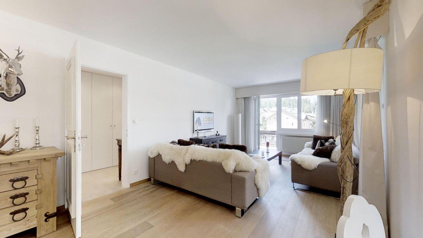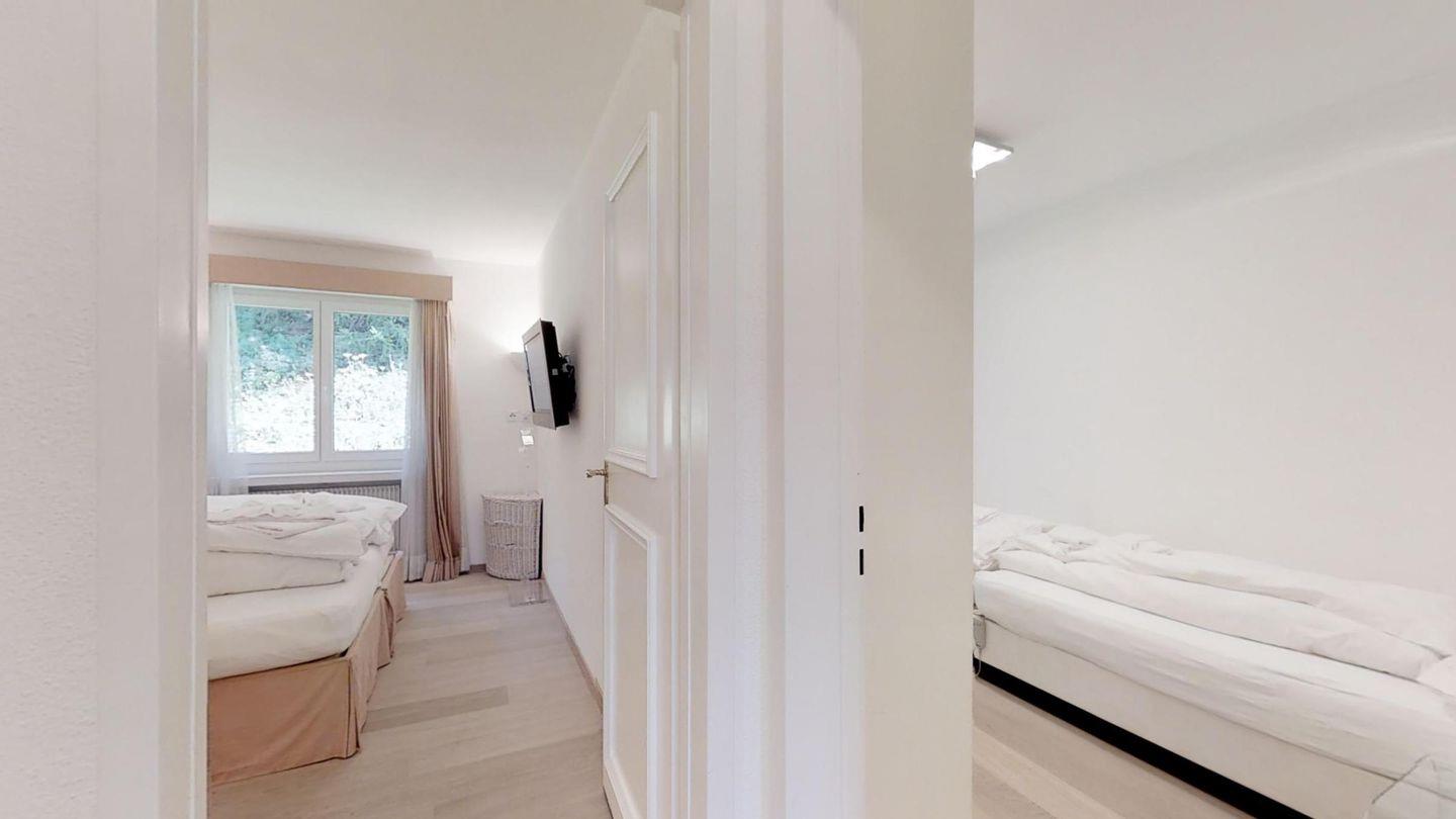 Moderne 3 ½ -Zimmerwohnung in der 1. Etage. Ca. 90 m2, an sehr sonniger und ruhiger Lage direkt am Waldrand. Eingang mit Garderobe. Helles Wohnzimmer mit gemütlicher Essecke und direktem Zugang zum Balkon mit Südlage und wunderschöner Bergsicht. 1 Doppelschlafzimmer mit TV. 1 Zimmer mit zwei separaten Betten und Zugang zu kleinem Balkon. Beide Schlafzimmer verfügen über elektrisch verstellbare Gesundheitsbetten. Badezimmer mit Wanne/WC/Lavabo. Geschlossene Küche mit Backofen, Kühlschrank und Geschirrspüler. Kaffeemaschine CHICCO D'ORO. Waschmaschine und Tumbler im Haus. 1 Garagenplatz. Haustiere sind nicht erlaubt.