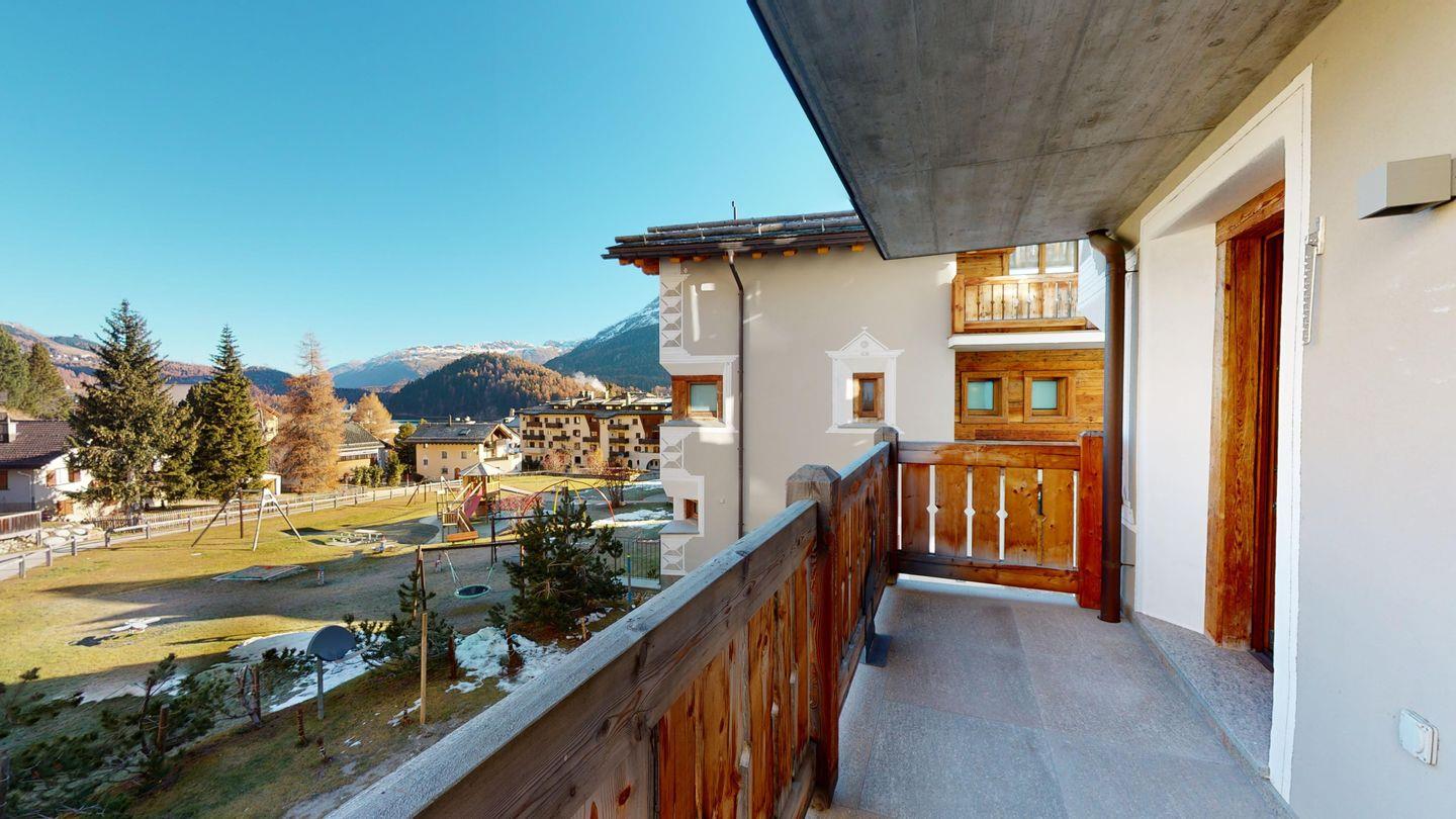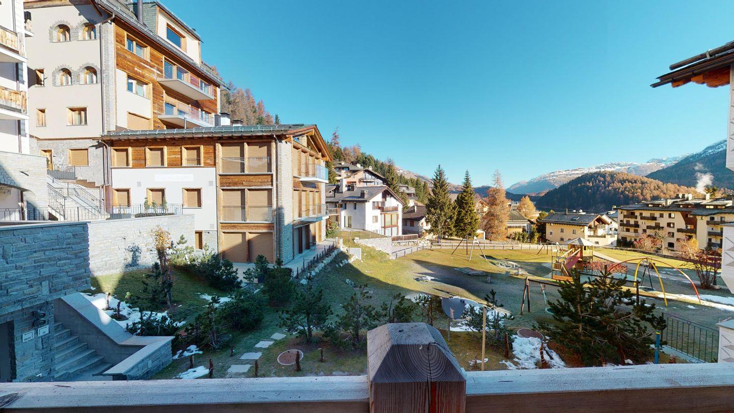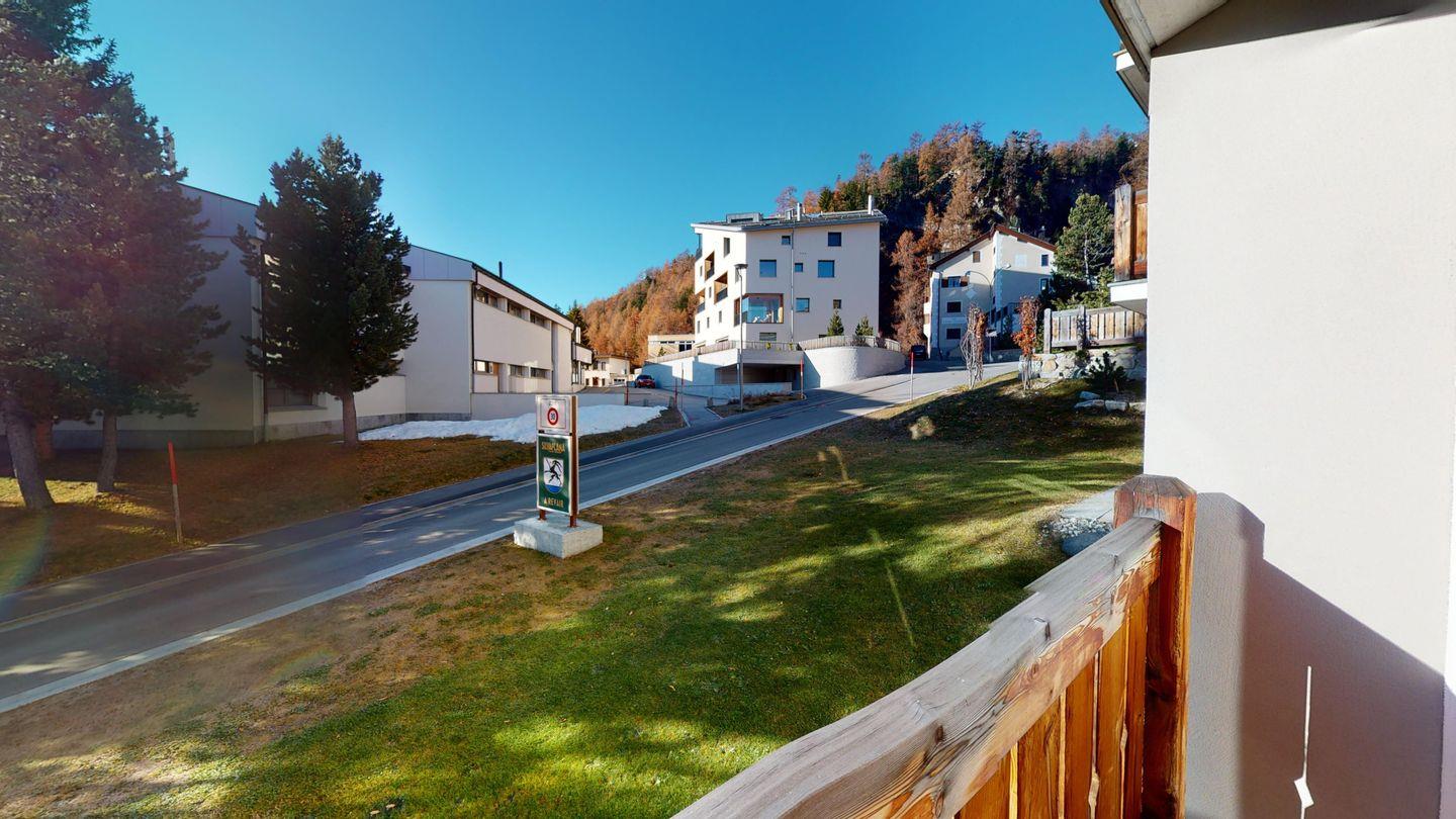 Das 2014 erbaute Mehrfamilienhaus befindet sich am Ortsausgang von Silvaplana Richtung Julierpass.