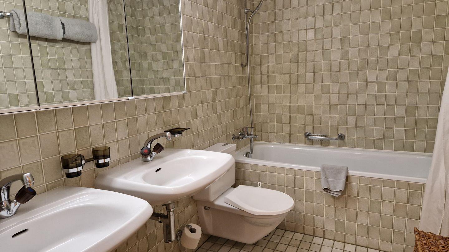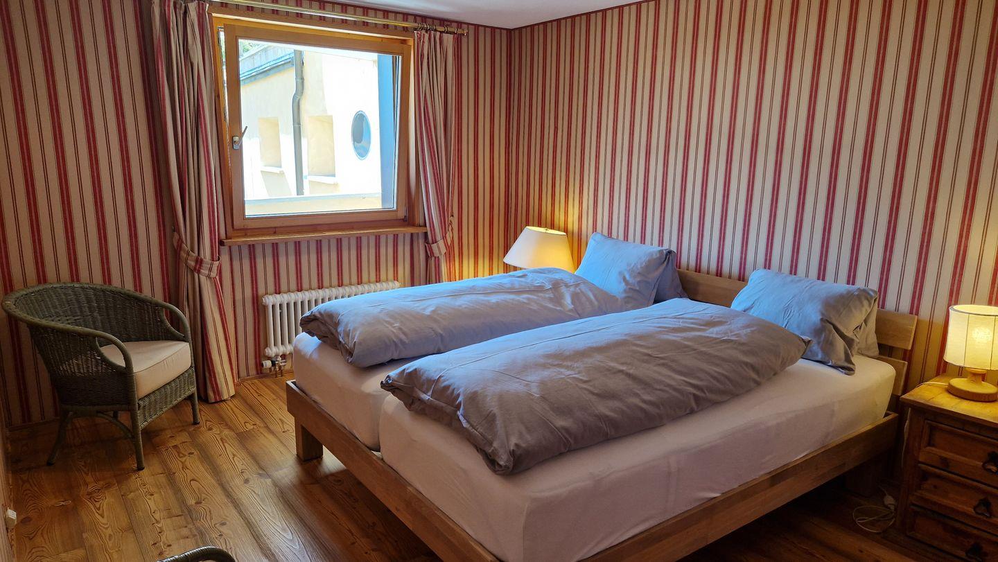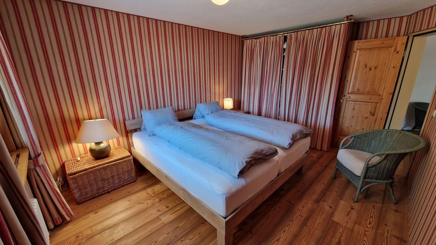 2-Zimmerwohnung im Haus Rizza, 3. Stock, 67 m2. Die Wohnung befindet sich auf gleicher Höhe wie die Tiefgarage und bietet ein gemütliches Wohn-/Esszimmer mit Fernseher, ein Schlafzimmer mit einem Doppelbett, ein Bad/WC mit Doppellavabo, eine Küche mit Backofen, Geschirrspüler, Nesspresso-Kapselmaschine und Wasserkocher. Der Balkon ist windgeschützt und offenbart einen schönen Ausblick in die Berge. Nichtraucherwohnung.