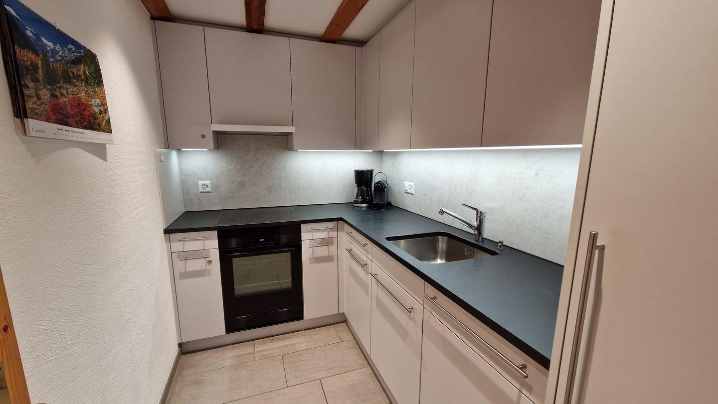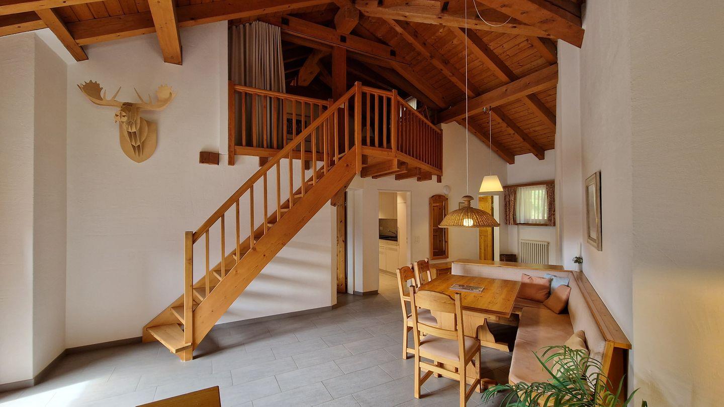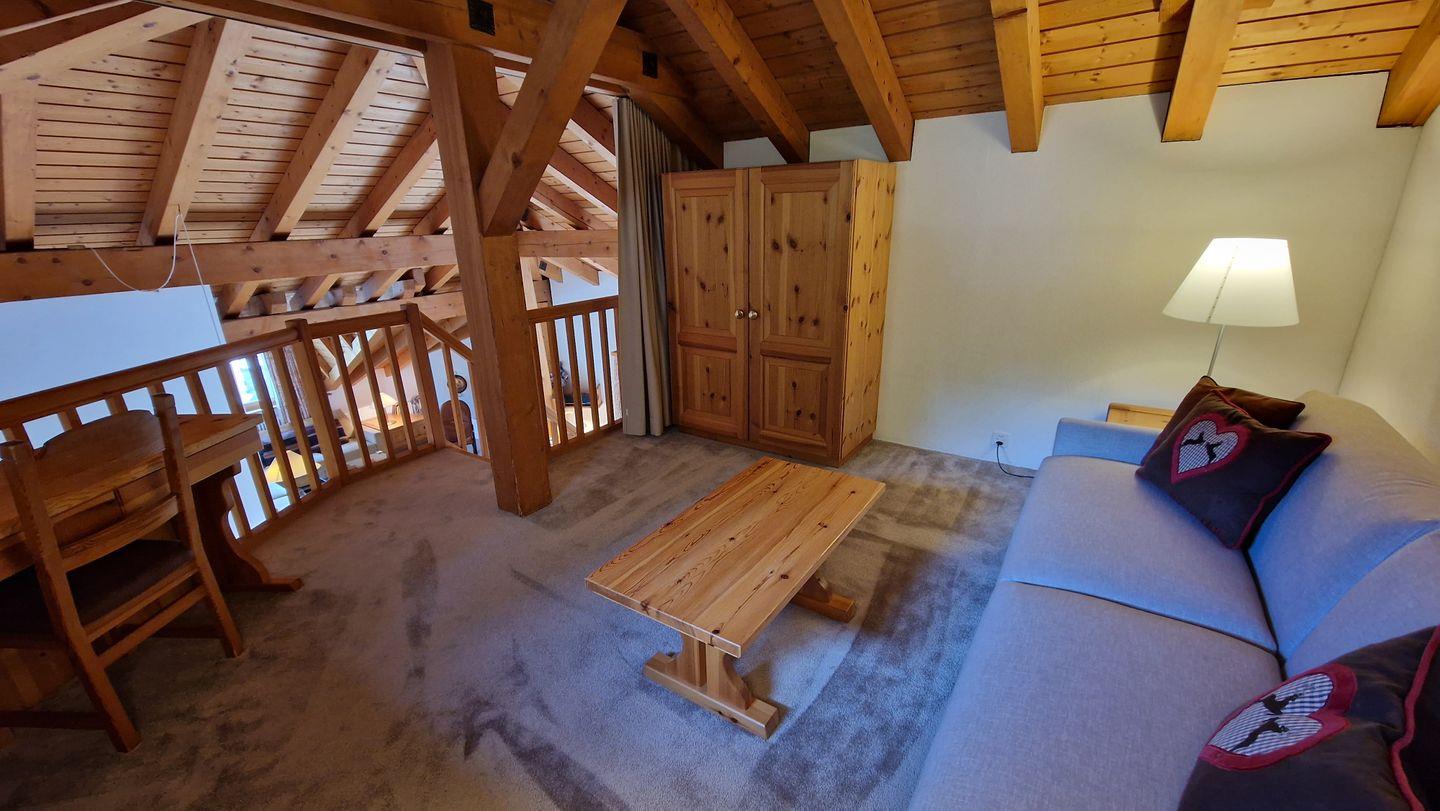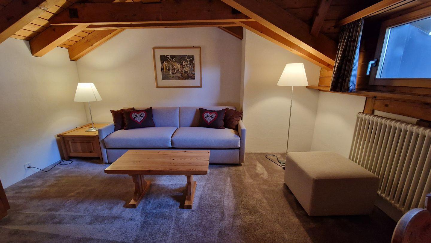 3 1/2-Zimmer-Dachwohnung im Haus Rizza, 140 m2. Zur geräumigen Wohnung gehört ein grosses Wohn-/Esszimmer mit Cheminée, ein Schlafzimmer mit Doppelbett und eigener Dusche/WC, ein Schlafzimmer mit zwei Einzelbetten, eine Galerie mit grossem, konfortabelm Schlafsofa (180x200), ein Bad/WC mit Doppellavabo, eine Küche mit Backofen, Geschirrspüler, Nesspresso-Kapselmaschine und Wasserkocher. Der nach Süden ausgerichtete sonnige Balkon bietet eine prächtige Berg- und Seesicht. Nichtraucherwohnung.