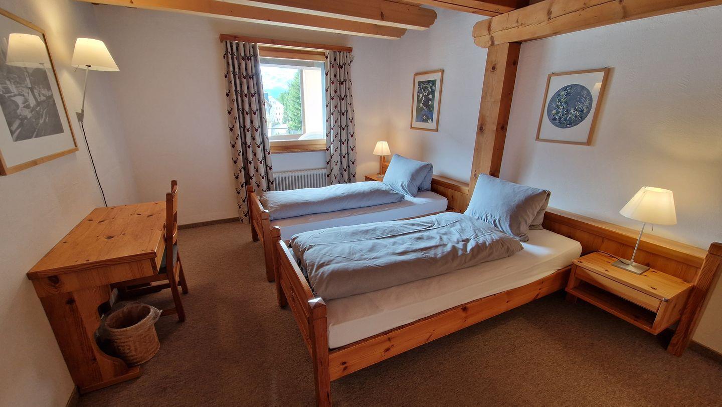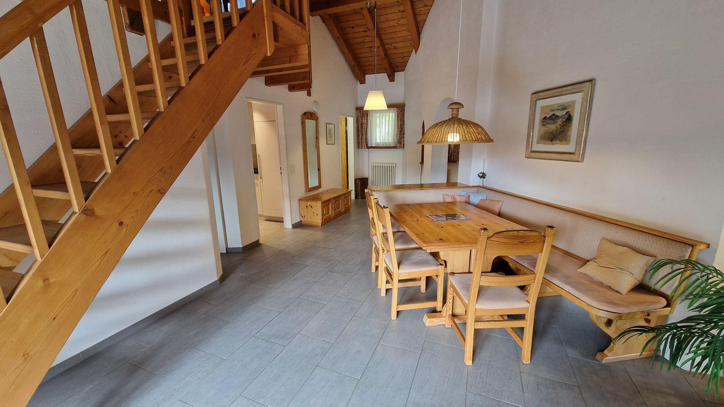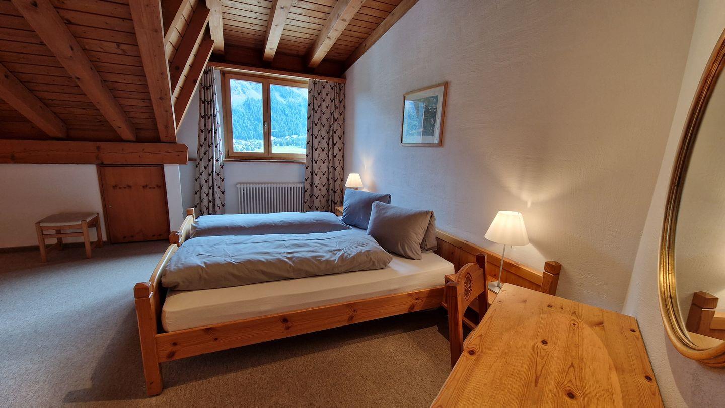 3 1/2-Zimmerwohnung im Haus Rizza, Dachgeschoss, 140 m2. Zur geräumigen Maisonettwohnung gehört ein grosses Wohn-/Esszimmer mit Cheminée, ein Schlafzimmer mit Doppelbett und eigener Dusche/WC, ein Schlafzimmer mit zwei Einzelbetten, eine Galerie mit grossem, konfortabelm Schlafsofa (180x200), ein Bad/WC mit Doppellavabo, eine Küche mit Backofen, Geschirrspüler, Nesspresso-Kapselmaschine und Wasserkocher. Der nach Süden ausgerichtete sonnige Balkon bietet eine prächtige Berg- und Seesicht. Nichtraucherwohnung.