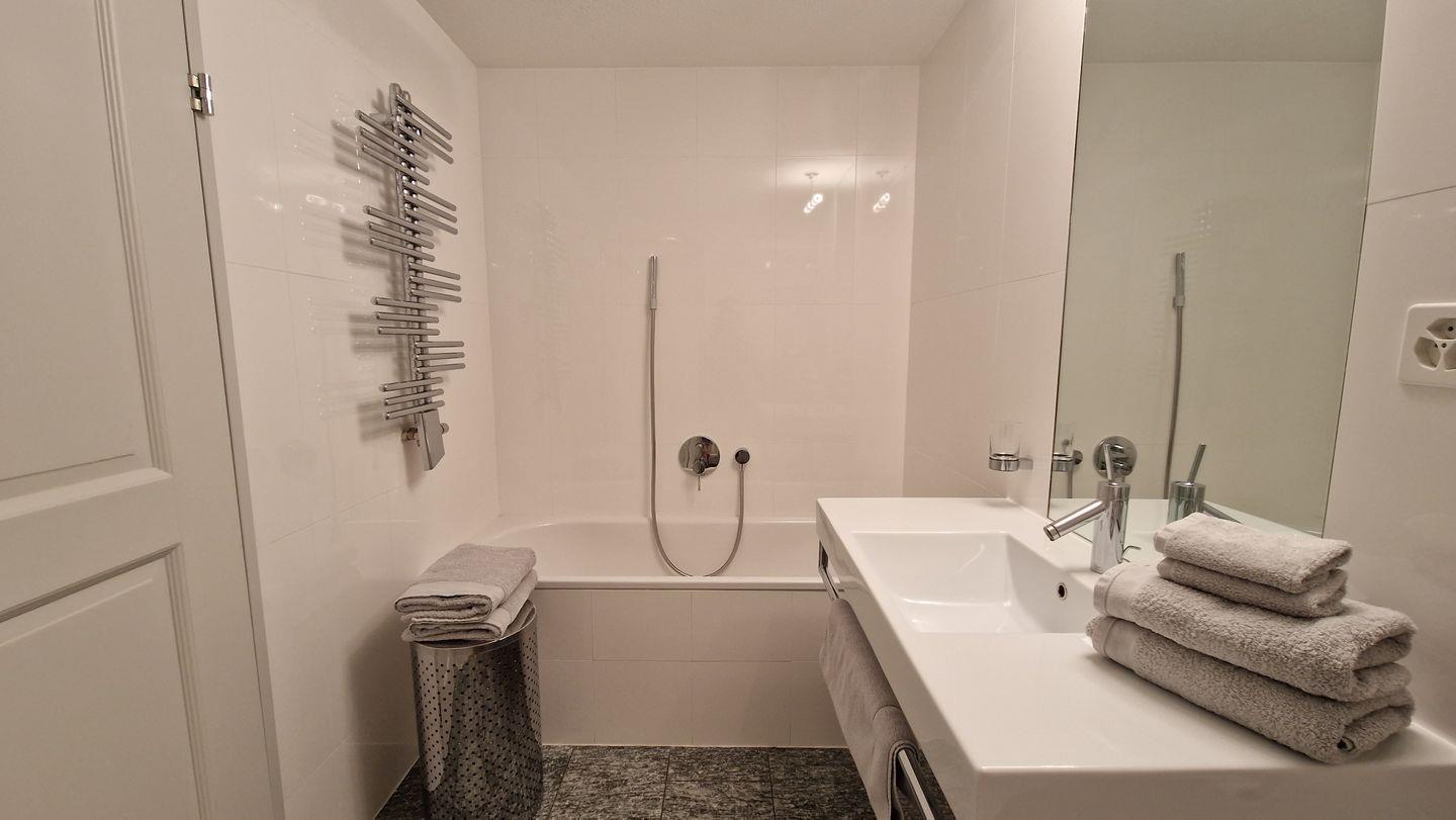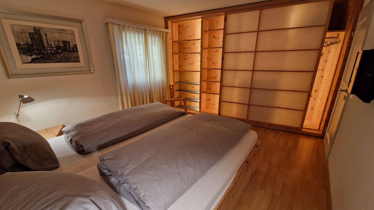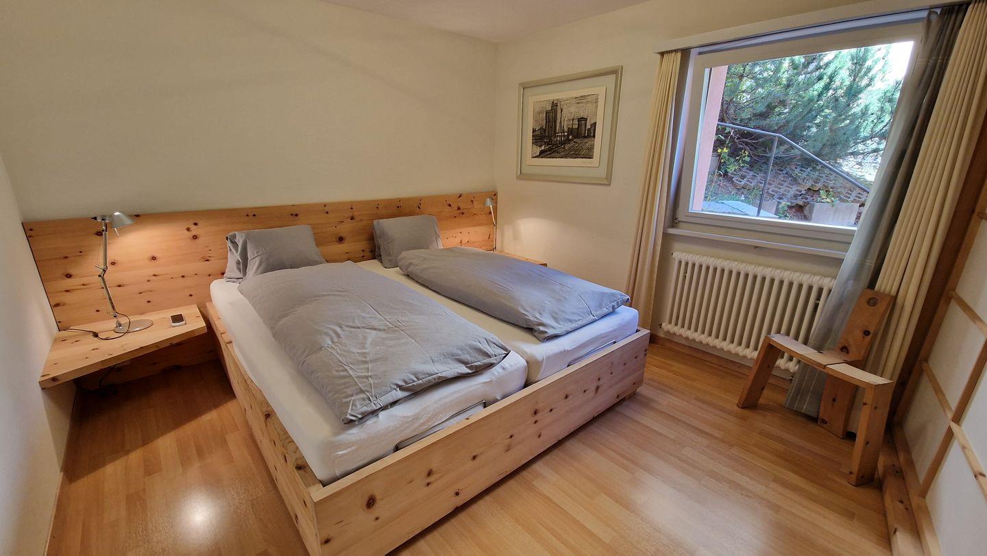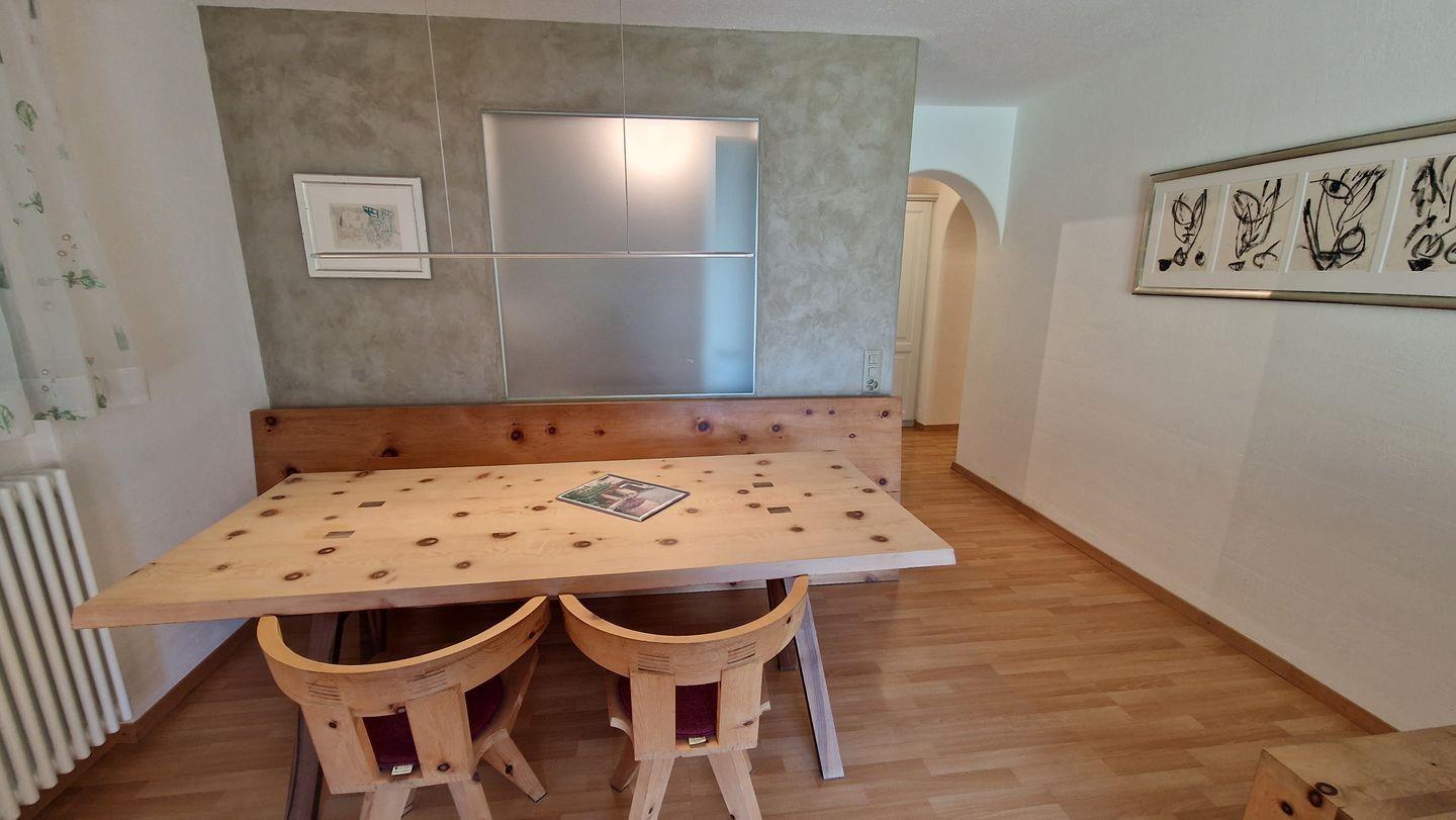 2-Zimmerwohnung im Haus Leivra, Parterre, 75 m2. Die Wohnung ist mit Arvenmöbeln ausgestattet und verfügt über ein grosszügiges Wohn-/Esszimmer mit Fernseher, ein Schlafzimmer mit Doppelbett, ein Bad/WC mit Dusche und eine grosse Küche mit Backofen, Geschirrspüler, Kühlschrank und kleinem Gefrierschrank sowie Nesspresso-Kapselmaschine. Die gedeckte Terrasse ist nach Süden ausgerichtet und bietet eine schöne Aussicht in die Berge. Nichtraucherwohnung.