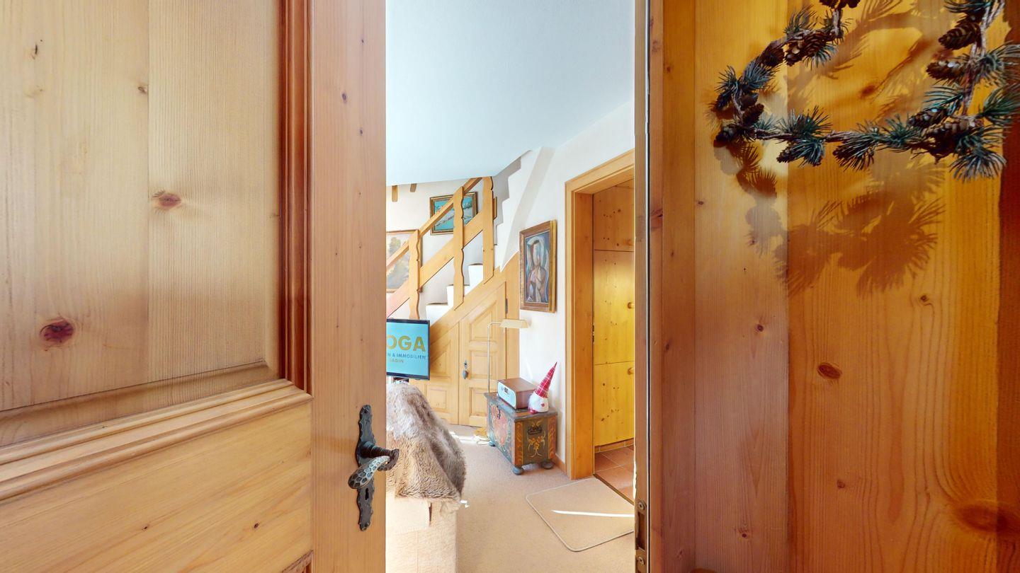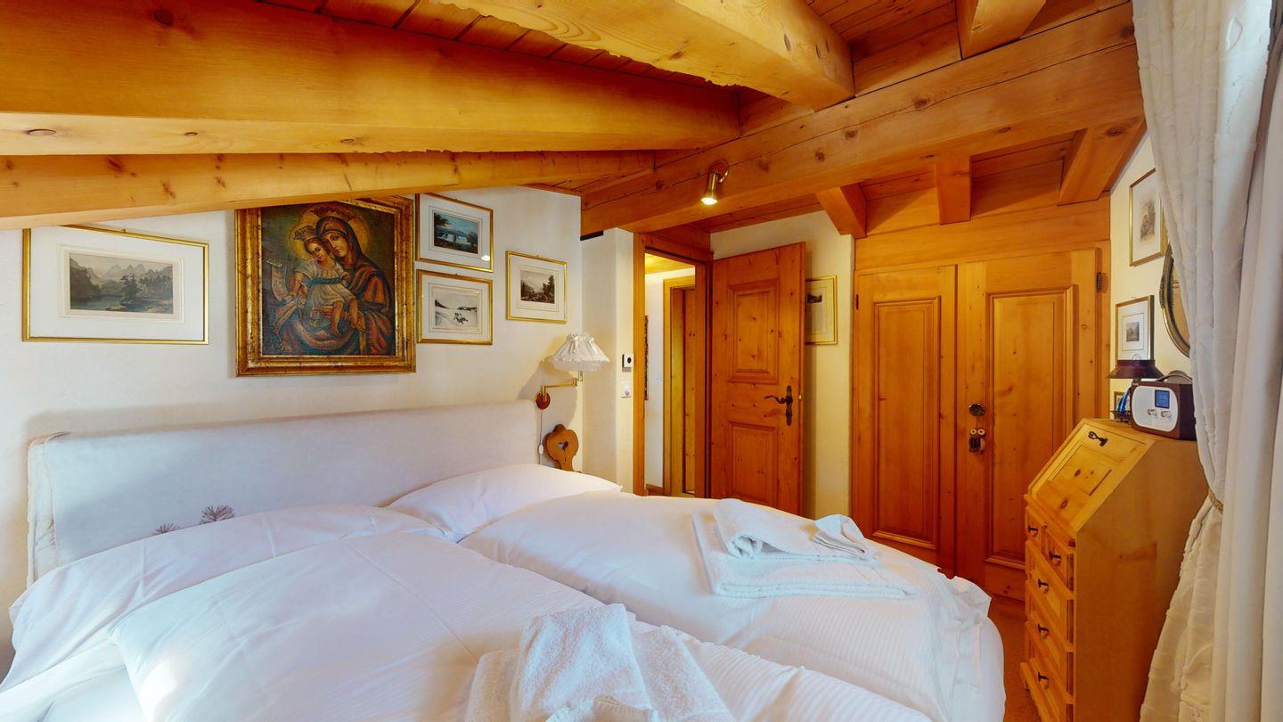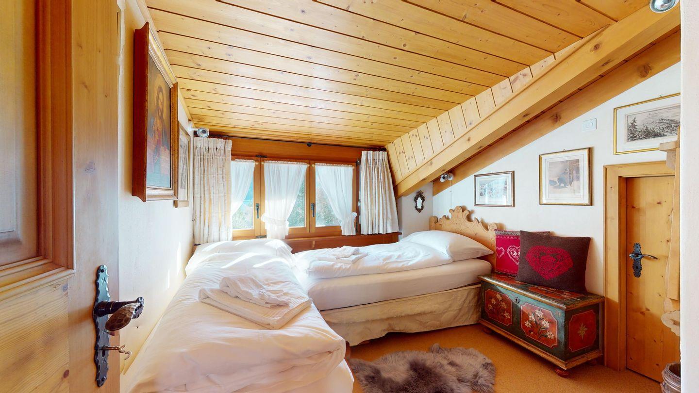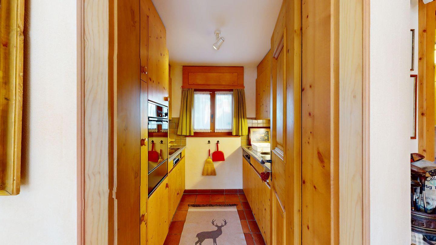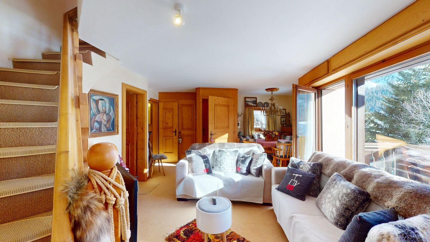 3½-Zimmerwohnung im Dachgeschoss, ca. 90 m², mit separatem Eingang. Wohn-/ Esszimmer mit Kamin und Balkon. Radio und TV. Ruhige Lage mit See- und Bergsicht. Kleine Küche mit Geschirrspüler und Backofen. Chicco d'Oro Kaffeemaschine. Doppelzimmer (2x90x195). Kinderzimmer mit 2x Einzelbetten (2x85x190). Bad/WC/Badewanne. Garagenplatz Nr. 15B. Waschküche und Skiraum zur Mitbenützung. Haustiere sind nicht erlaubt.