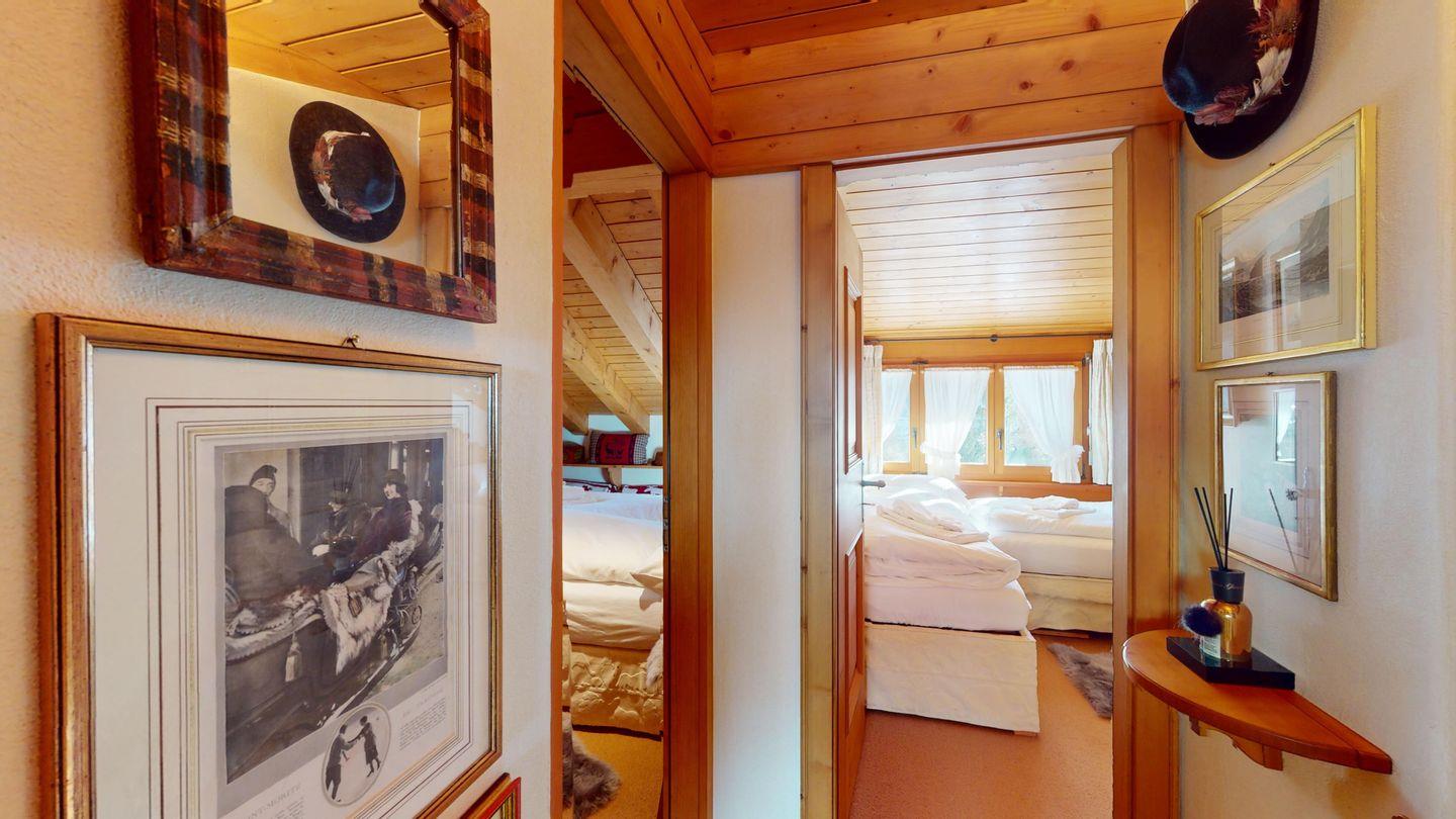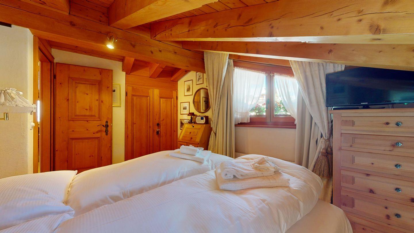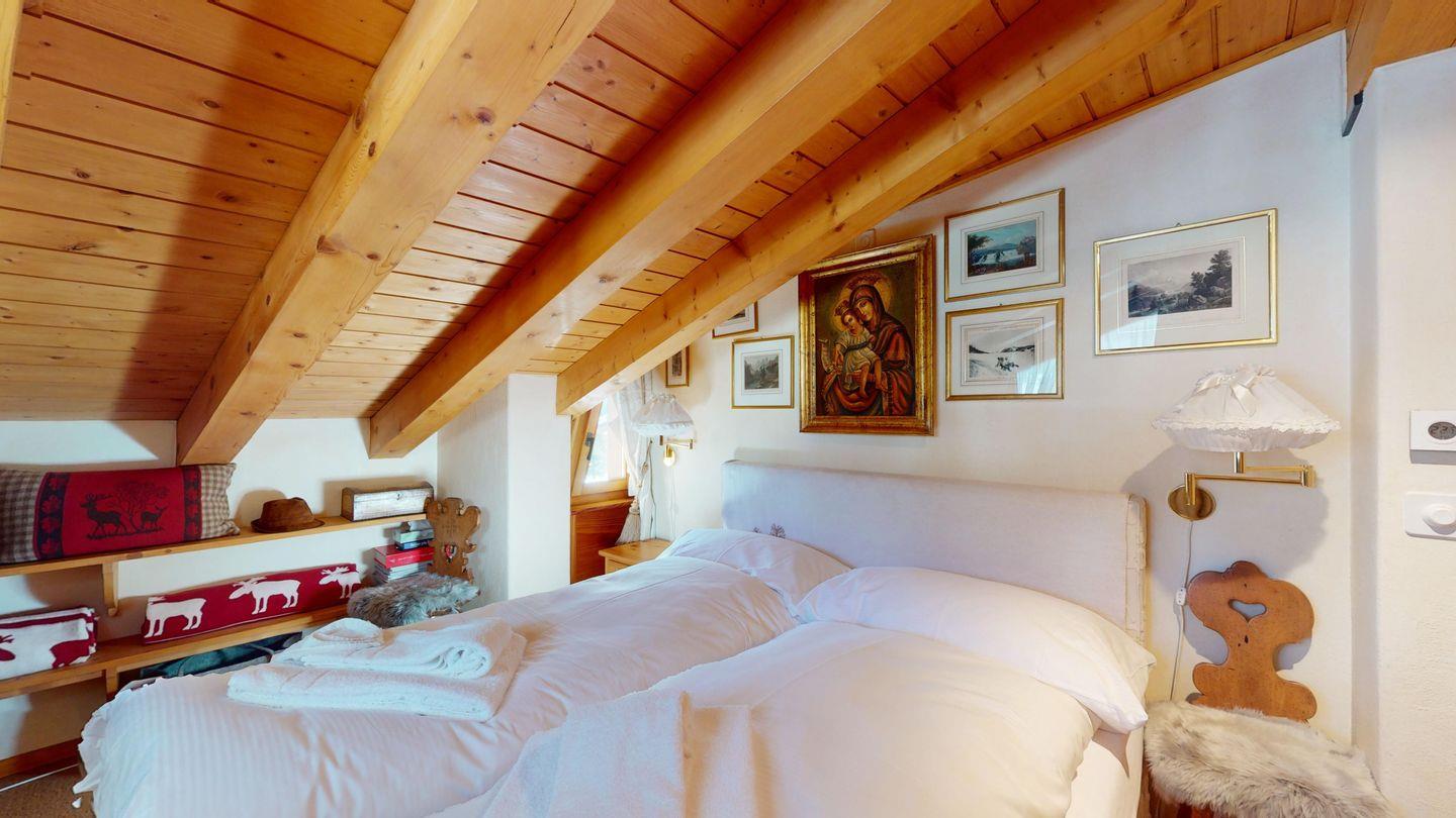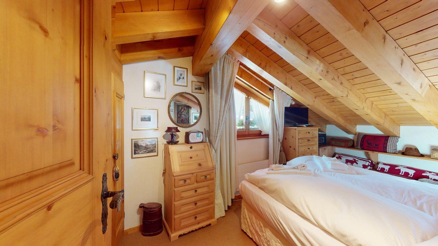 3½-Zimmerwohnung im Dachgeschoss, ca. 90 m², mit separatem Eingang. Wohn-/ Esszimmer mit Kamin und Balkon. Radio und TV. Ruhige Lage mit See- und Bergsicht. Kleine Küche mit Geschirrspüler und Backofen. Chicco d'Oro Kaffeemaschine. Doppelzimmer (2x90x195). Kinderzimmer mit 2x Einzelbetten (2x85x190). Bad/WC/Badewanne. Garagenplatz Nr. 15B. Waschküche und Skiraum zur Mitbenützung. Haustiere sind nicht erlaubt.