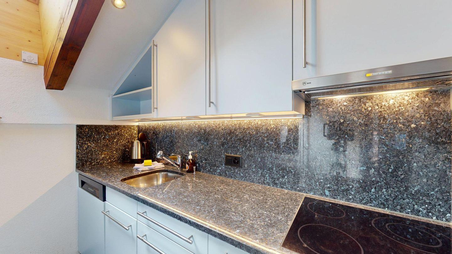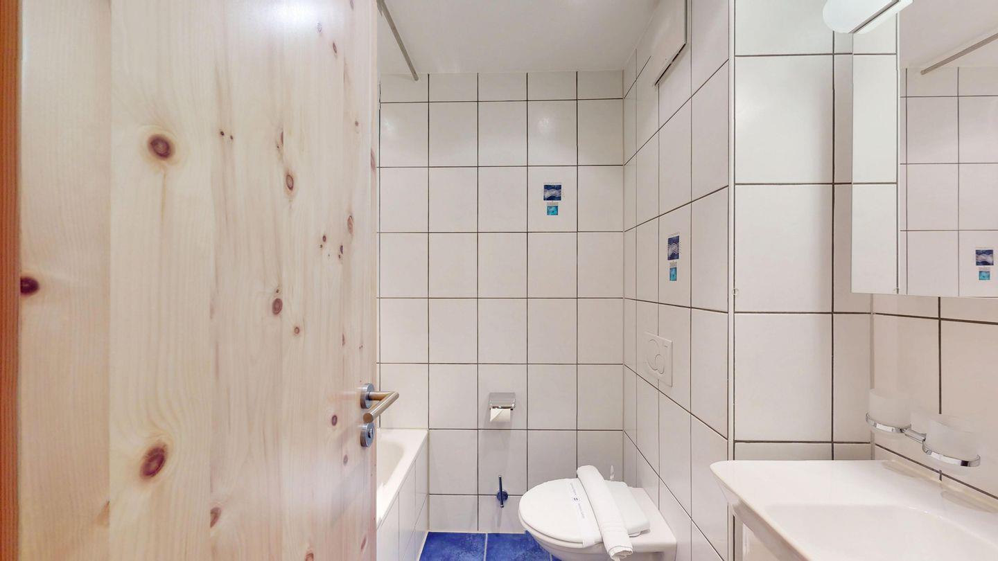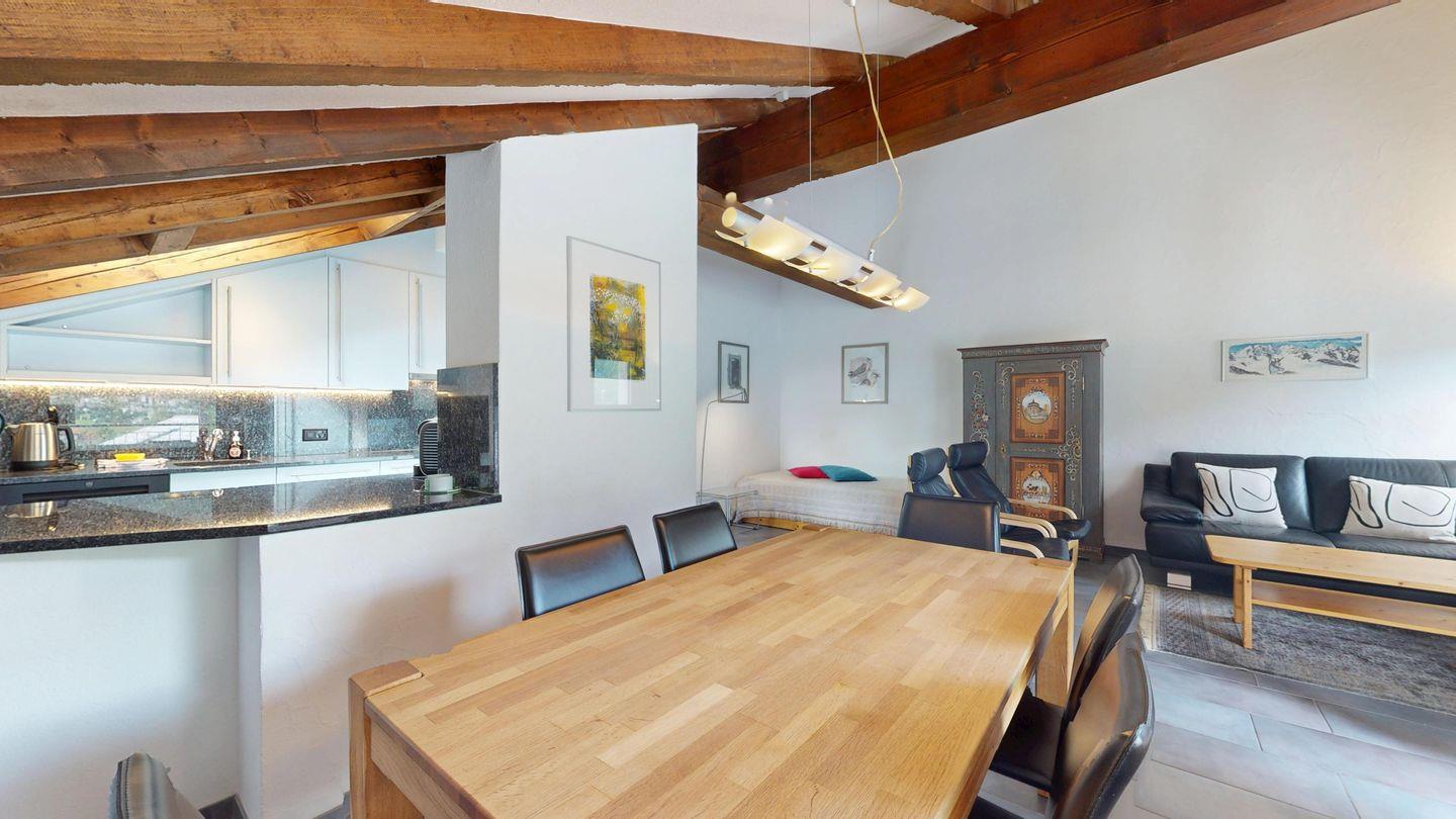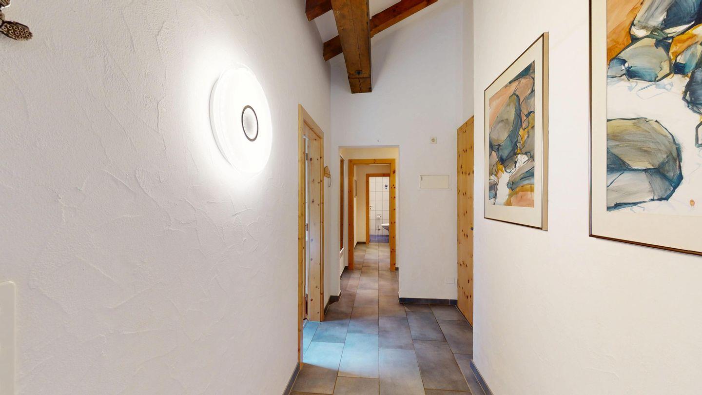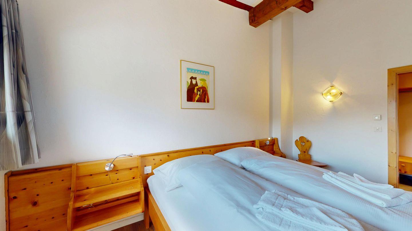3-Zimmer-Dachwohnung, abgeschrägt, im 3. Stock, 87 m2. Wohnzimmer mit 2 Schlafmöglichkeiten und Balkon. Radio, Fernseher. Küche offen gegen das Wohnzimmer mit Backofen, Geschirrspüler und Kühlschrank mit separatem Tiefkühlfach. CHICCO D'ORO Kaffeemaschine. Ein Zweibettzimmer. Dusche/WC/Lavabo. Separater Schlafteil mit Garderobe, ein Doppelzimmer, Bad/WC/Lavabo. Der Spabereich des Hotels Albana kann zum Preis von CHF 25.00 pro Person und Tag genutzt werden, Anmeldung und Zahlung direkt im Hotel. 1 Garagenplatz und 1 Aussenparkplatz. Skiraum zur Mitbenützung. Haustiere sind nicht erlaubt.
