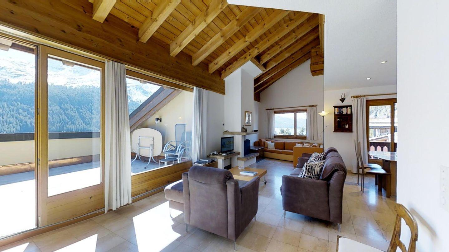 Grosszügige, helle 3½ - Zimmer-Duplexwohnung im 3. OG/DG mit Galerie, 113 m2, an ruhiger Südwest-Lage mit schöner See- und Bergsicht. Helles Wohn- und Esszimmer mit Dachterrasse und Sicht auf den Corvatsch (Balkonmöbel vorhanden) und einem kleinen Balkon mit Sicht Richtung Maloja. Kamin. TV, Radio und Telefon mit Zähler. Offene Küche mit Geschirrspüler und Backofen. Kaffeemaschine Chicco d'Oro. Ein Doppelzimmer (Doppelbett mit zwei Matratzen), Dusche/WC/Lavabo, Ausgang zur Dachterrasse. Galerie: abgeschlossenes Doppelzimmer mit wunderschöner Aussicht Richtung Maloja, Bad/WC/Lavabo/Bidet. Französisches Bett auf der offenen Galerie. Komfortable Einrichtung mit verschiedenen Einbauschränken. Marmorböden. 1 Garagenplatz. Waschküche und Skiraum zur Mitbenützung. Haustiere sind nicht erlaubt.