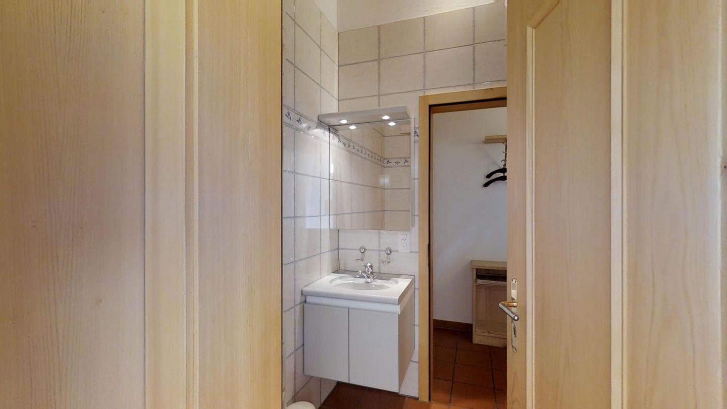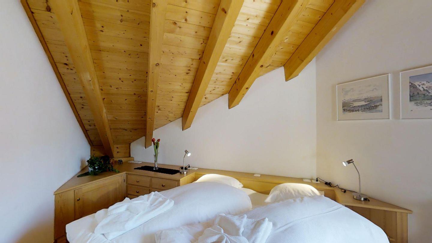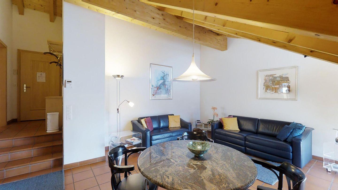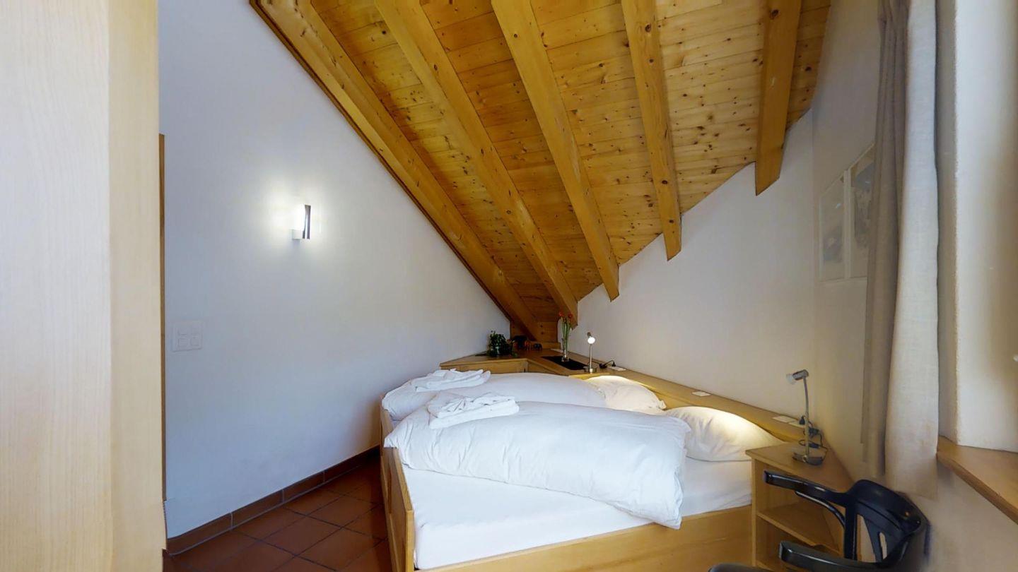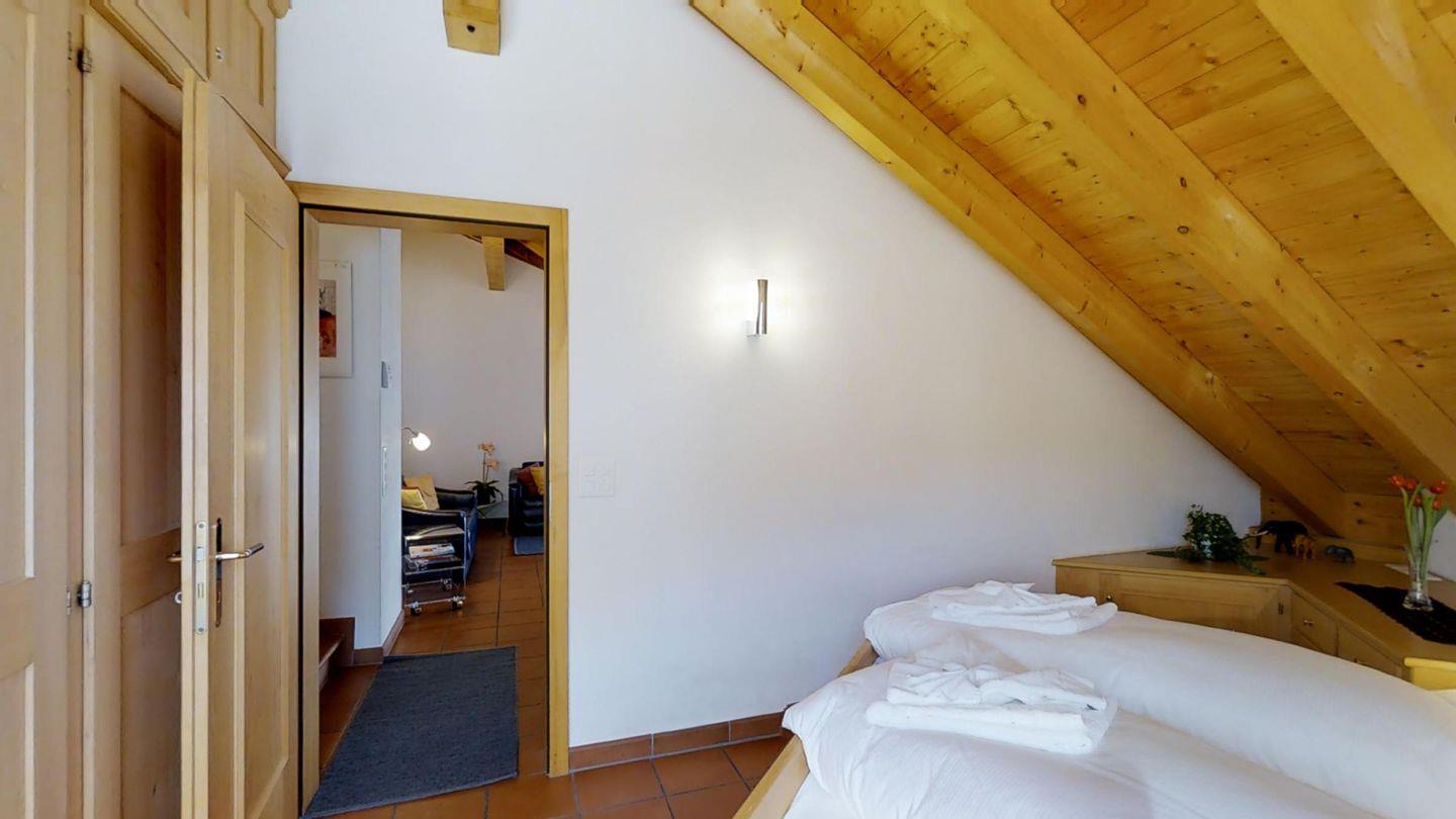 Abgeschrägte 2½-Zimmer-Dachwohnung im 2. Stock, 64m2. Wohn-/ Esszimmer mit zwei Schlafmöglichkeiten (2 Schlafsofas 90x200). Radio, Fernseher und Telefon. Gratis WLAN-Anschluss. Offene Küche mit Backofen und Geschirrspüler, Abdeckung in Naturstein. Nespresso Kaffeemaschine. Käsefondue-Geschirr vorhanden. 1 Doppelzimmer (Doppelbett mit zwei Einzelmatratzen 2x90x200). Kleines Arbeitszimmer (Büro). Kleine Dusche/WC/Lavabo. Neue, komfortable Einrichtung. Garagenplatz. Skiraum und Waschküche zur Mitbenützung. Haustiere sind nicht erlaubt.