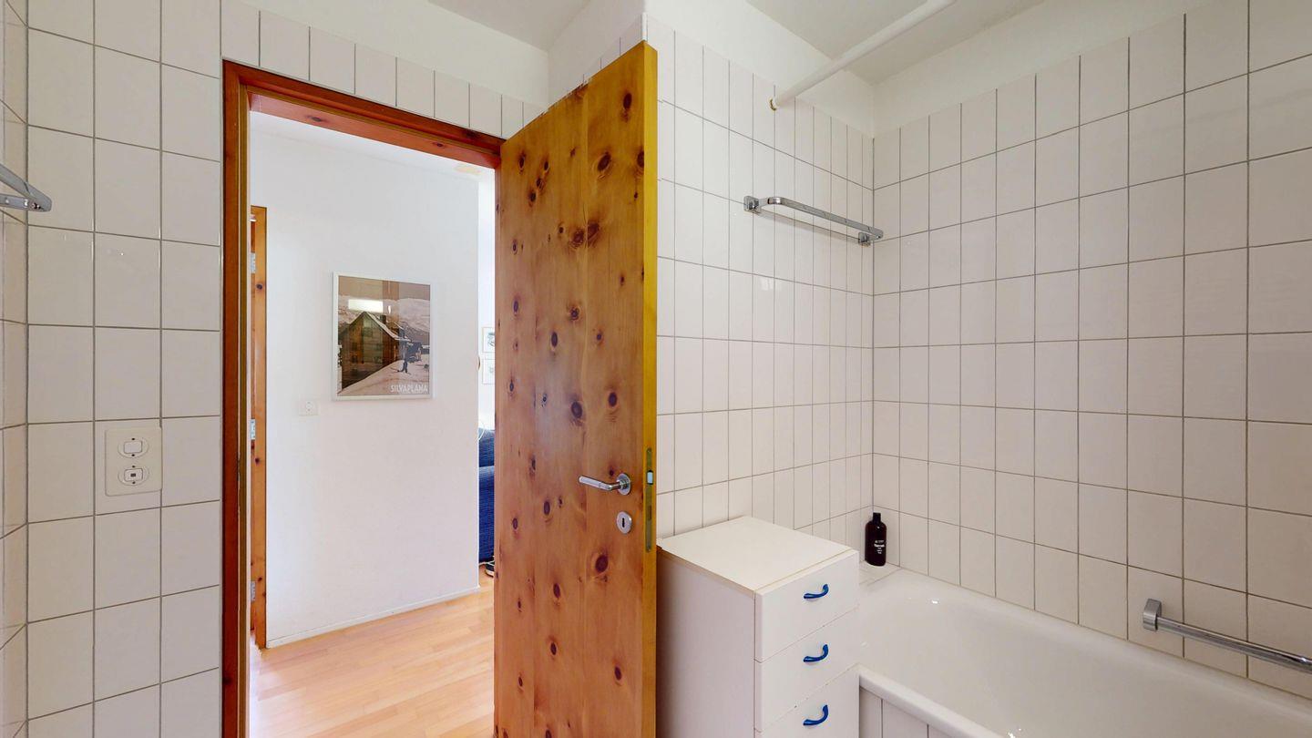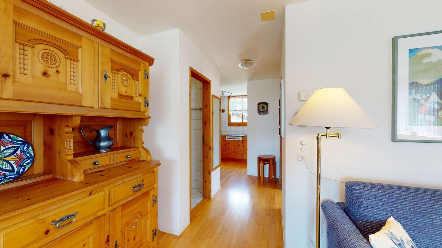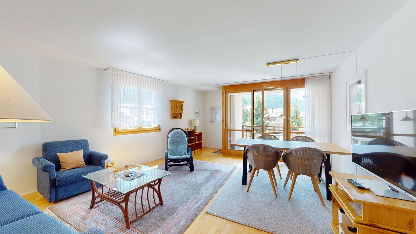 Sonnige 2½-Zimmerwohnung im 1. Stock, 75 m2, an ruhiger Südlage, Wohn-/ Esszimmer mit Schlafsofa für 2 Personen, Balkon, Telefon mit Zähler, Radio und TV, offene Küche mit Geschirrspüler und Backofen, Bad, WC und Lavabo. 1 Doppelschlafzimmer. Neue, komfortable Einrichtung, Garagenplatz (Garagentorhöhe 195 cm), Waschküche (Benützung max. 1 x pro Woche) und Skiraum zur Mitbenützung. Haustiere sind nicht erlaubt.
