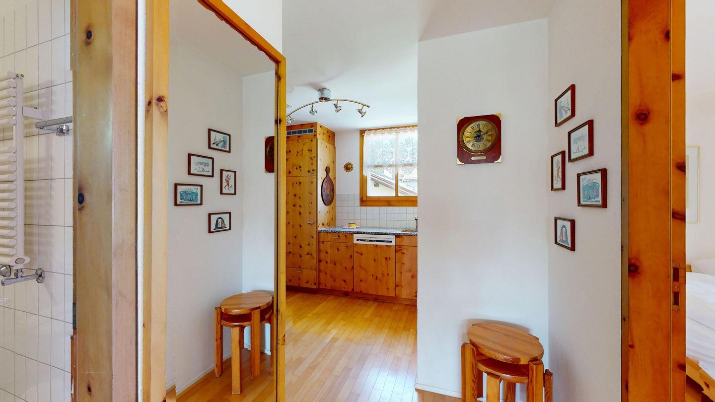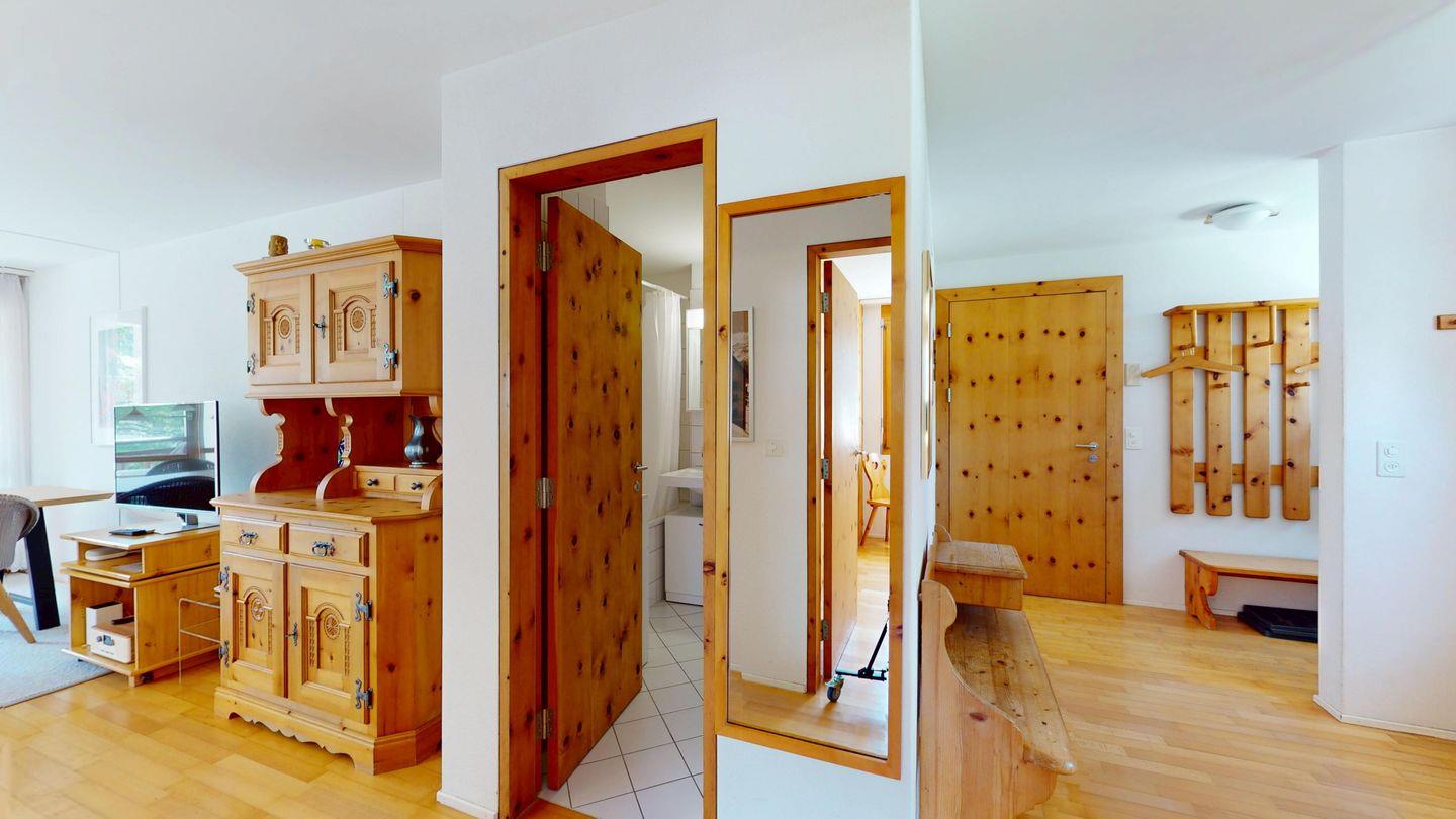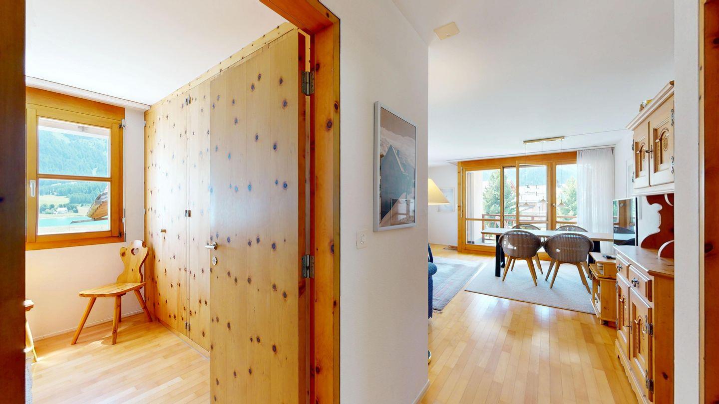 Sonnige 2½-Zimmerwohnung im 1. Stock, 75 m2, an ruhiger Südlage, Wohn-/ Esszimmer mit Schlafsofa für 2 Personen, Balkon, Telefon mit Zähler, Radio und TV, offene Küche mit Geschirrspüler und Backofen, Bad, WC und Lavabo. 1 Doppelschlafzimmer. Neue, komfortable Einrichtung, Garagenplatz (Garagentorhöhe 195 cm), Waschküche (Benützung max. 1 x pro Woche) und Skiraum zur Mitbenützung. Haustiere sind nicht erlaubt.