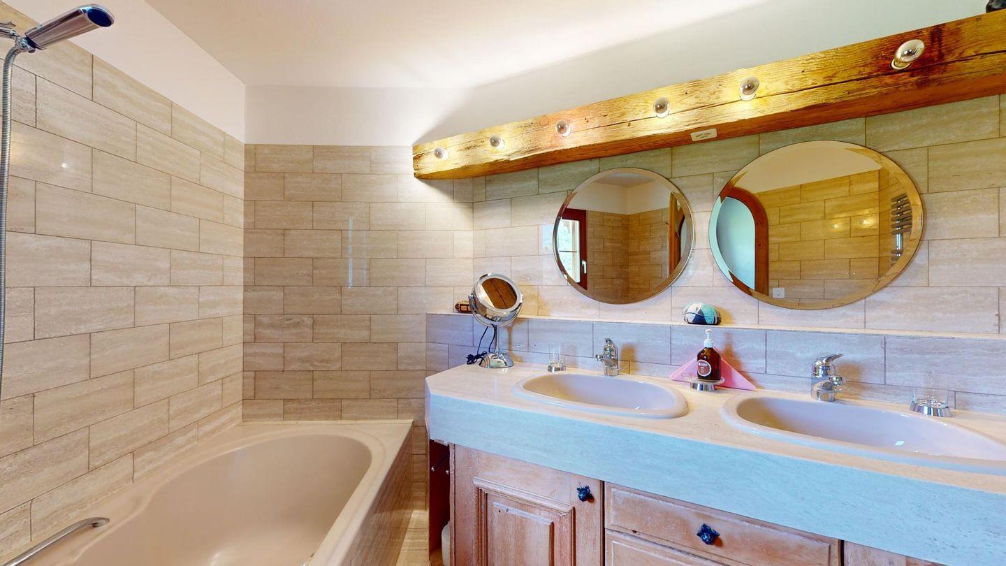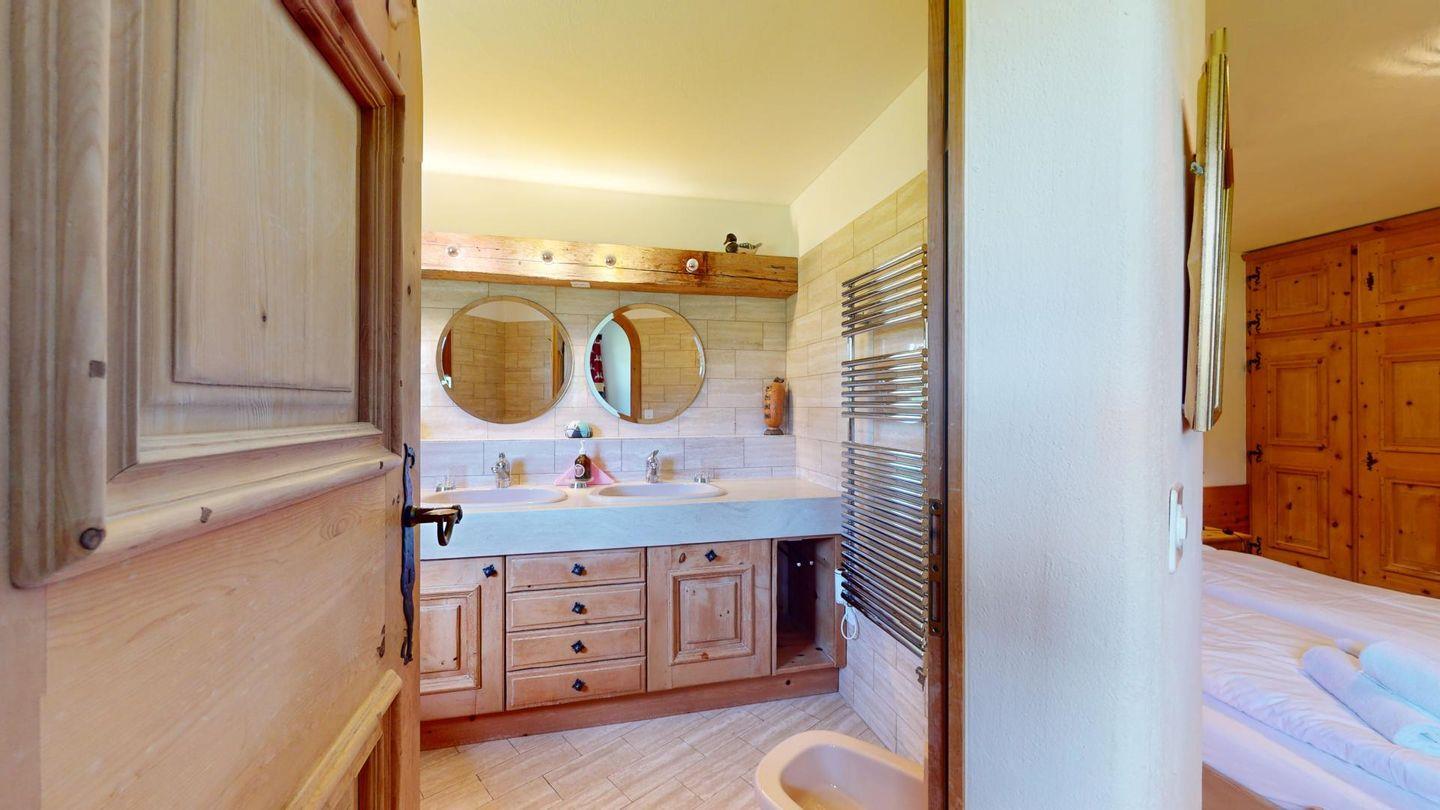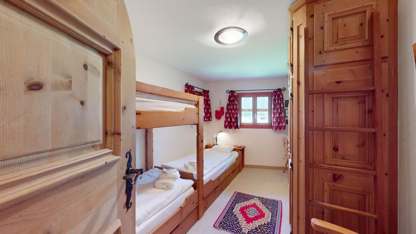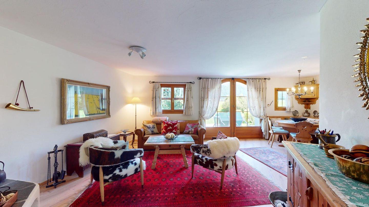 3 1/2-Zimmerwohnung auf zwei Stockwerken, EG/1. Stock, mit 107 m2. Wohn/ Esszimmer mit Kamin und einem Schlafsofa. Sitzplatz Südseite. See- und Bergsicht. Halboffene Küche. Kaffeemaschine CHICCO D'ORO. Mikrowelle. Radio Fernseher (SAT). Doppelzimmer (Kingsize-Doppelbett 180x200) mit Bad/WC/Doppellavabo/Bidet. Zimmer mit Etagenbett und 1 Einzelbett (total 3 Schlafmöglichkeiten, Matratzen 80x190). Dusche/ WC/Doppellavabo. Neue, komfortable Einrichtung. Garagenplatz. Waschküche & Skiraum zur Mitbenützung. Gartenmöbel sind vorhanden. Haustiere sind nicht erlaubt.