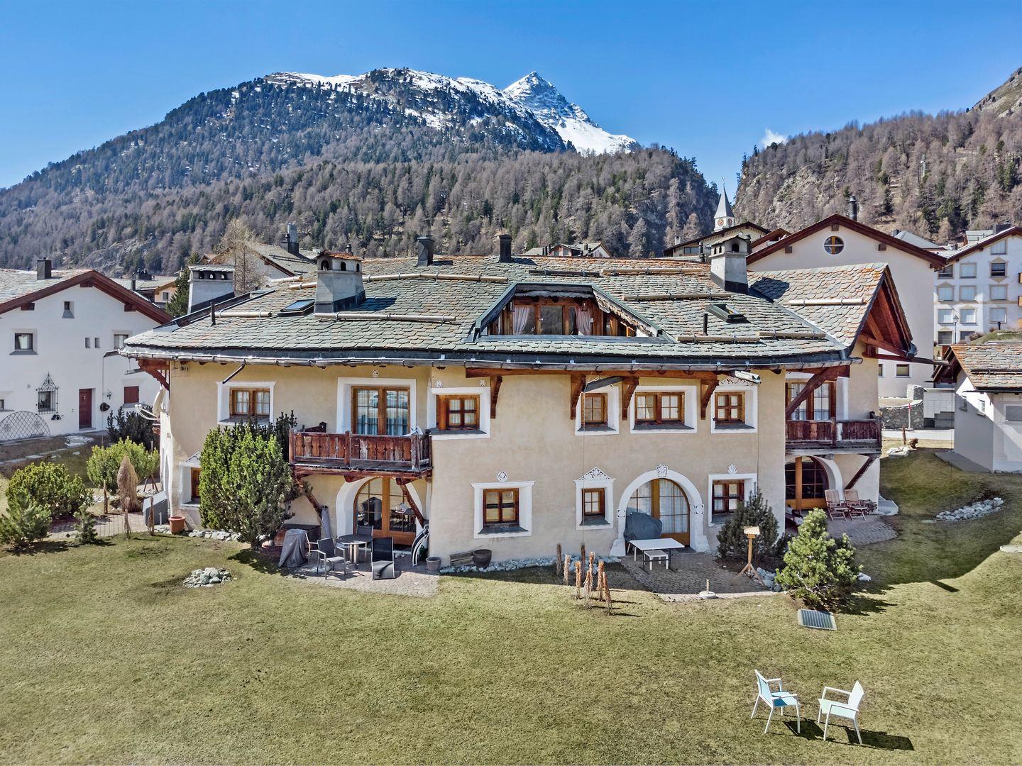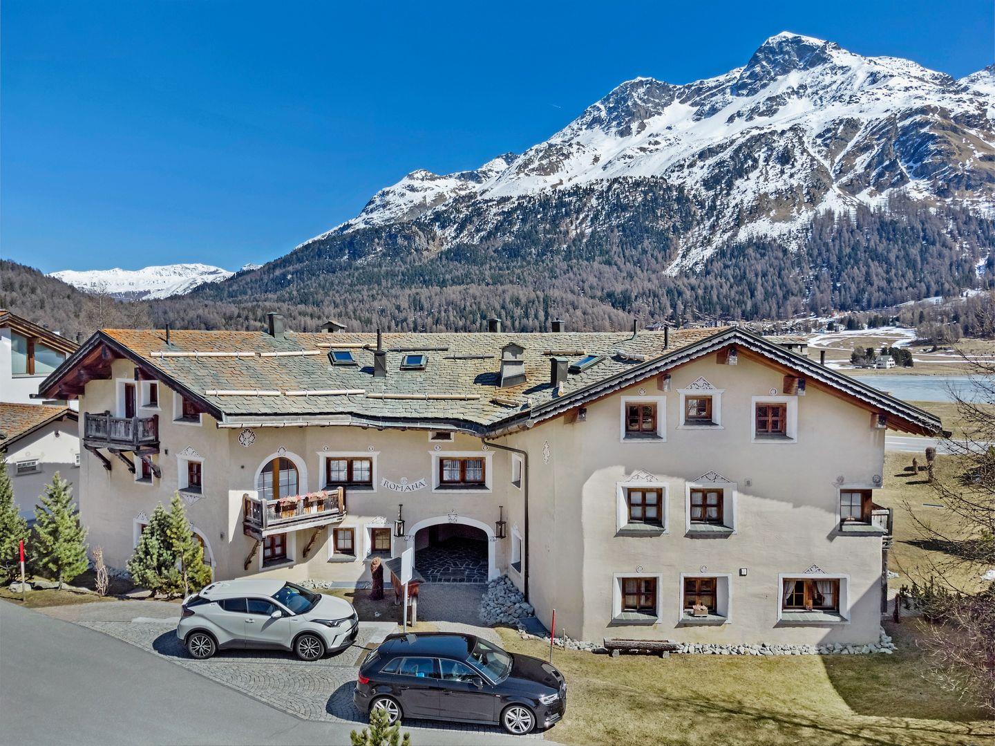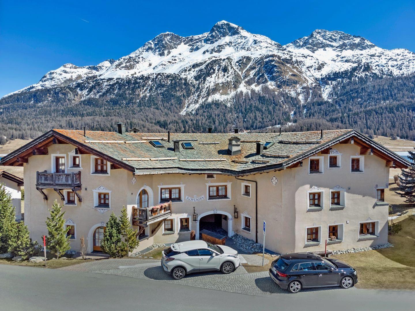 Chesa Romana (Baujahr 1993, Engadinerstil) befindet sich am Rande des Dorfkerns von Silvaplana. Langlaufloipen führen direkt vom Hause weg. Wanderwege in unmittelbarer Umgebung. Das Sportzentrum Mulets liegt nur ca. 5 Gehminuten entfernt. Sie finden dort Sportarten wie Curling, Schlittschuhlauf, Eishockey, Tennis, Kraftraum, Fitness, Camping, Segeln, Surfen sowie ein Restaurant. Der Hausberg 'Corvatsch' mit Winterskigebiet und im Sommer Ausgangspunkt vieler Wanderungen, befindet sich auf der rechten Seeseite im Dorfteil Surlej ca. 700 m entfernt. Der Sportbus fährt im Winter jede halbe Stunde in alle Richtungen von Silvaplana weg. Sämtliche weiteren Winter- und Sommersportmöglichkeiten finden Sie im 5 km. entfernten St.Moritz.
