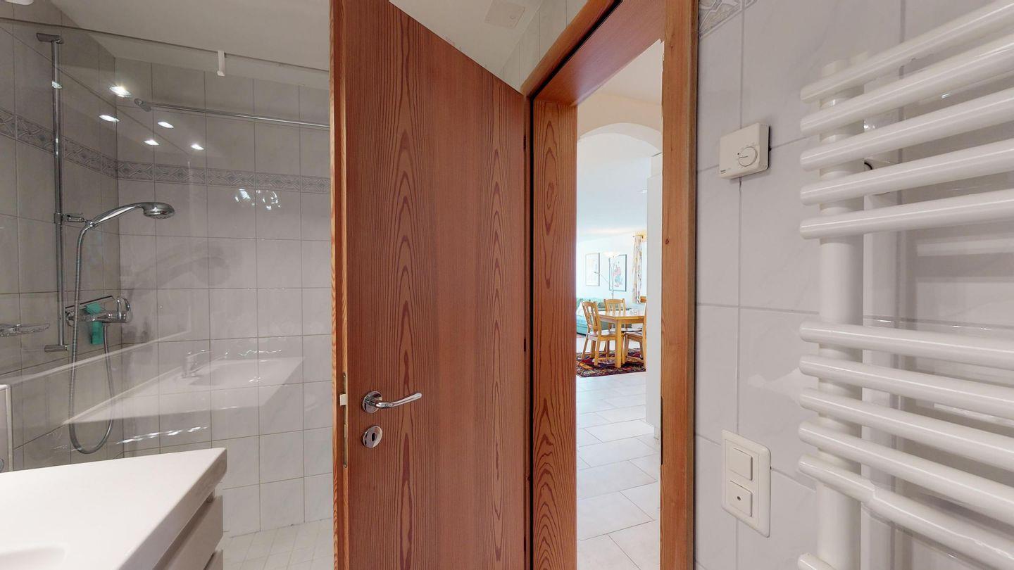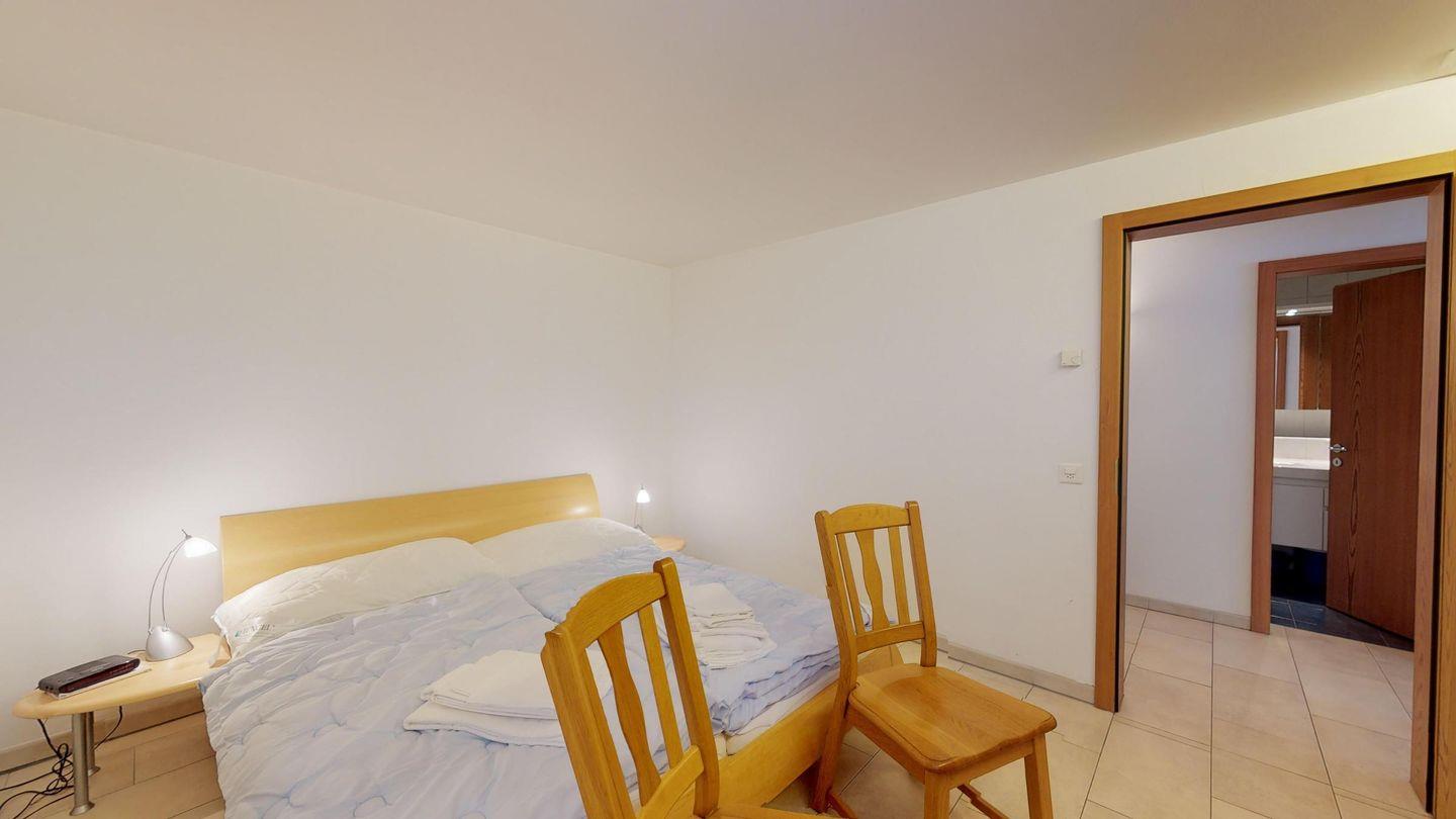 2½ - Zimmerwohnung im 1. Stock, ca. 71 m2. Sitzplatz mit See- und Bergsicht, Südlage. Wohn-/ Esszimmer mit 2 Schrankbetten (80x200). 1 Doppelzimmer (Doppelbett mit Einzelmatratzen 2x90x200). Dusche/WC/Lavabo. Radio, Fernseher und Telefon. Küche offen gegen das Wohnzimmer, mit Backofen und Geschirrspüler. Chicco d'Oro Kaffeemaschine. Fleisch und Käse-Fondue-Geschirr vorhanden. Garagenplatz vorhanden (Autolift. Höhe 1.50m). Skiraum zur Mitbenutzung. Haustiere sind nicht erlaubt. Nichtraucherwohnung.