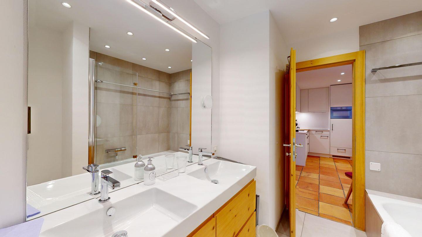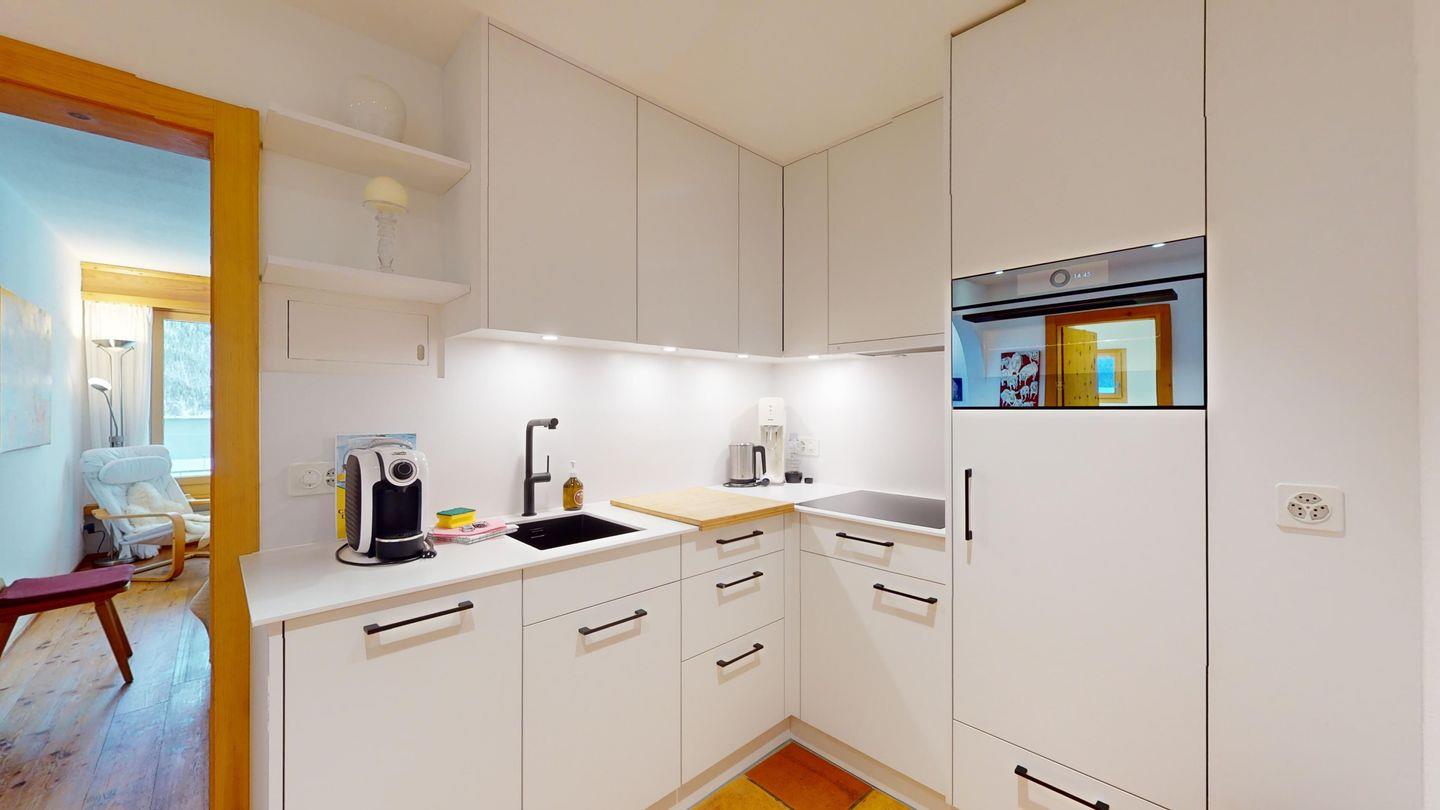 2-Zimmerwohnung im 1. Stock ca. 55 m2. Entrée, offene Küche mit Backofen und Geschirrspüler. Nespresso-Kaffeemaschine. Doppelzimmer mit zwei Einzelmatratzen. Bad/Doppellavabo/WC. Wohn-/Esszimmer mit TV. Balkon mit freier Sicht auf die Berge und den See. Balkonmöbeln vorhanden. Rustikale und komfortable Einrichtung. Waschraum zur Mitbenützung im 2. Untergeschoss in der Tiefgarage. Garagenplatz