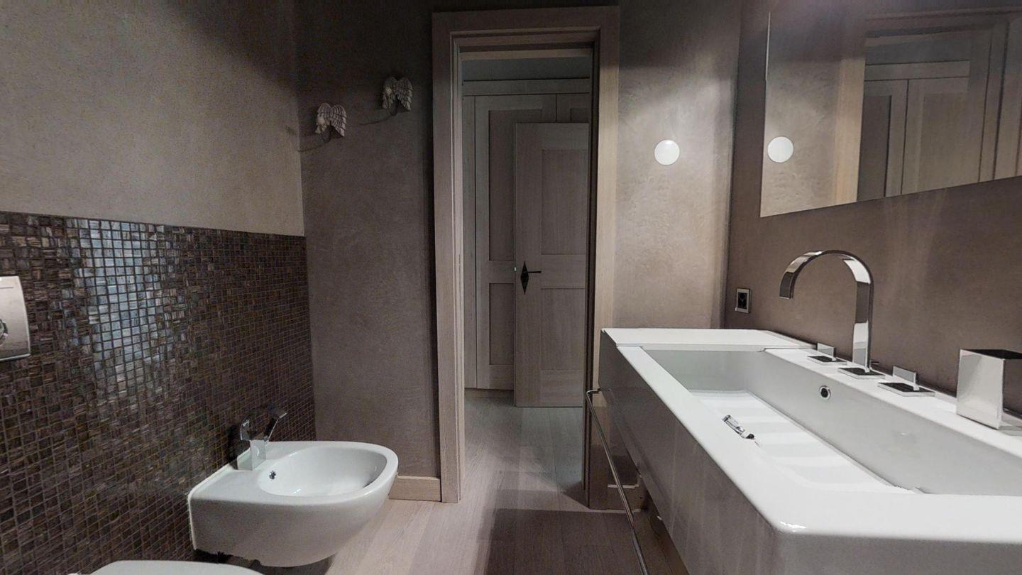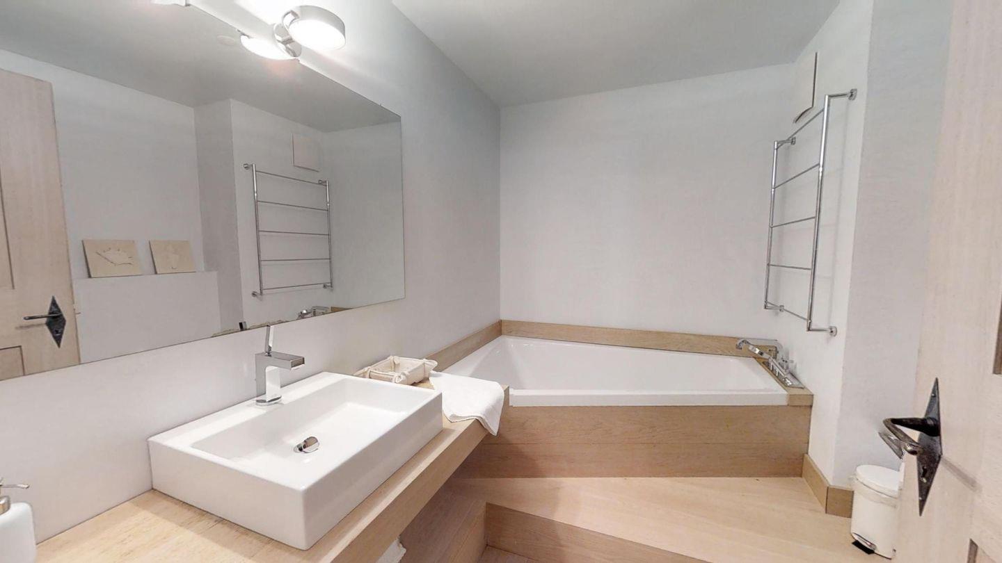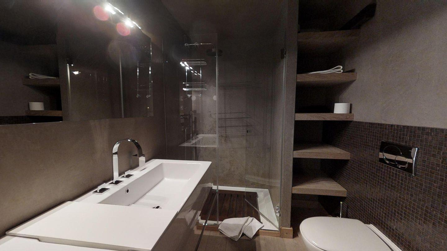 Moderne und sehr geschmackvoll eingerichtete 3-Zimmerwohnung im Erdgeschoss, Eingang mit Garderobe, Wohn-/Esszimmer mit Durchreiche zur Küche und Ausgang auf die Terrasse, geschlossene Küche mit Durchreiche, Nespresso und Chicco d'Oro Kaffeemaschinen, Doppelzimmer mit Dusche/WC/Bidet/Lavabo, Zimmer mit 3 Betten, Badezimmer mit Badewanne/WC/Lavabo.