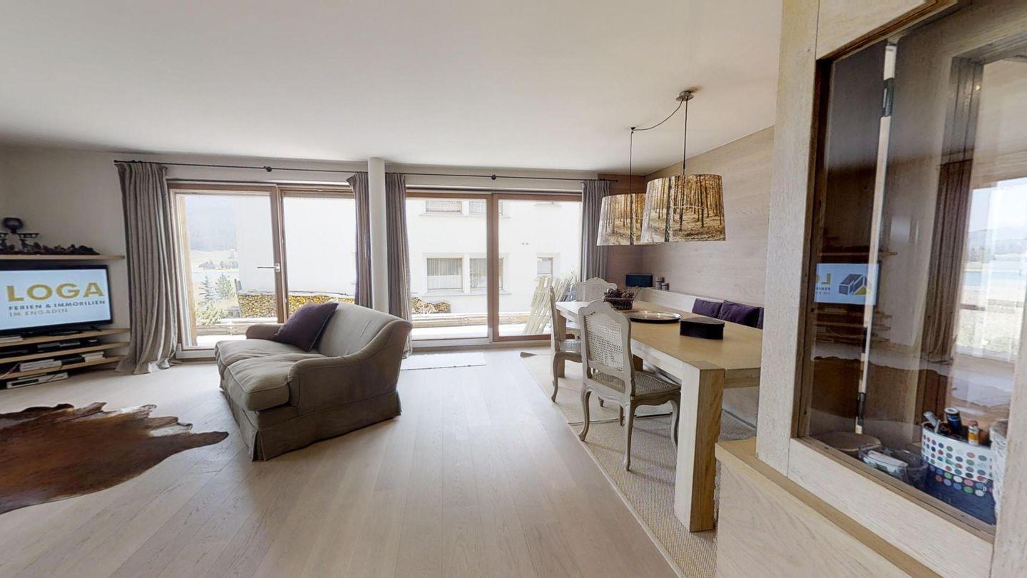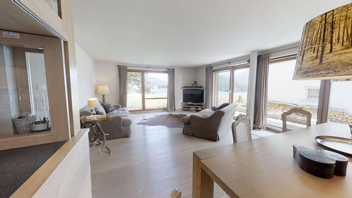 Die Chesa Ille Terrarum befindet sich im Dorfzentrum von Silvaplana. Einkaufmöglichkeiten, öffentlicher Verkehr, Restaurants und der See befinden sich direkt vor der Haustür. Das Haus besticht ausserdem durch seine sehr ruhige Lage mit wunderbarer Sicht auf die einmalige Berg- und Seenlandschaft des Oberengadins.