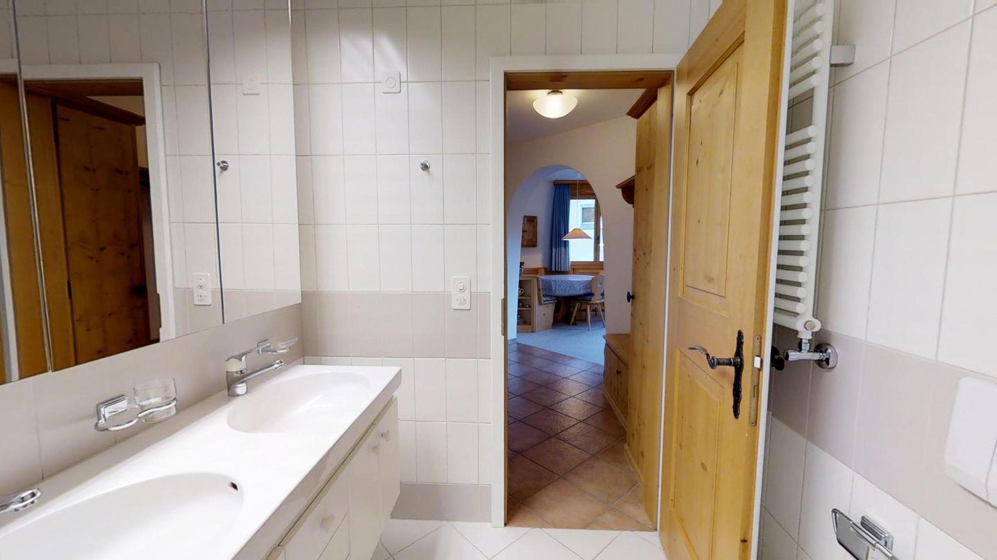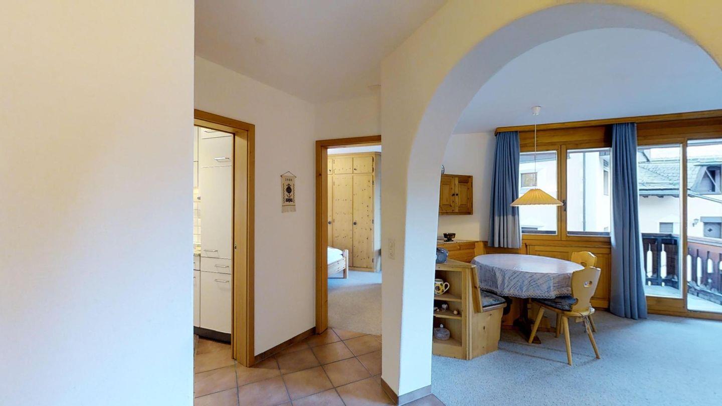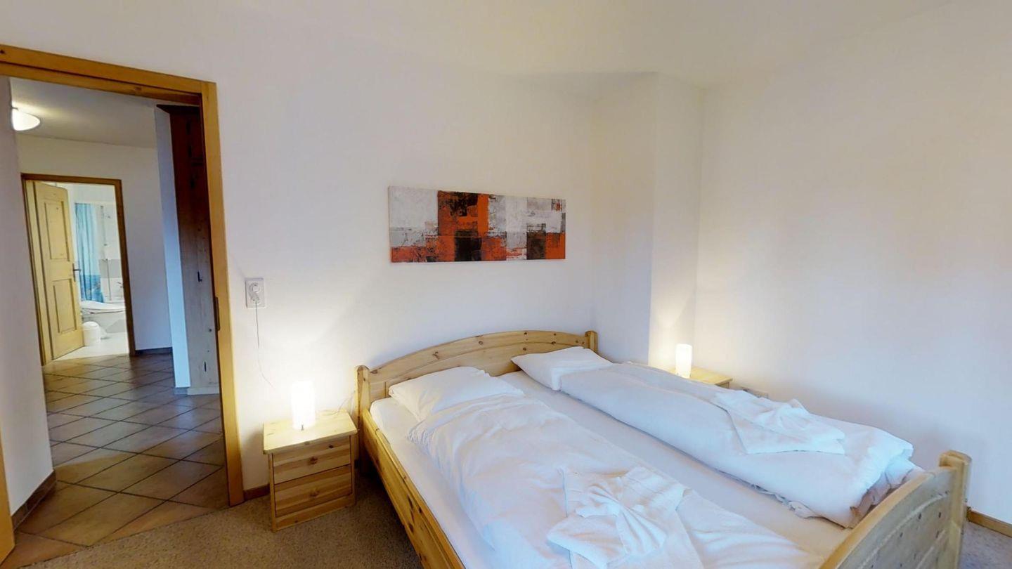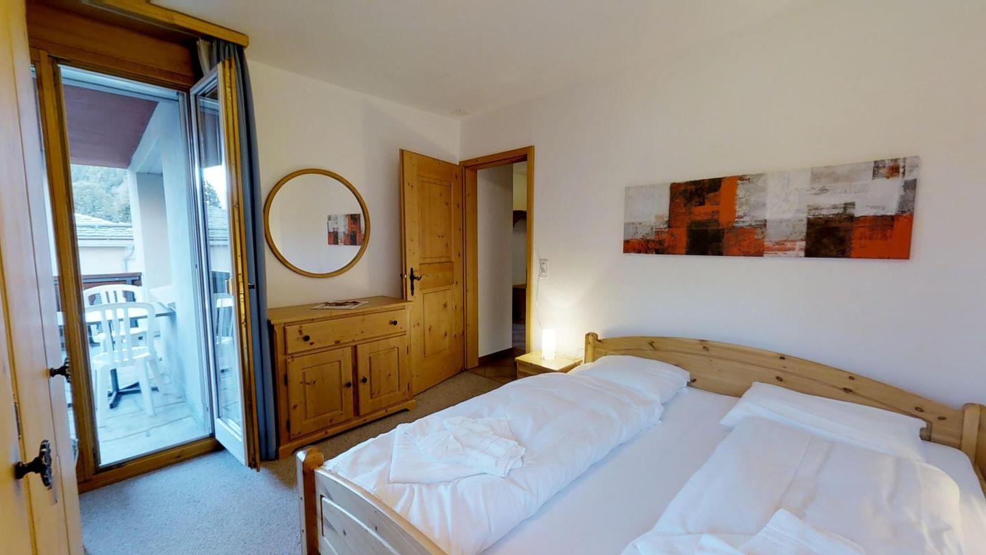 Sonnige 2-Zimmerwohnung im 1. Obergeschoss, 55 m2, an ruhiger Lage. Wohn-/ Esszimmer mit Ausgang auf den Balkon und einem Sofabett (170x200). Berg- und Seesicht, Radio und TV, geschlossene Küche mit Geschirrspüler und Backofen. Badezimmer mit WC-Closomat /Doppellavabo/Badewanne, Doppelzimmer (2x90x195) mit Ausgang auf den Balkon. Neue, komfortable Einrichtung. Garagenplatz. Waschküche und Skiraum zur Mitbenutzung. Nichtraucherwohnung.