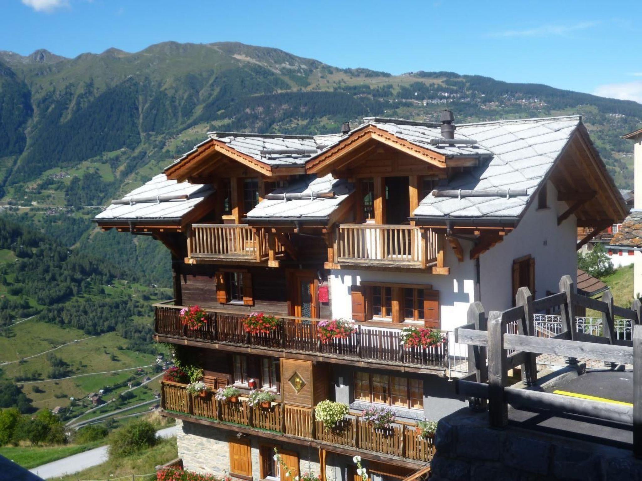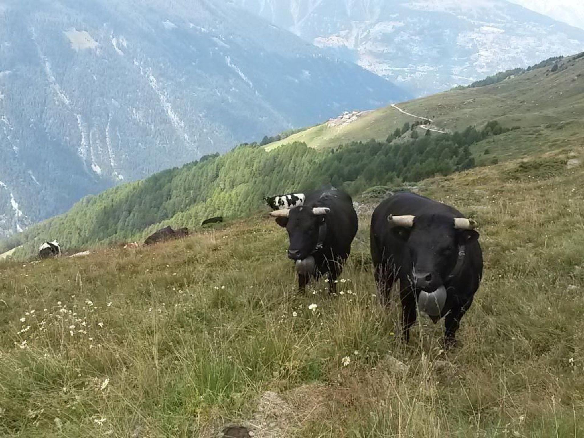 À l'outside, enjoy the Hérens'ensoleillement maximal grâce à ses 5 balcons et une terrasse, offrant une vue imprenable à 180° sur le val d', the Ferpècle glacier, and the majestic surrounding peaks. A private parking space is available in the public car park, ensuring easy, secure access.