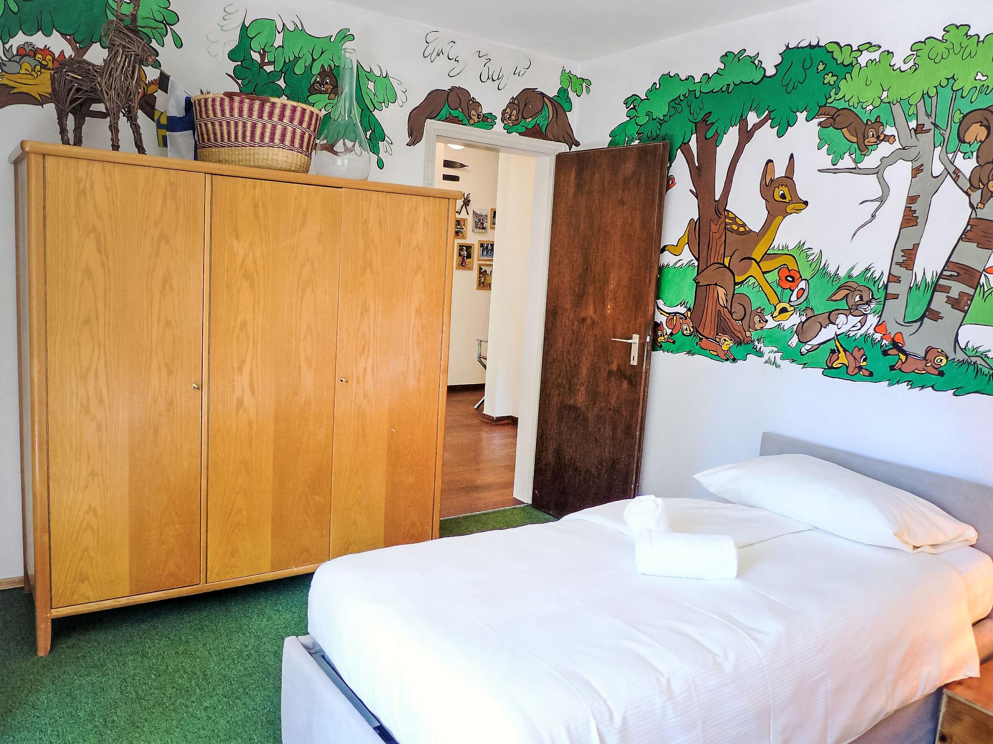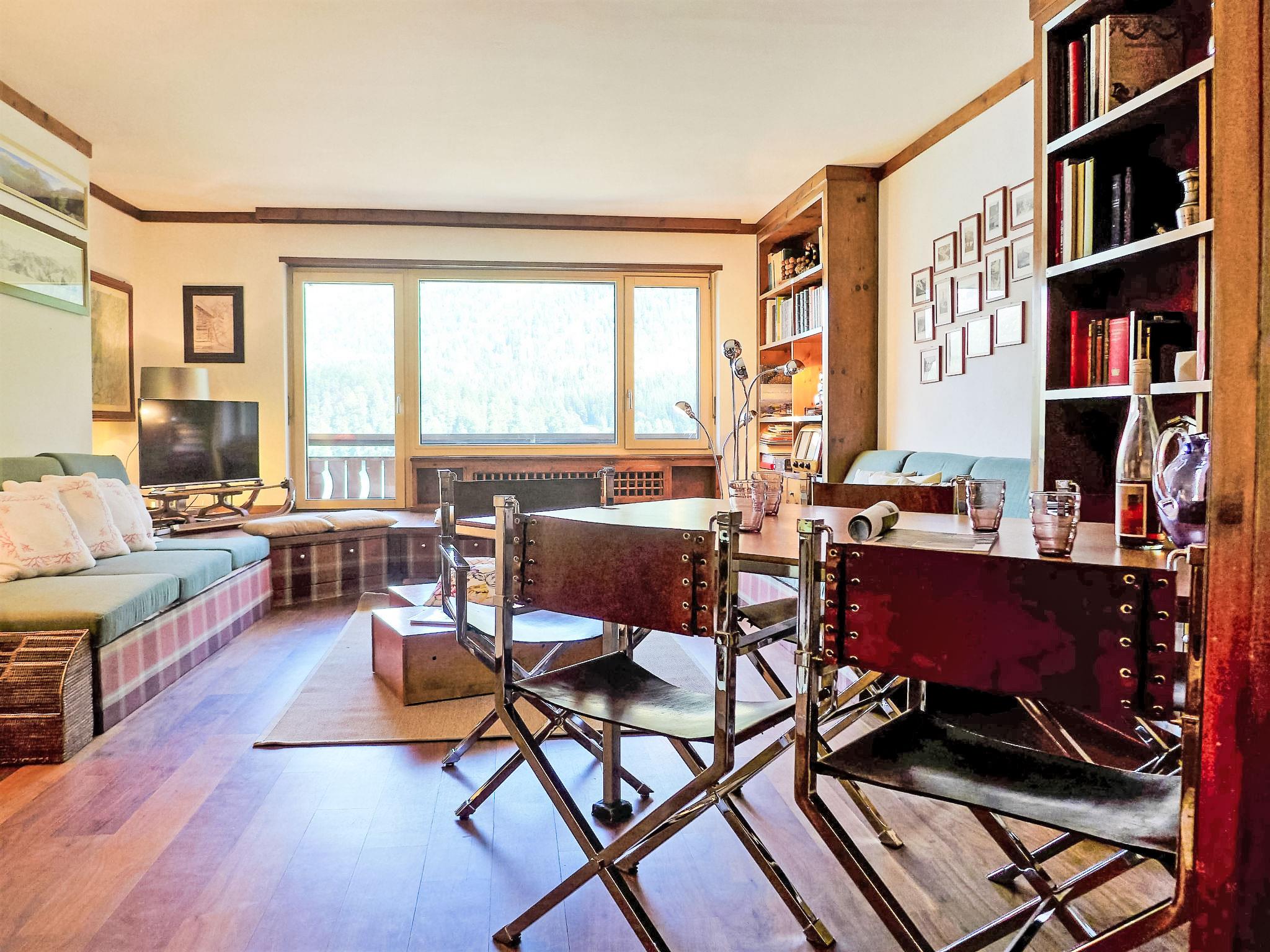 "Chesa Sonnalpine B 46", 5-room apartment 105 m2 on 4th floor. Partly renovated in 2018, practical furnishings: living/dining room with TV and radio. Exit to the balcony, south-east facing position. 1 double bedroom with 2 beds (90 cm, length 190 cm). 1 room with 2 beds (80 cm, length 190 cm). 1 children's room with 2 beds (90 cm, length 200 cm), 1 pull-out bed. Exit to the balcony. 1 room with 1 double bed (1 x 160 cm, length 190 cm). Small kitchen 8 m2 (oven, dishwasher, 4 induction hot plates, toaster, kettle, freezer, electric coffee machine, Capsules for coffee machine (Nespresso) extra, fondue Set (chinoise, cheese)). Bath/bidet/WC, sep. WC, bath/shower/WC. 2 balconies. Beautiful view of the lake and the mountains. Facilities: hair dryer. Internet (WiFi, free). Garage space n 46 (1 car), height 183 cm, width 240 cm. Please note: non-smokers only. Maximum 2 pets/ dogs allowed. The parking garage has a height and a limited depth.