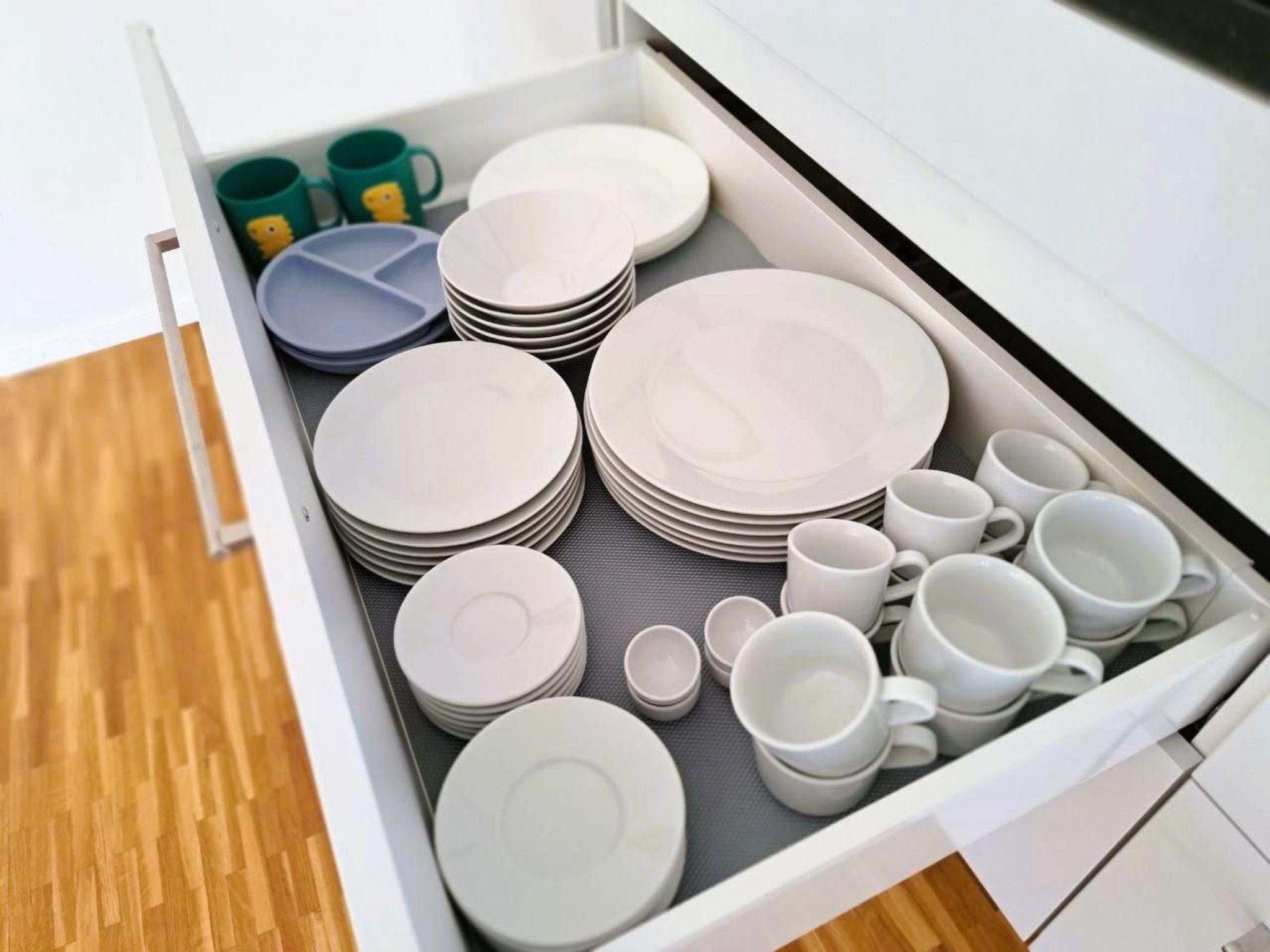 Our flats are furnished with a lot of love and attention. The centrepiece is a workspace with free 450 Mbit WLAN for your creativity and work. A fully equipped state-of-the-art kitchen with induction hob and NESPRESSO coffee machine leaves nothing to be desired. The living area with sofa bed offers space for up to 4 people and a room divider to the sleeping area with queen-size box-spring bed guarantees peaceful nights. Hotel-quality bedding and home cinema equipment ensure first-class living comfort.