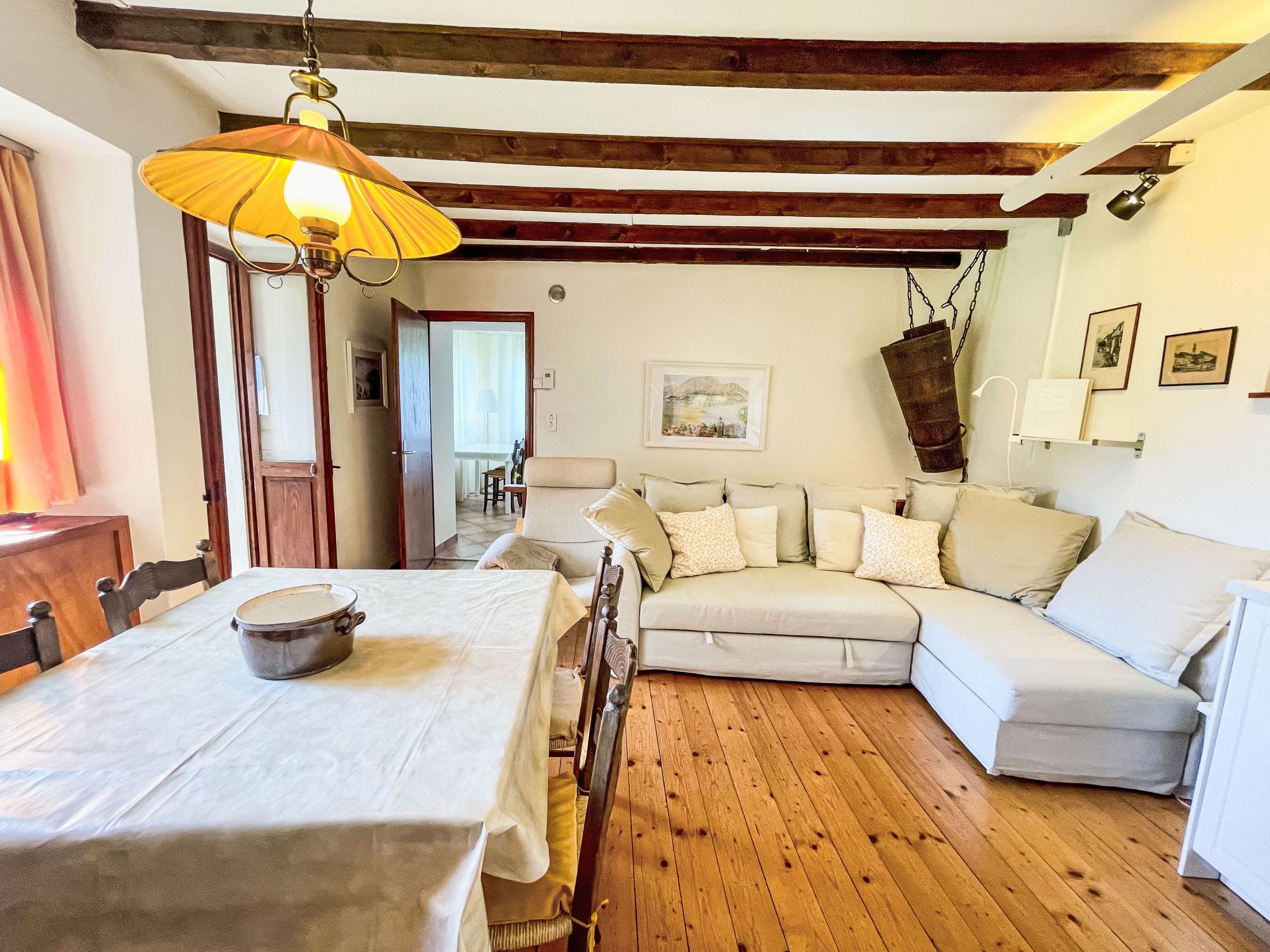 "La Gioconda", 3-room house 85 m2 on 2 levels, north-west facing position. Object suitable for 4 adults + 1 child. Beautiful and cosy furnishings: walk-through room with 1 sofabed (140 cm, length 200 cm). Shower/WC. Upper floor: open living/dining room with 1 sofabed (140 cm, length 200 cm), dining table, international TV channels and flat screen. 1 double bedroom with 2 beds (90 cm, length 200 cm). Exit to the balcony. Open kitchen (oven, 4 induction hot plates, toaster, kettle, electric coffee machine, Capsules for coffee machine (Nespresso) extra). Sep. WC. Oil heating, boiler (150 litres). Maximum 1 pet/ dog allowed. NL-00005206