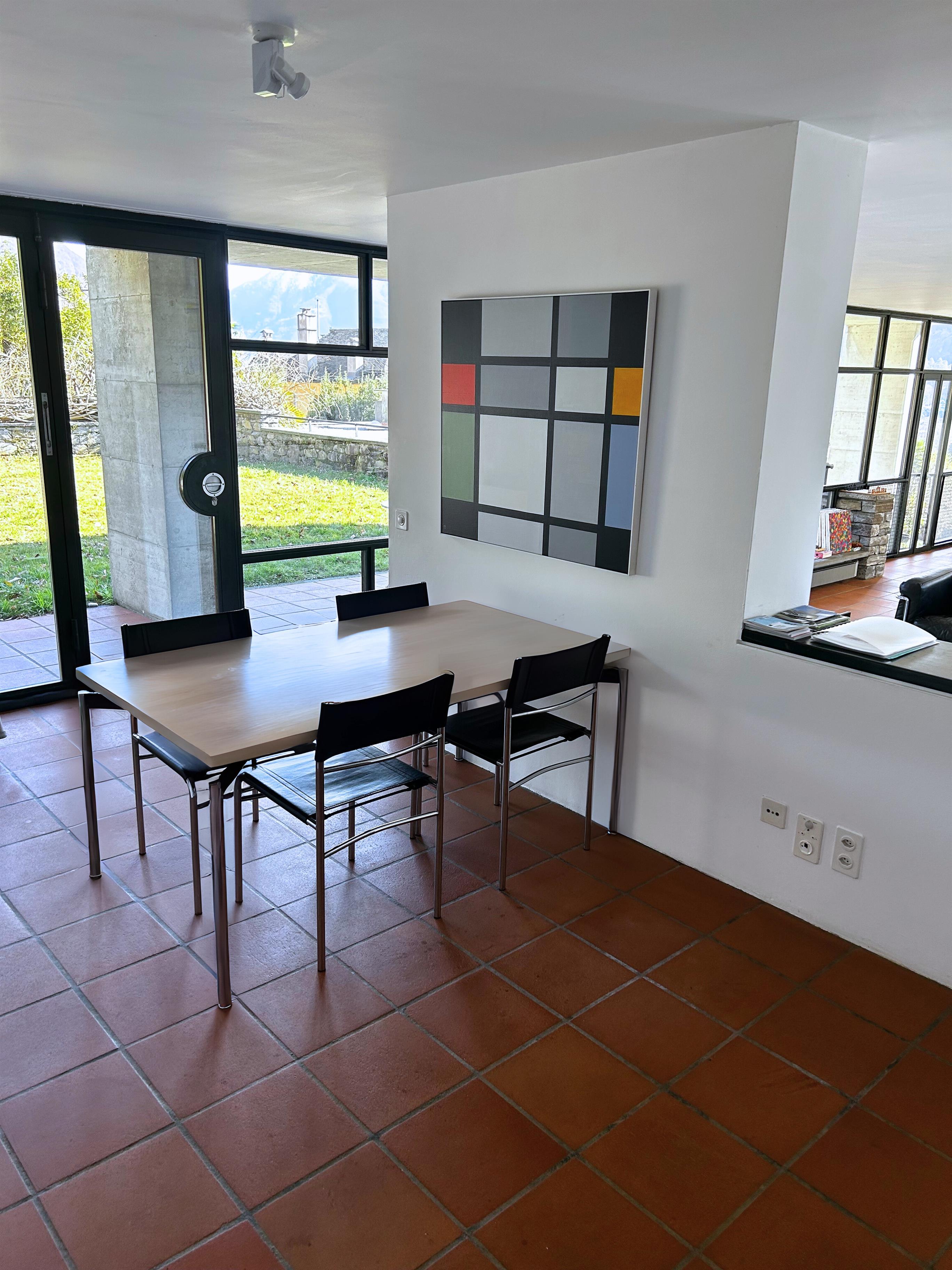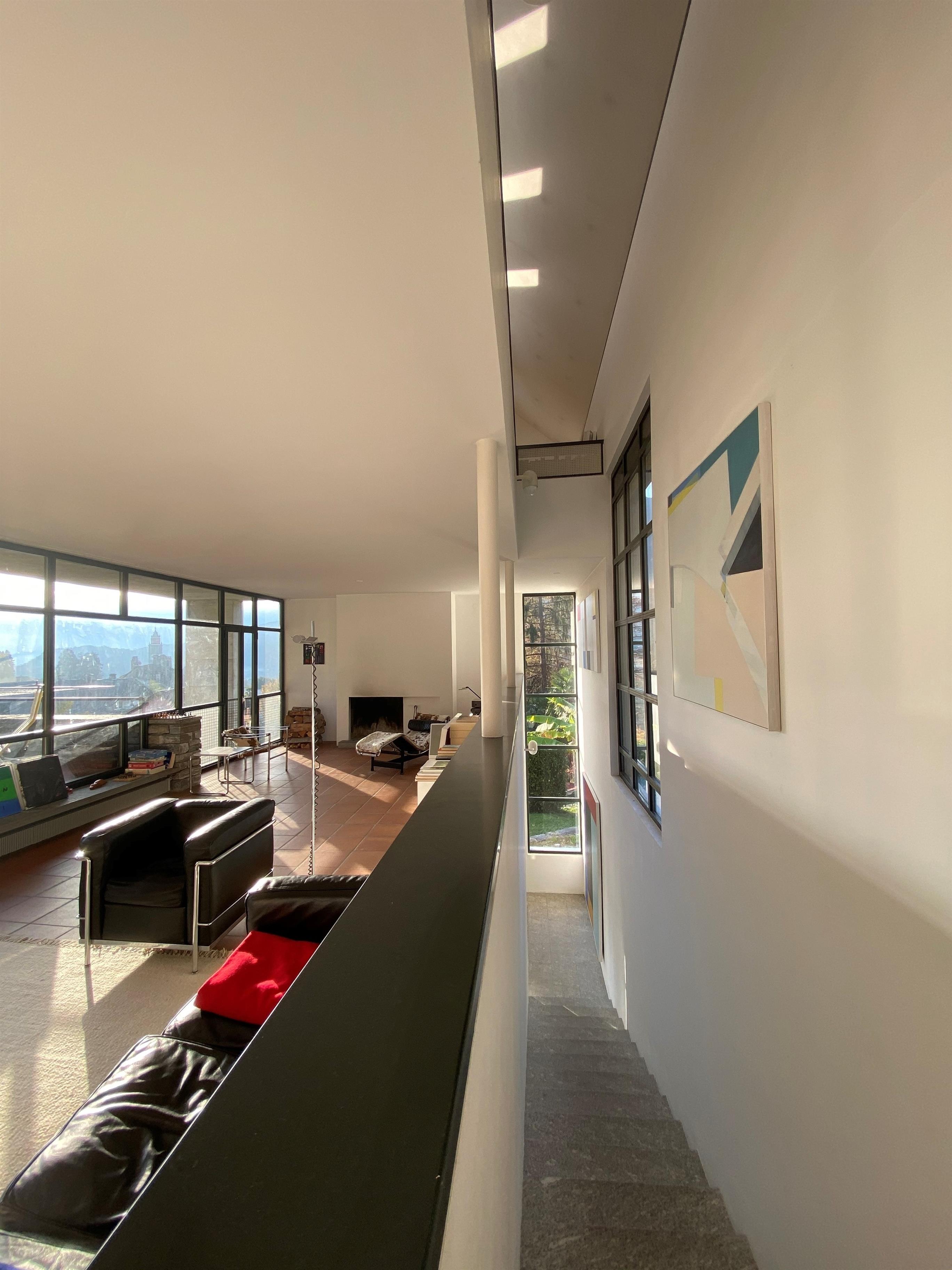 Daher ist auch die Villa Cavalli äußerst ästhetisch in die Umgebung eingebettet. Das 1976 erbaute Meisterwerk schmiegt sich an einen ehemaligen Rebberg und liegt in herrlicher Stille nur 100 Meter vom Dorfkern entfernt. Der aus dem "Zentrum" herausführende, von einer pittoresken Steinmauer gesäumte Fußweg "Caraa du Vanign" scheint direkt in das Haus hineinzulaufen und setzt sich im Inneren als "Promenade architecturale" mit einer lichtvollen Granittreppe fort, deren Luftraum bis ins Dach reicht.