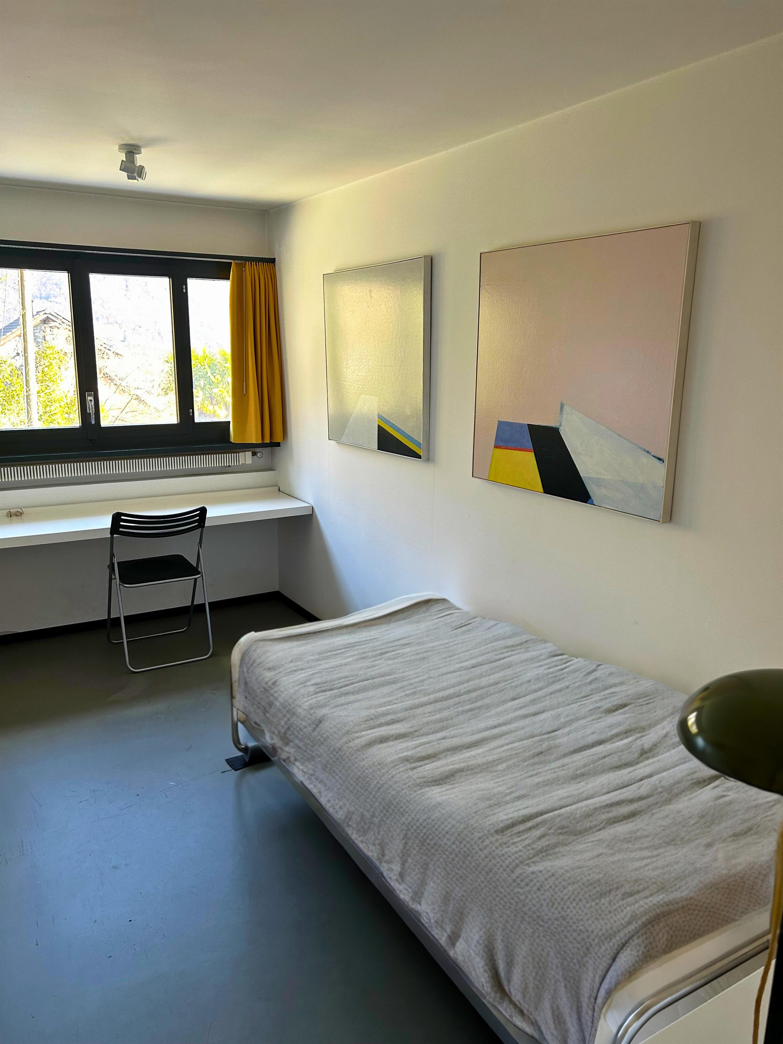 Gleich neben dem Wohnzimmer befinden sich der Essbereich für vier Personen und die angrenzende, gut ausgestattete Küche - beide mit Blick in den Garten und direkten Zugängen zur Terrasse. Über die Treppe gelangen sie zur zweiten Wohnebene. Auch hier offenbart sich die zurückhaltende Poesie Snozzis. Die vier Schlafzimmer und ein Aufenthaltsraum sind in dem für den Architekten typischen, fein komponierten Minimalismus gehalten. Zusätzlich gibt eine gemütliche Leseecke mit unzähligen Buchschätzen, in der Sie herrlich die Zeit an sich vorbeiziehen lassen können.
