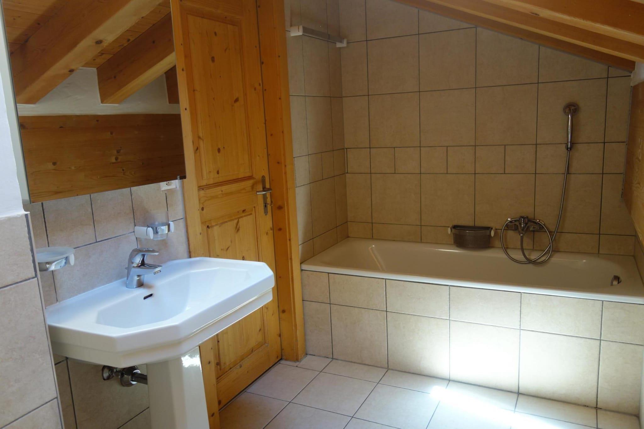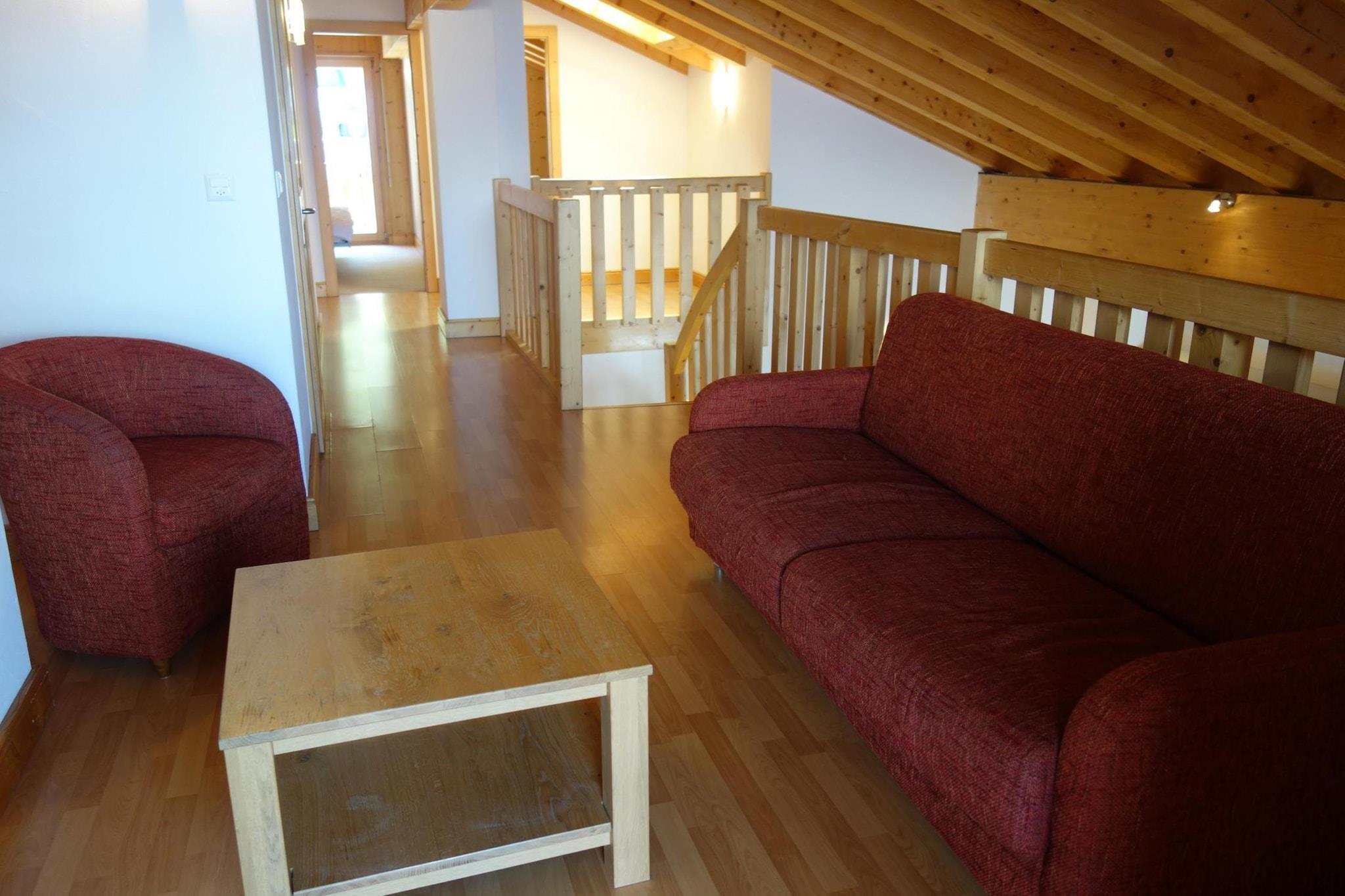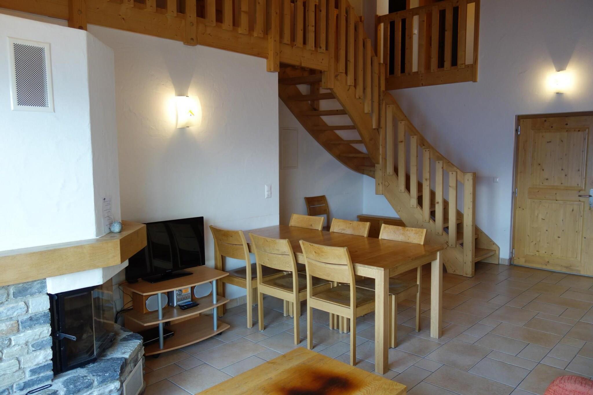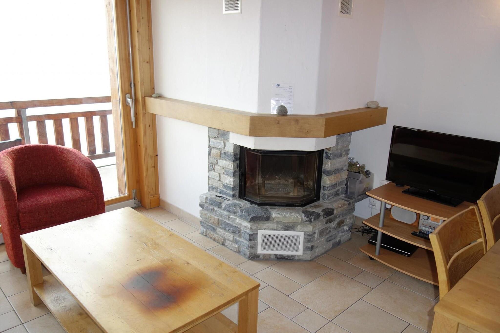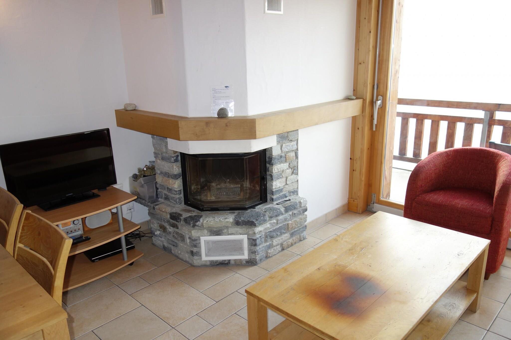 Velkommen til en koselig fjellleilighet i hjertet av Veysonnaz, Sveits, med plass til opptil 8 gjester. Denne sjarmerende 3-romsleiligheten ligger i femte etasje og kan skilte med fantastisk utsikt over Rhônedalen og de omkringliggende fjellene. Den lyse stuen har en dobbel sovesofa, en innbydende peis, kabel-TV, en DVD-spiller og et Hi-Fi-system, alle åpner ut mot en balkong som forbedrer alpinopplevelsen. Det åpne kjøkkenet er fullt utstyrt med kjøleskap, stekeovn, mikrobølgeovn, brødrister, filterkaffemaskin, vannkoker og oppvaskmaskin, noe som sikrer at alle dine kulinariske behov blir dekket. Soveopplegg inkluderer soverom 1 med to enkeltsenger (90x200) og eget bad med dusj og toalett, sammen med to ekstra soverom, hver med to enkeltsenger (90x200). En mesanin har et koselig lesehjørne og ekstra plass på balkongen, mens et separat bad har badekar og toalett. Nyt bekvemmeligheten av et vaskerom (digital betaling), et skirom og en innendørs parkeringsplass inkludert i oppholdet. Vær oppmerksom på at kjæledyr ikke er tillatt, og tilgang er via heis eller trapper. Plein Ciel-residensen plasserer deg kun 270 meter fra taubanen, butikker og fritidsaktiviteter, noe som gjør det til et ideelt sted for ferien. Ekstra kostnader inkluderer en turistskatt og et depositum, mens valgfrie tjenester som sengetøy, håndklær, sluttrengjøring og komfortpakker er tilgjengelig. Dra nytte av gratis tilgang til det offentlige svømmebassenget, deltakelse i aktivitetsprogrammet Sun&Fun om sommeren og rabatter på leie av utstyr. Velkommen til din alpinferie!