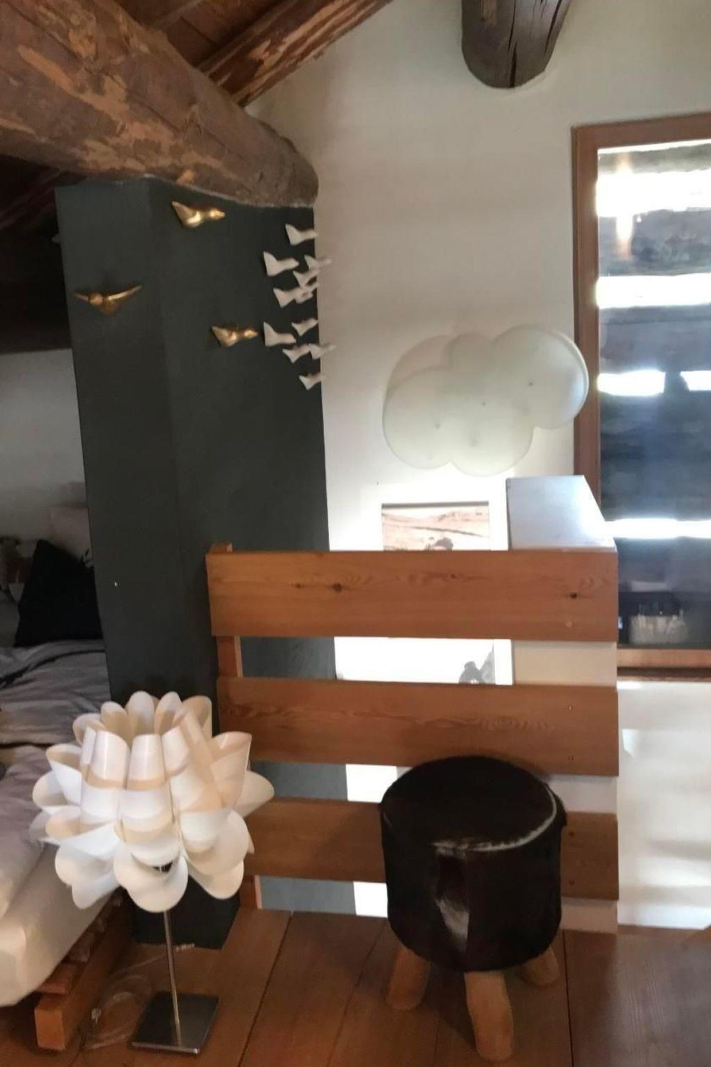 Inside, the holiday home is spread over three levels, each designed for maximum comfort. On the ground floor, which is underfloor heated, you will find a cosy double bedroom, a bathroom with shower, bidet, WC and washbasin, and a utility room with washing machine and dryer. Going up to the first floor, cosy spaces such as the living/dining room with Swedish wood-burning stove, Swisscom TV, and a modern open kitchen await you. The second floor offers a charming open mezzanine with a double bed, completing the interior of this charming dwelling.