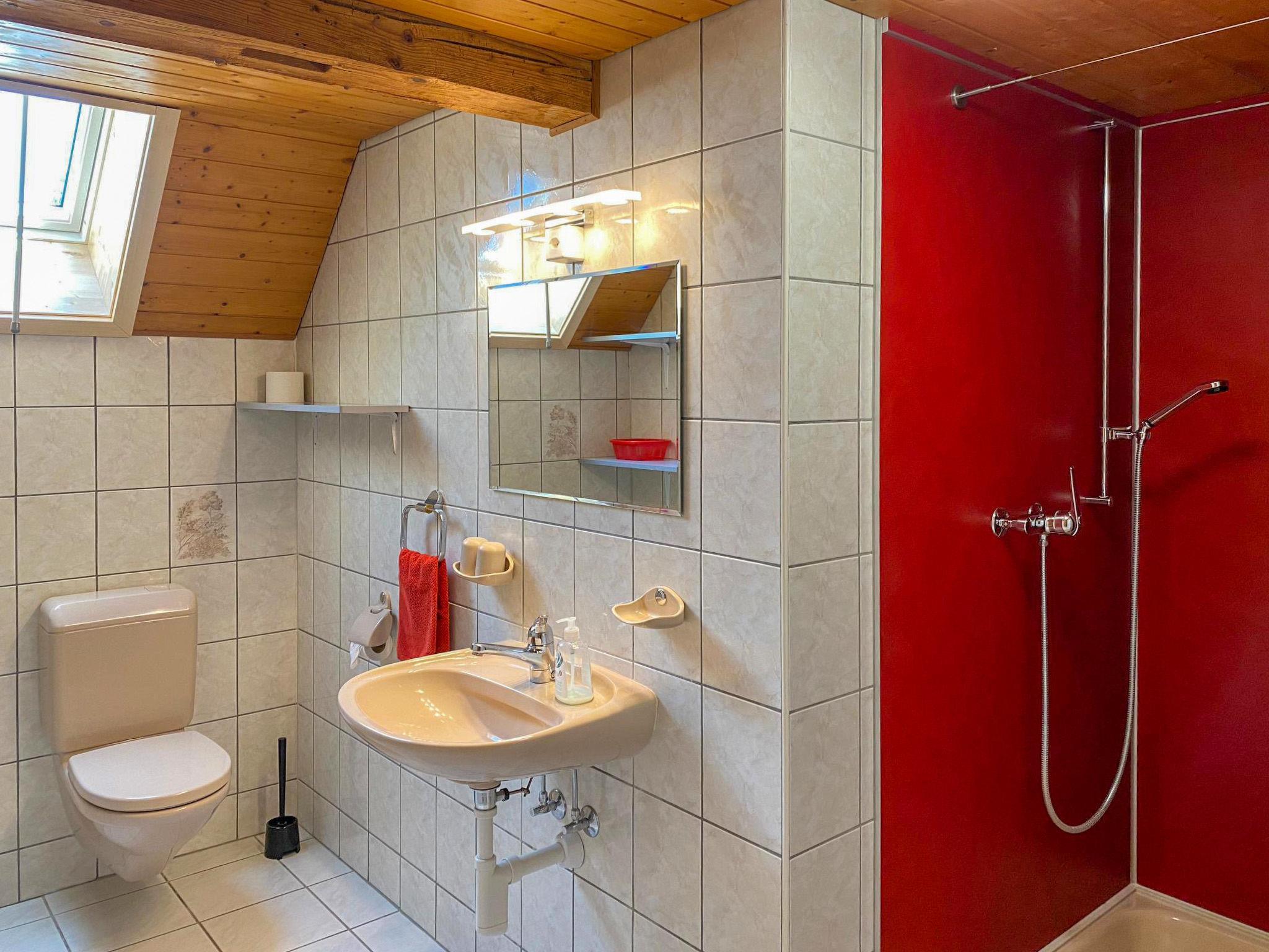 3-room apartment 84 m2 on 1st floor. Spacious, comfortable and cosy furnishings: 1 room with panoramic window with 2 beds. 1 room with 1 bed. 1 room with sloping ceilings with 1 bed. Kitchen-/living room (dishwasher, 4 ceramic glass hob hotplates, microwave) with dining table and satellite TV (flat screen). Shower/WC. Floor heating, boiler (200 litres). Patio. Beautiful view of the countryside. Facilities: Internet (WiFi, free). Parking (1 car). Please note: non-smokers only.