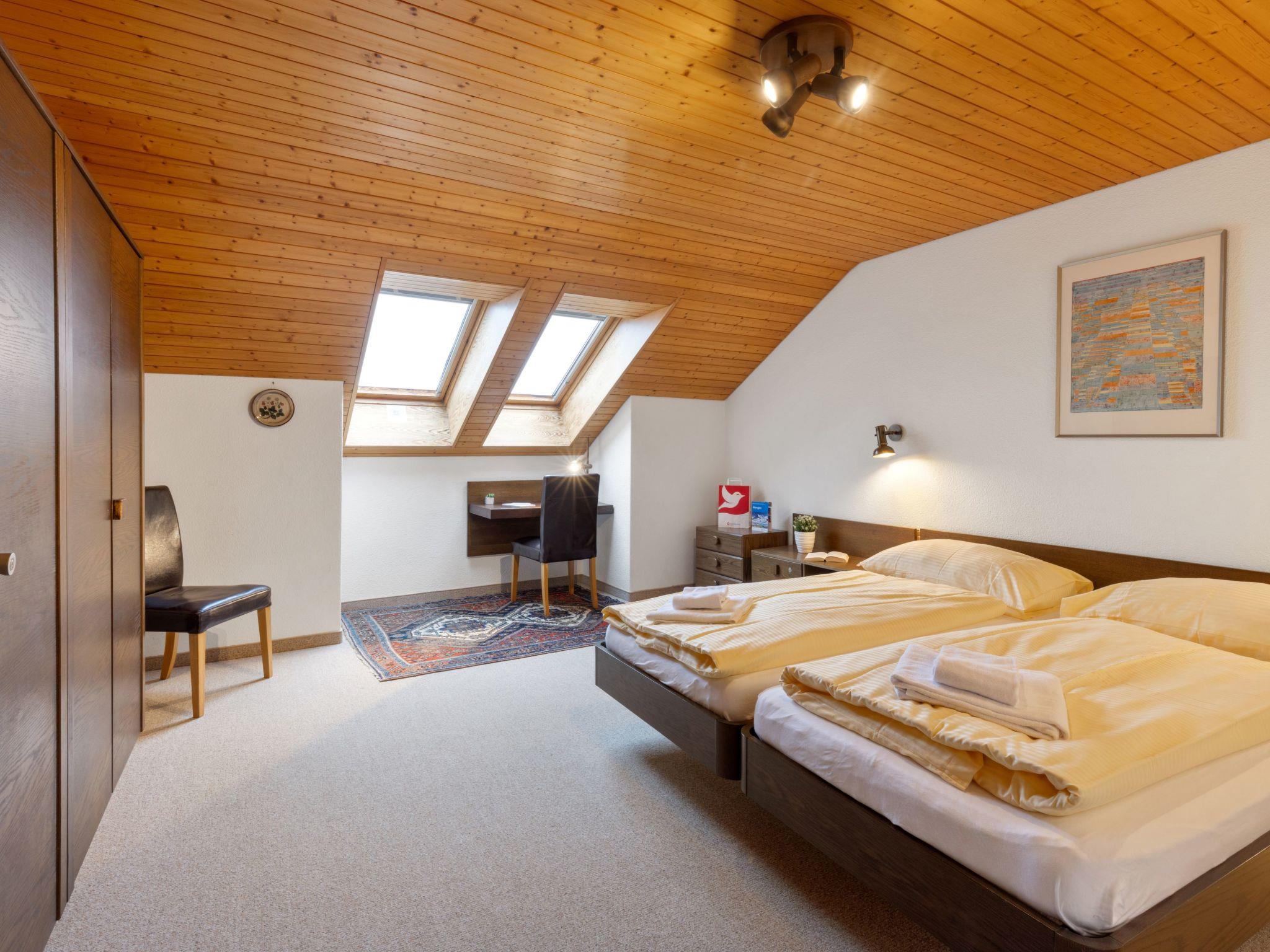 "Eiger Residence Apt.A/425", 2-room apartment 70 m2 on 4th floor. Partly with sloping ceilings, comfortable and cosy furnishings: living/dining room with 2 wall-trunk beds (90 cm, length 200 cm), cable TV, flat screen, radio, CD-player and DVD. 1 room with 2 beds (90 cm, length 200 cm). Kitchen (3 hot plates, oven, toaster, kettle, microwave, electric coffee machine, Capsules for coffee machine (Nespresso) extra, fondue Set (cheese)). Sep. WC, bath or shower/WC. Balcony. Balcony furniture. Very beautiful panoramic view of the mountains. Facilities: hair dryer. Internet (WiFi, free). Please note: suitable for families. Non-smokers only.