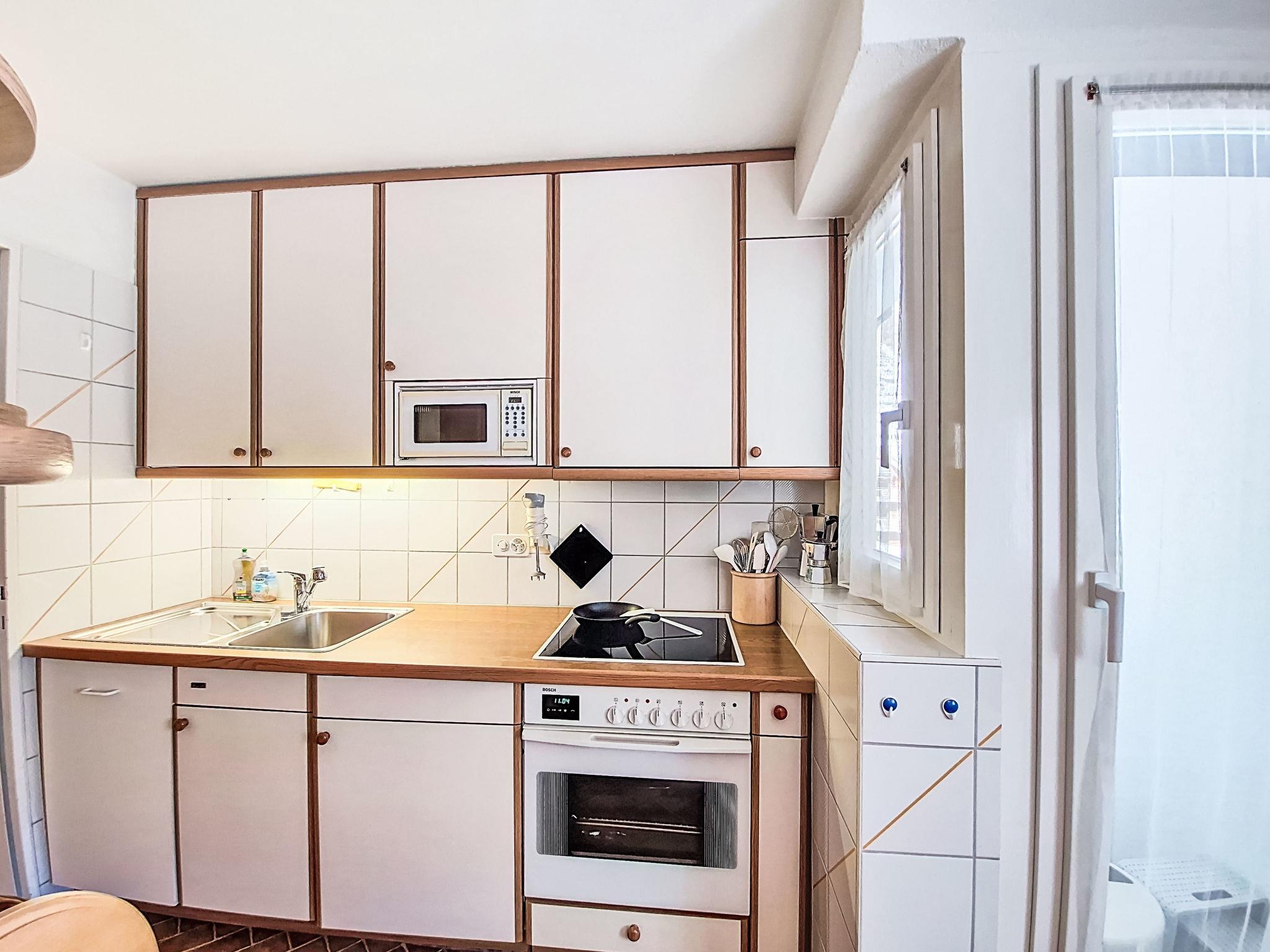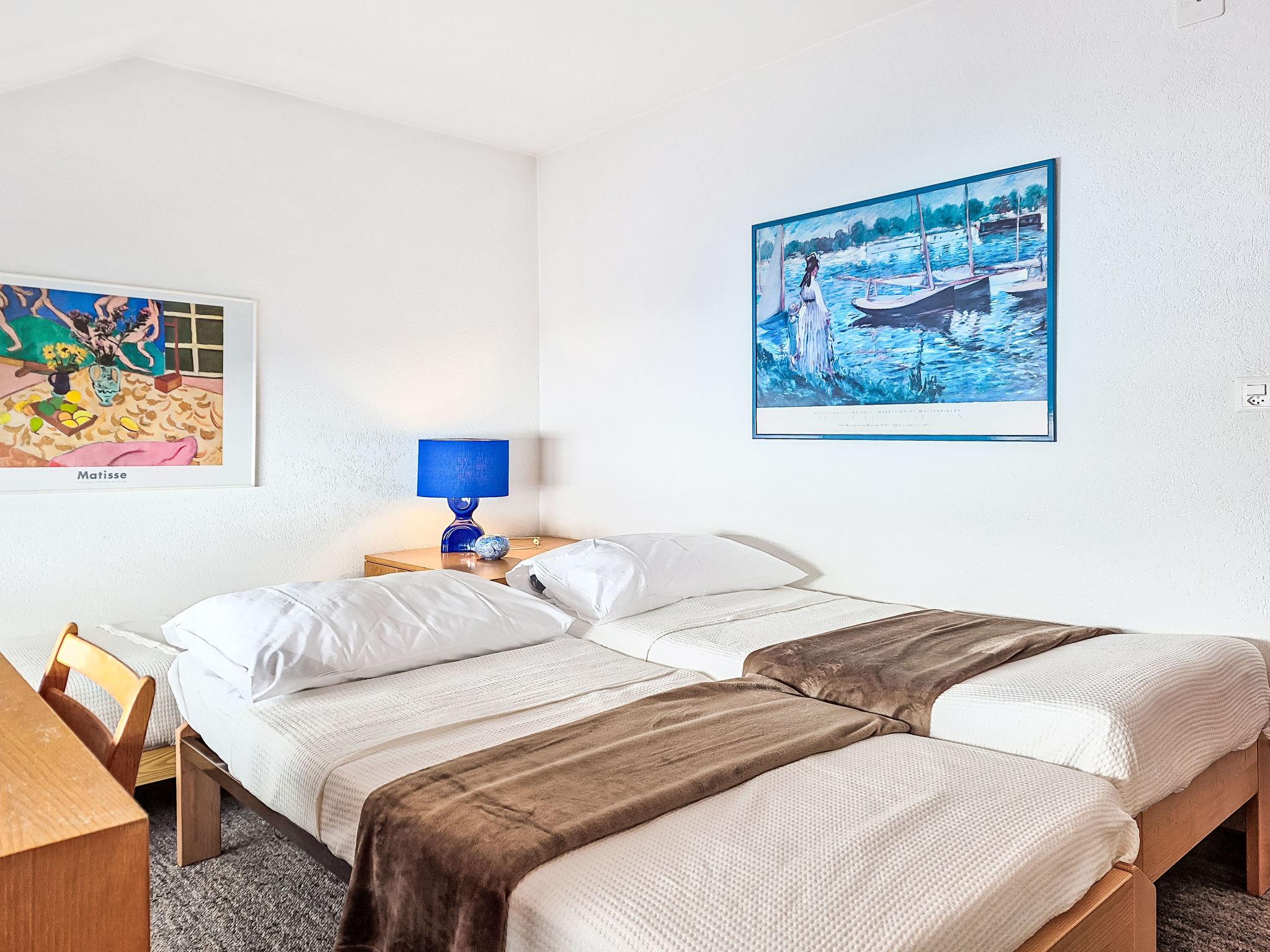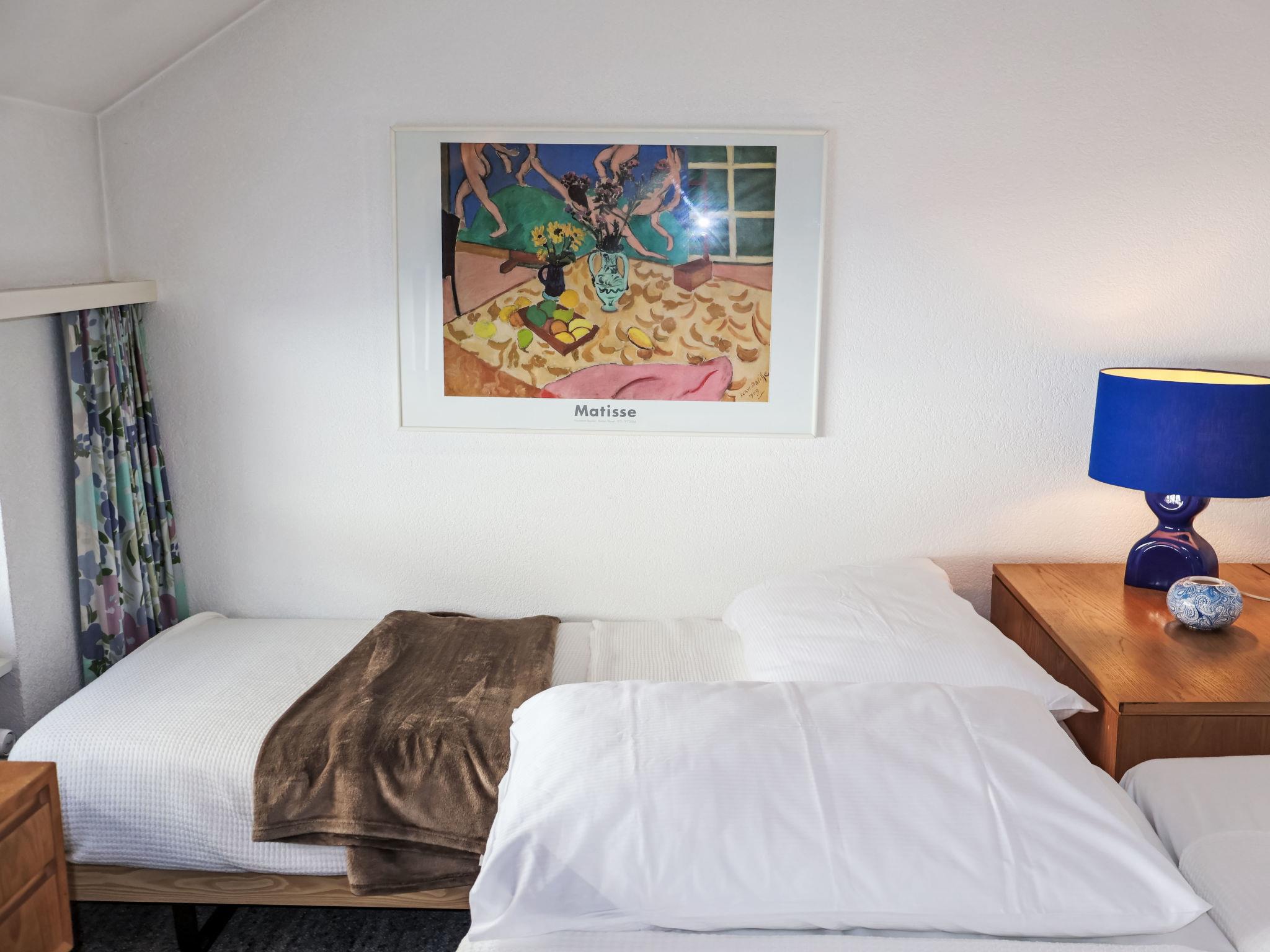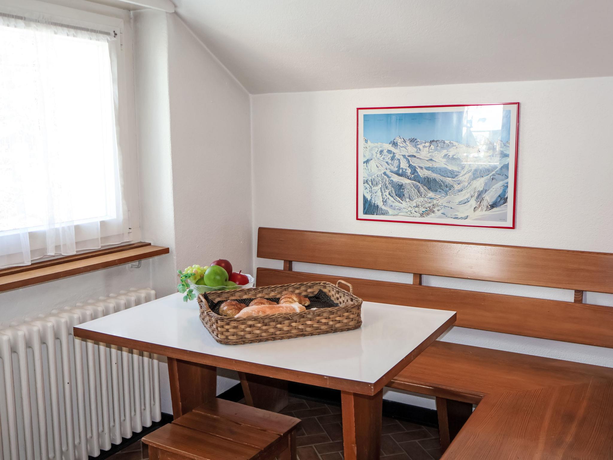 2-room apartment on 5th floor. Simple and comfortable furnishings: living/sleeping room with 1 double fold-away bed (2 x 90 cm, length 200 cm), digital TV. Exit to the balcony. 1 room with 3 beds (90 cm, length 200 cm). Kitchen (oven, dishwasher, 4 ceramic glass hob hotplates, toaster, kettle, freezer, electric coffee machine, raclette grill, fondue Set (cheese)) with dining nook. Bath/WC. Heating. Balcony. Balcony furniture. Very beautiful view of the mountains and the Matterhorn. Facilities: hair dryer. Internet (WiFi, free). Please note: non-smokers only.