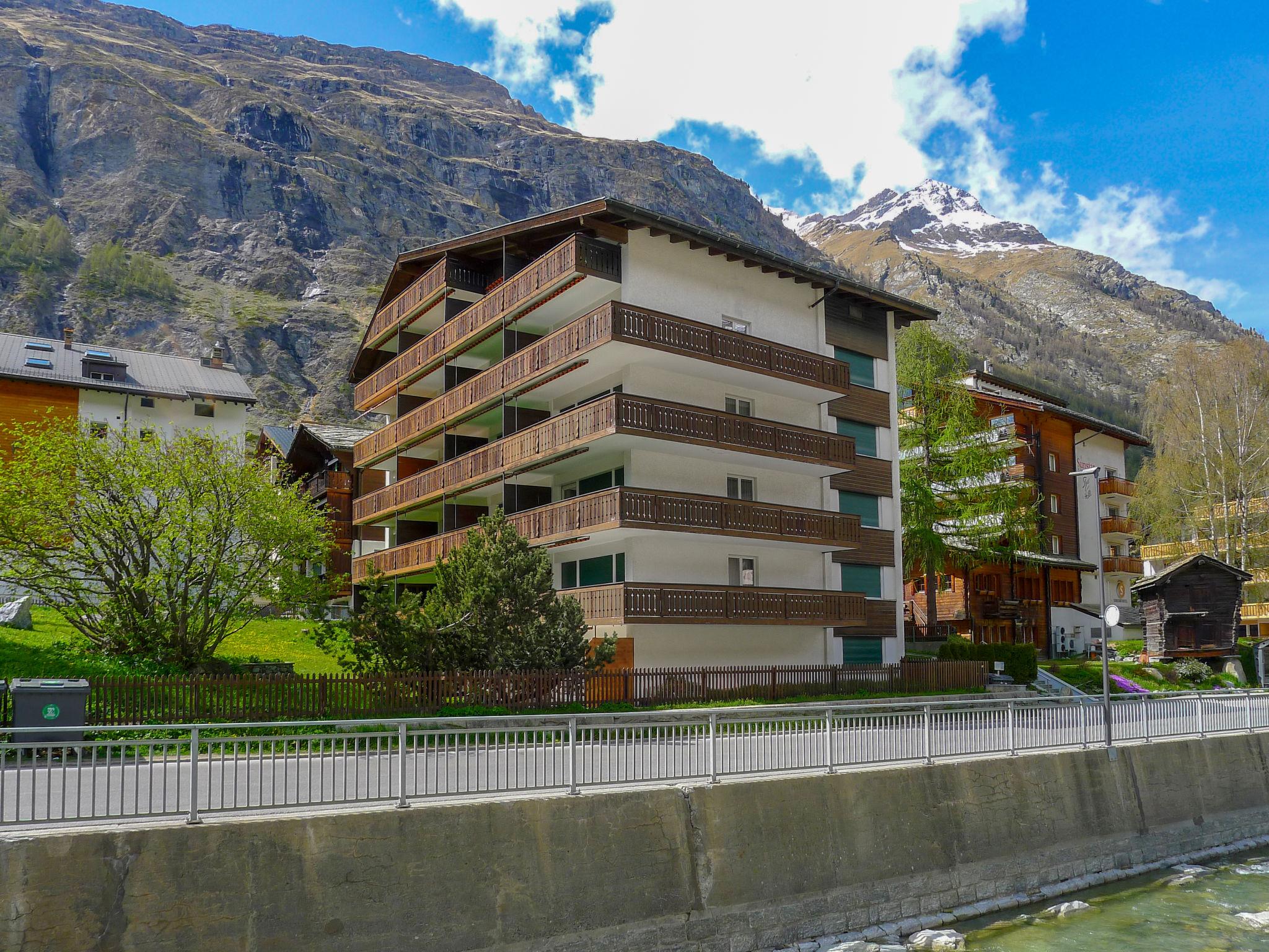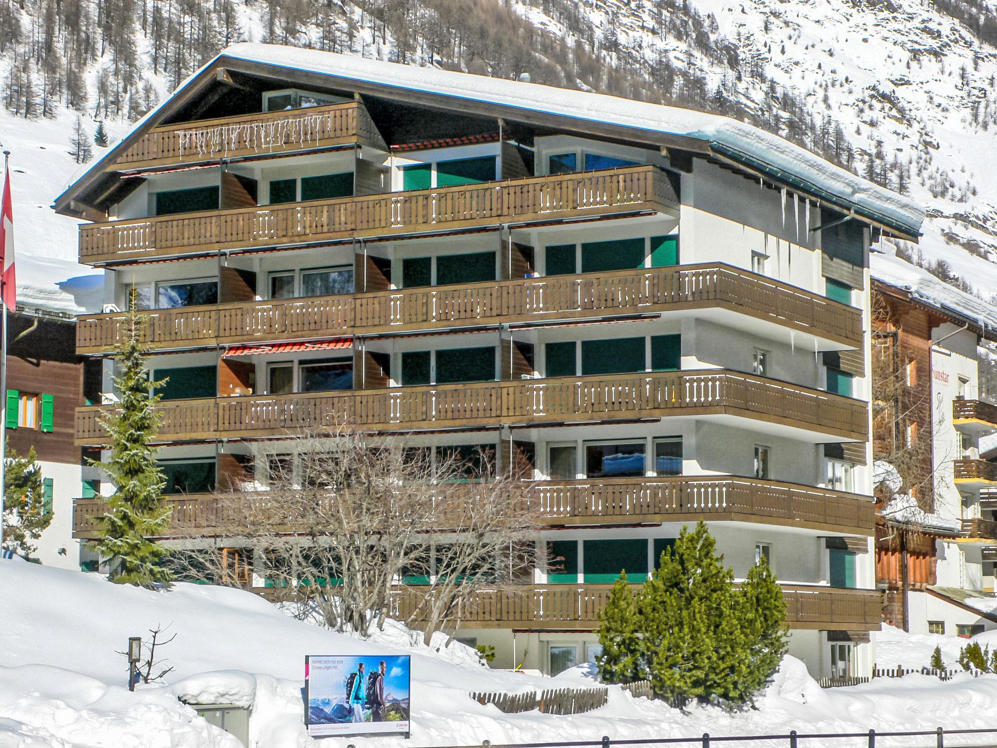 Cosy, simple apartment block "Matten (Utoring)". In the district of untere MAtten, 400 m from the centre, in a central, quiet, sunny position, south facing position. In the house: reception, lift, storage room for skis, central heating system. Supermarket, restaurant 300 m, bakery, bicycle rental 400 m, 7 minute walk to the centre, bus stop "Wiestibrücke" 20 m, railway station "Bahnhof Zermatt" 400 m. Mountain railway 200 m, ski rental 30 m, ski bus stop 10 m, ski school, children's ski school 750 m. Please note: Additional accommodations can be booked.