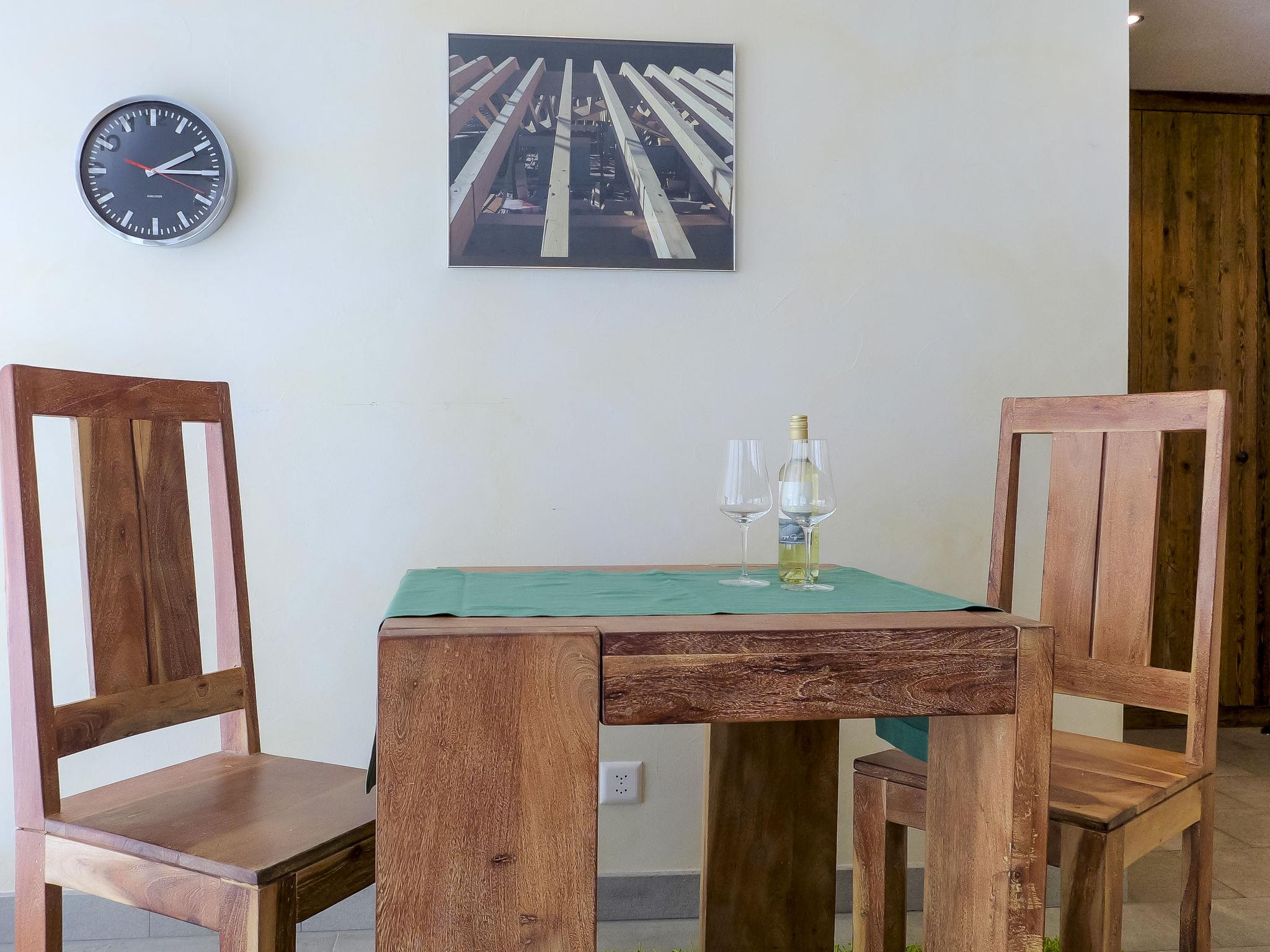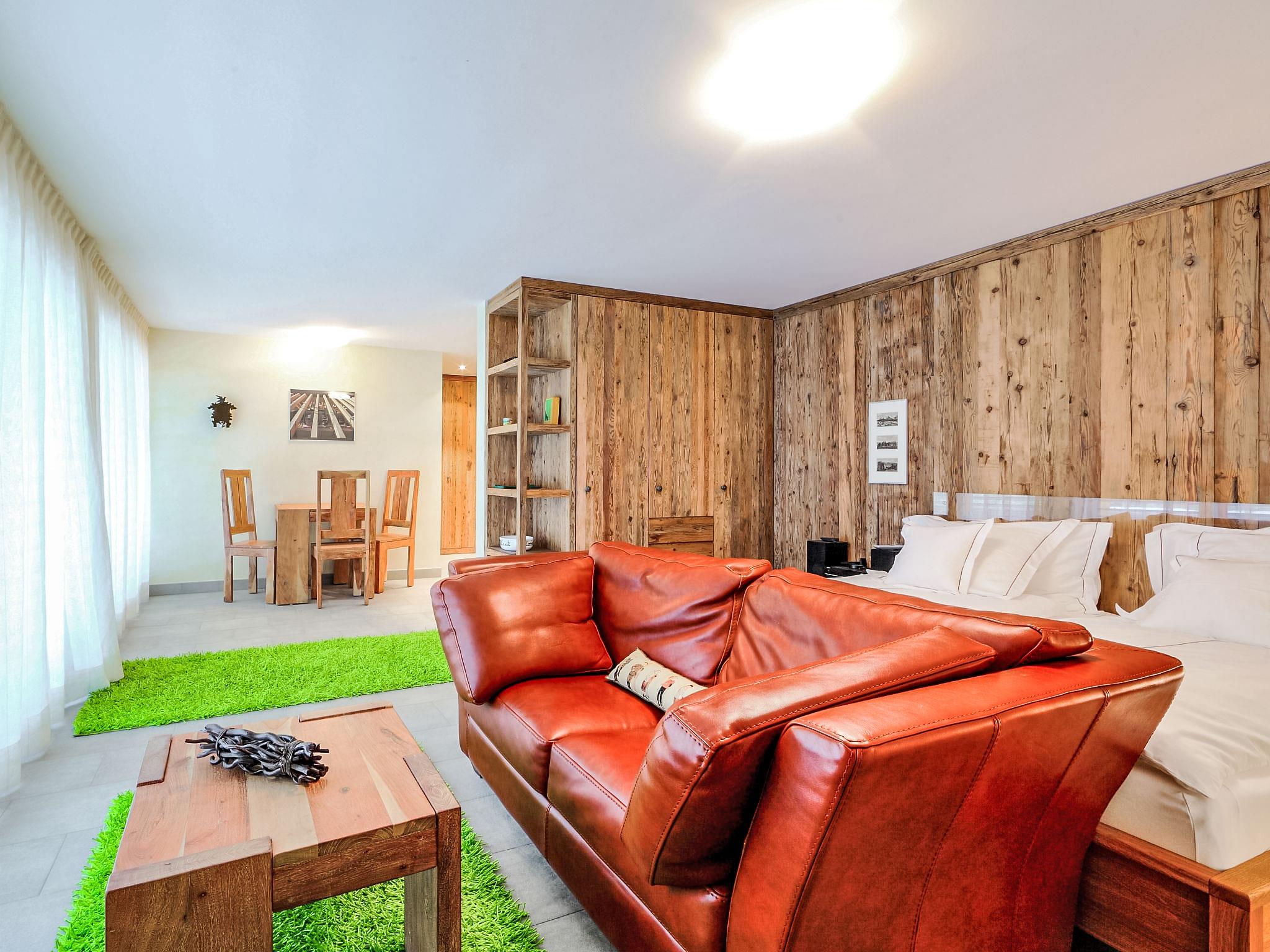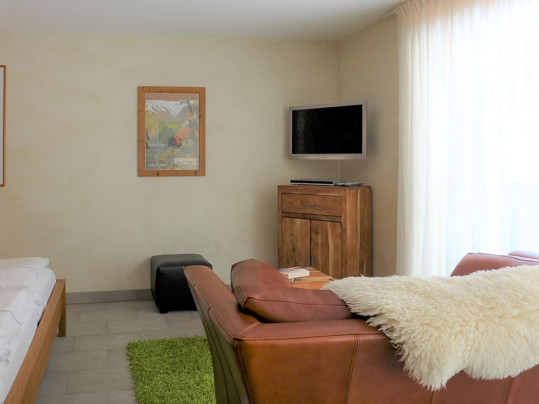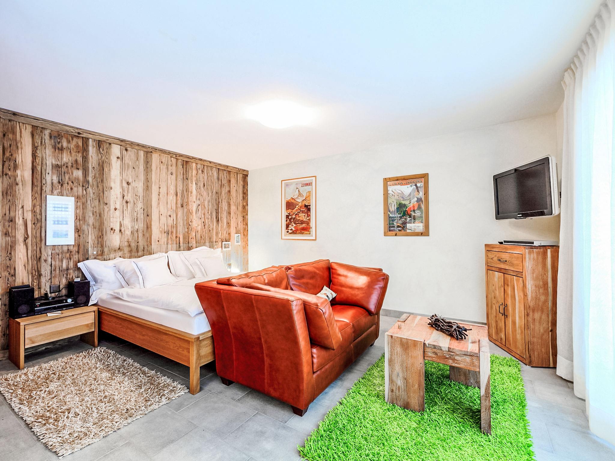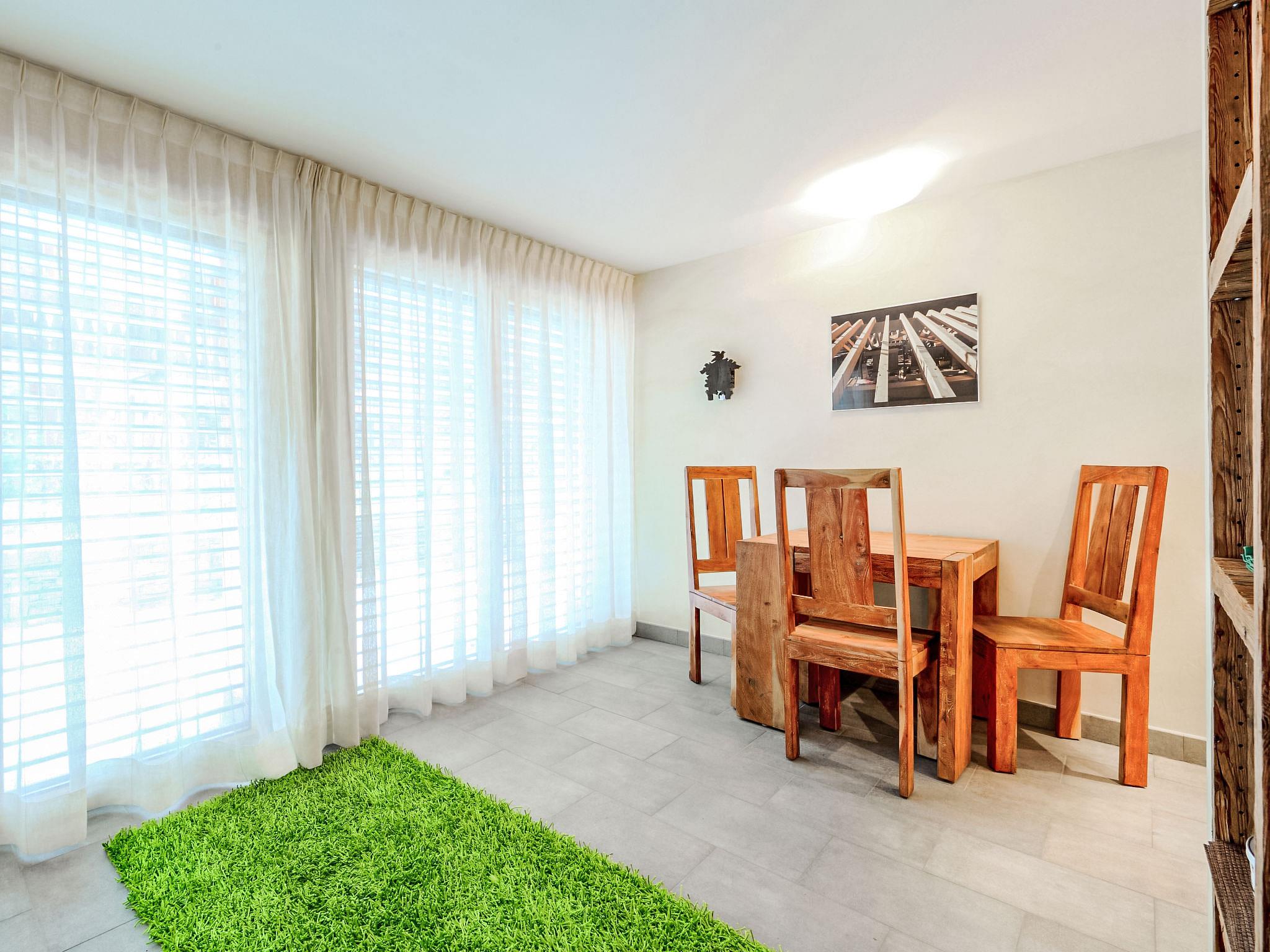 1-room apartment 39 m2, on the ground floor. Comfortable and luxurious furnishings: open living/sleeping room with 1 double bed, dining table, TV, radio, CD-player and DVD. Exit to the terrace. Open kitchen (oven, dishwasher, 4 induction hot plates, toaster, kettle, freezer, electric coffee machine, Capsules for coffee machine (Nespresso) extra, fondue Set (cheese)). Bath/WC, hydro massage bath. Small terrace. Terrace furniture. Facilities: safe, hair dryer. Internet (WiFi, free). Please note: non-smokers only.