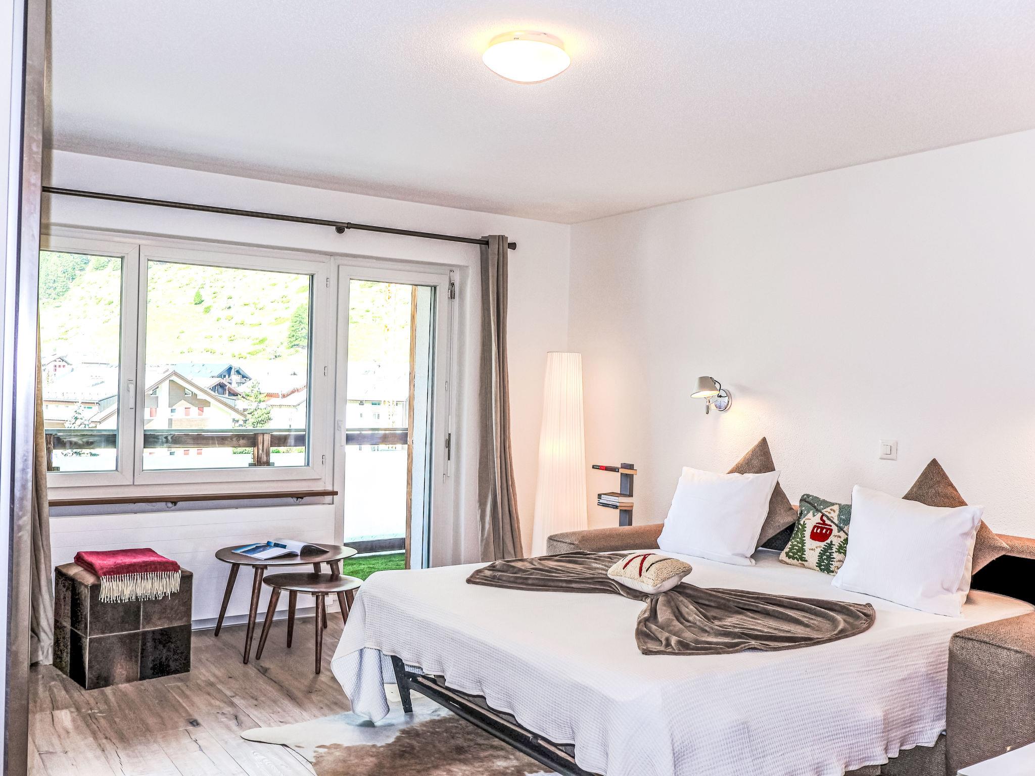 "Siesta", 1-room studio 30 m2 on 2nd floor. Bright, renovated in 2024, beautiful and cosy furnishings: open living/sleeping room with 1 double sofabed (160 cm, length 200 cm). Exit to the balcony. Open kitchen (oven, 4 ceramic glass hob hotplates, toaster, kettle, freezer, electric coffee machine) with dining table. Shower/WC. Parquet floors. Balcony. Balcony furniture. Very beautiful view of the mountains and the Matterhorn. Facilities: hair dryer. Internet (WiFi, free). Please note: non-smokers only.