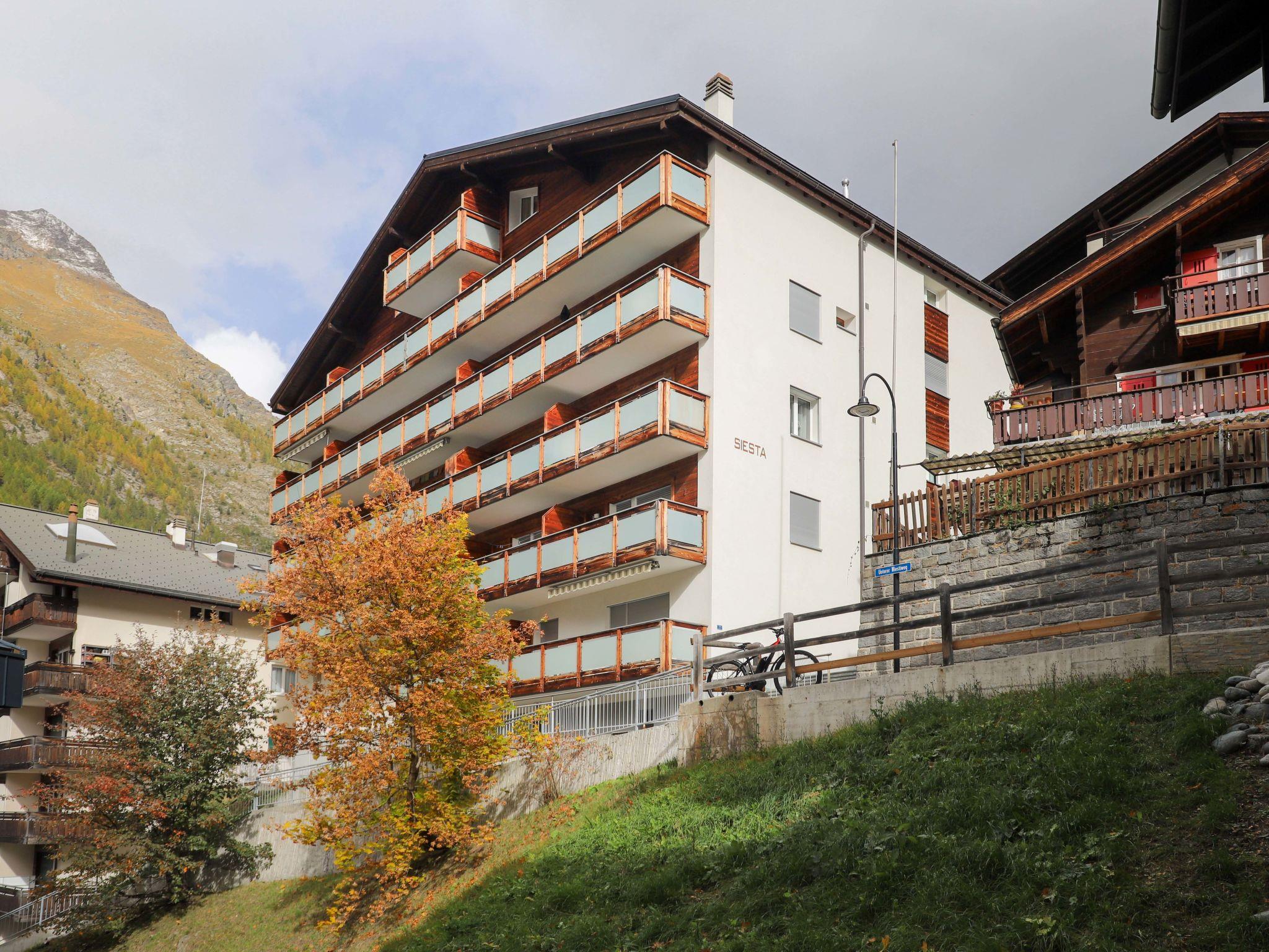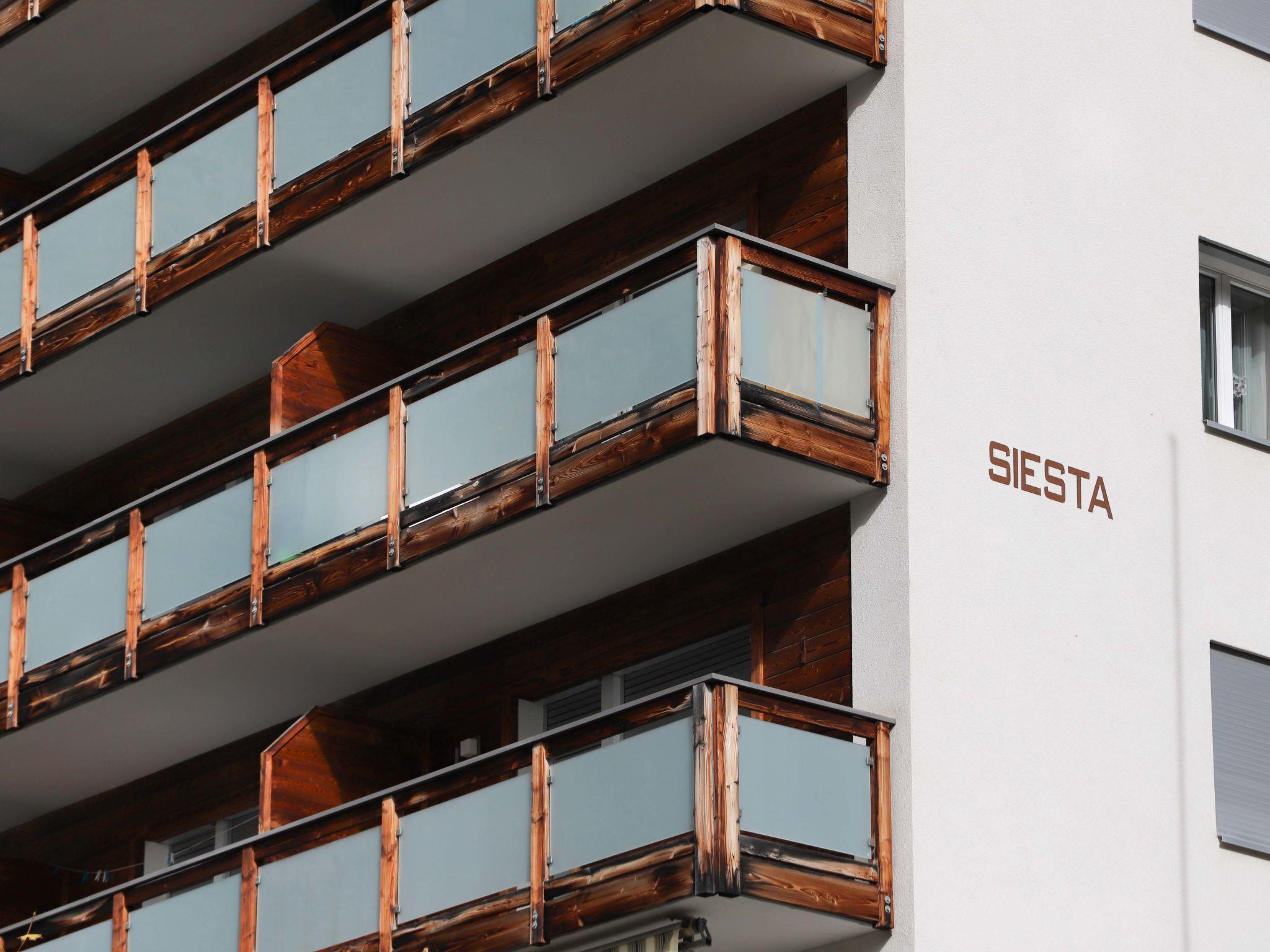 Large, beautiful apartment house "Siesta", 6 storeys, renovated. 700 m from the centre of Zermatt, in a quiet, sunny position. In the house: lift, storage room for skis, central heating system. Supermarket 650 m, restaurant 300 m, bakery 650 m, bicycle rental 300 m, 10 minute walk to the centre, bus stop "Wiestibrücke" 300 m, railway station "Bahnhof Zermatt" 650 m. Mountain railway 550 m, ski rental 300 m, ski bus stop 300 m. The keys‘ handover takes place by the agency Interhome in Zermatt.