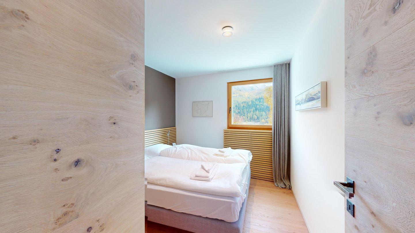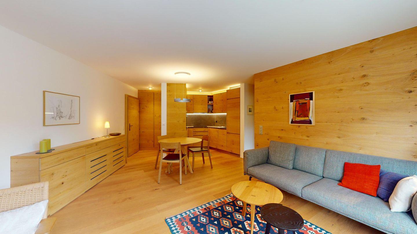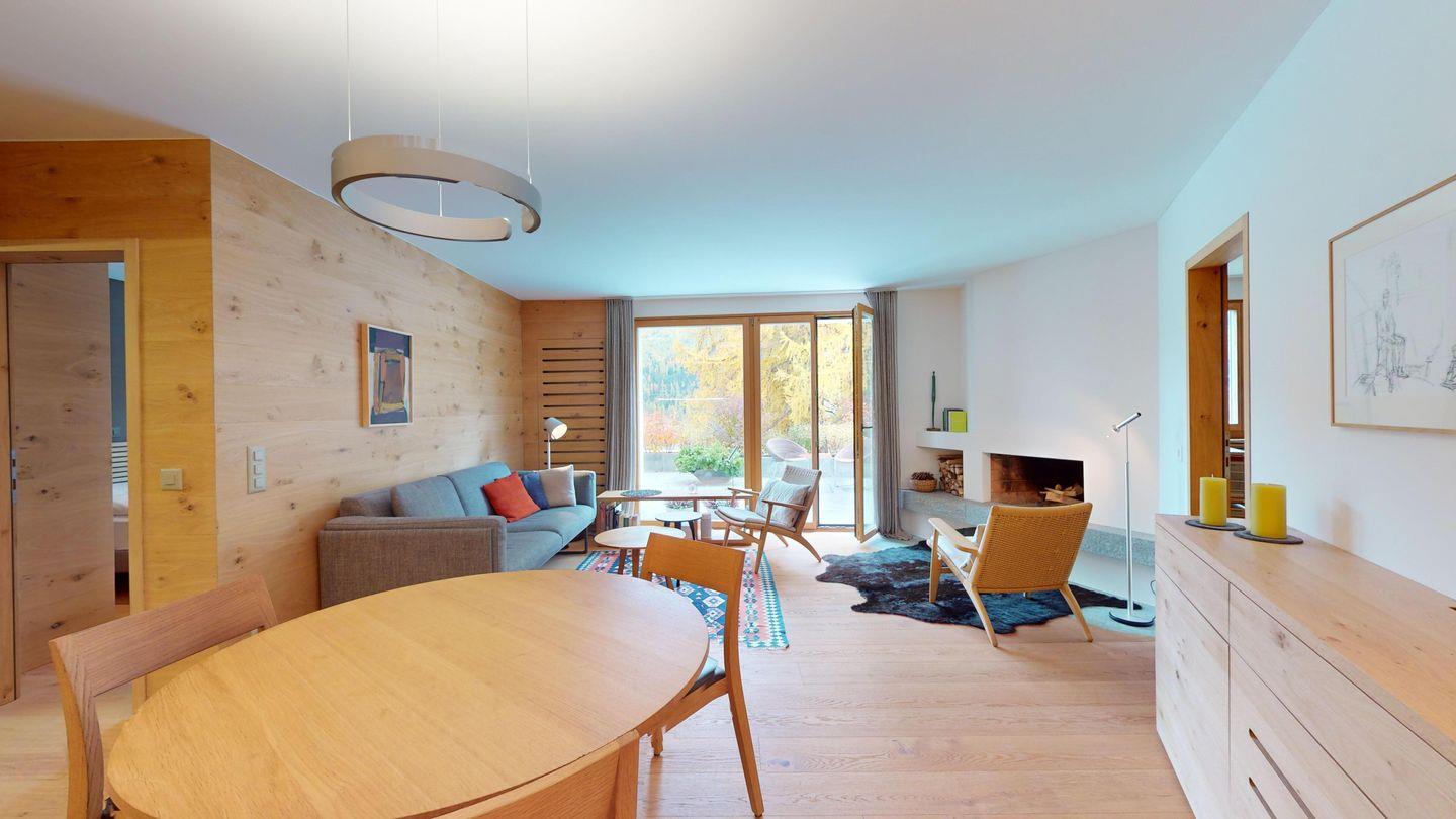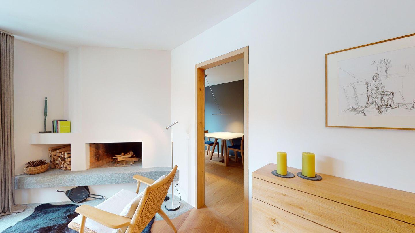 Gemütliche 3½-Zimmerwohnung im 1. Stock. Eingang mit Gardarobe. Wohnzimmer mit Cheminée und grosses Terrasse mit Gasgrill. Internet, kein Fernseher. Schlafzimmer mit Doppelbett (160cm breit). Offene Küche mit Herd, Ofen, Geschirrspüler, Kühlschrank und Chicco d'Oro Kaffeemaschine. Geschlossenes Büro mit Schreibtisch. Badezimmer mit Dusche, WC, Lavabo. Parkplatz in einer Einzelbox. Gemeinschaftliche Waschküche und Skiraum. Nichtraucherwohnung. Haustiere sind nicht erlaubt.