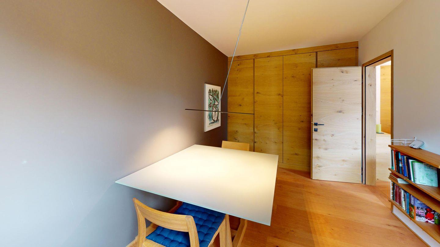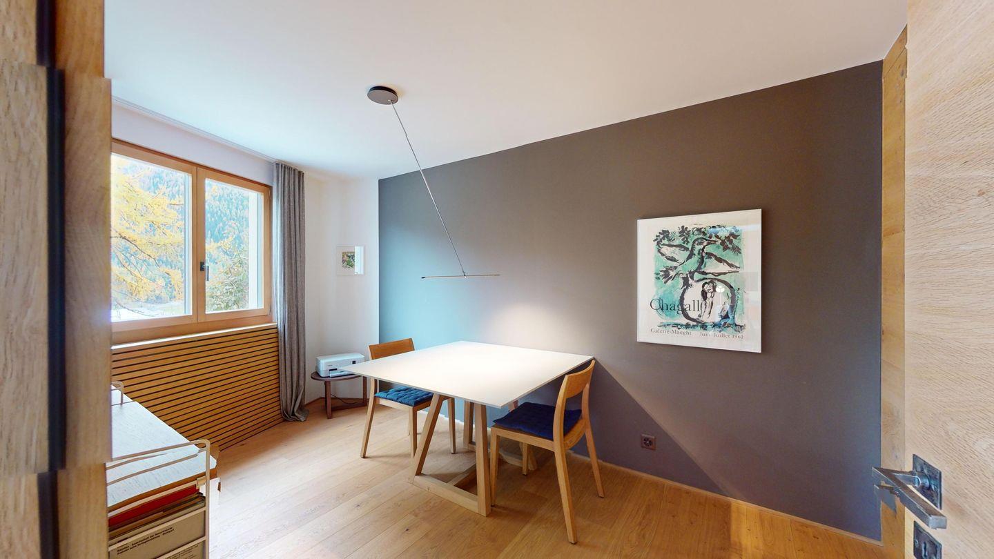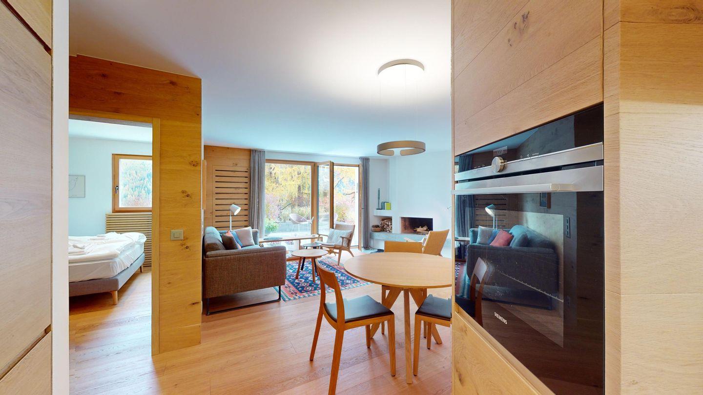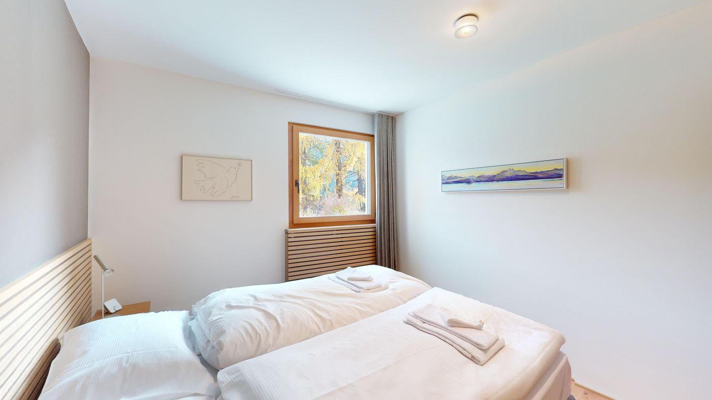 Gemütliche 3½-Zimmerwohnung im 1. Stock. Eingang mit Gardarobe. Wohnzimmer mit Cheminée und grosses Terrasse mit Gasgrill. Internet, kein Fernseher. Schlafzimmer mit Doppelbett (160cm breit). Offene Küche mit Herd, Ofen, Geschirrspüler, Kühlschrank und Chicco d'Oro Kaffeemaschine. Geschlossenes Büro mit Schreibtisch. Badezimmer mit Dusche, WC, Lavabo. Parkplatz in einer Einzelbox. Gemeinschaftliche Waschküche und Skiraum. Nichtraucherwohnung. Haustiere sind nicht erlaubt.