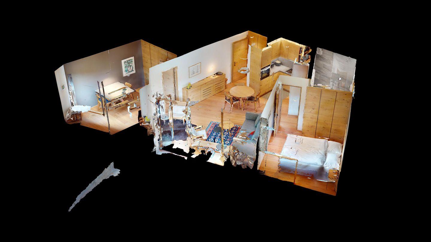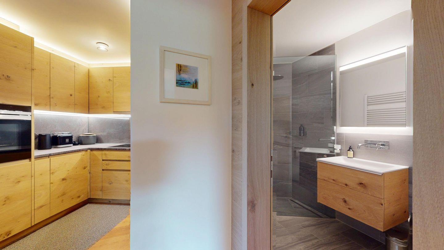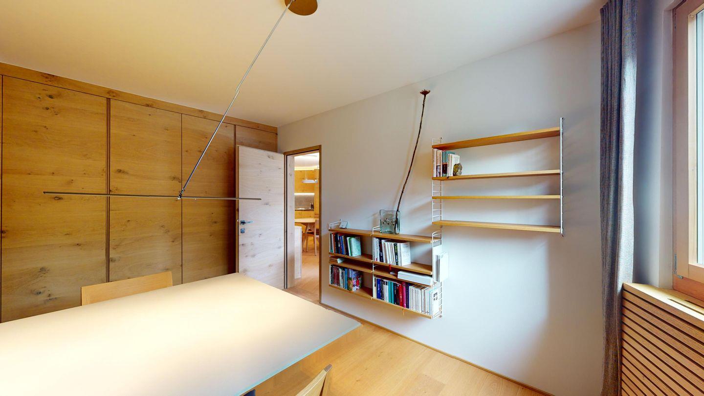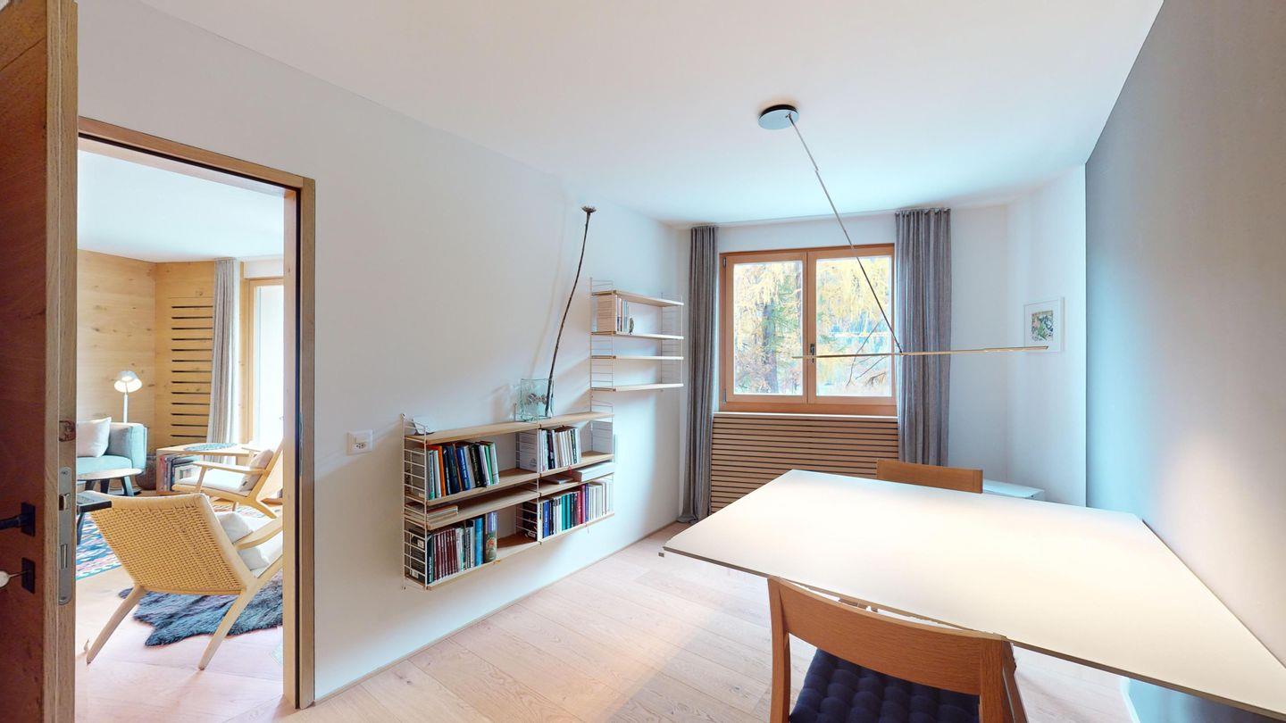 Gemütliche 3½-Zimmerwohnung im 1. Stock. Eingang mit Gardarobe. Wohnzimmer mit Cheminée und grosses Terrasse mit Gasgrill. Internet, kein Fernseher. Schlafzimmer mit Doppelbett (160cm breit). Offene Küche mit Herd, Ofen, Geschirrspüler, Kühlschrank und Chicco d'Oro Kaffeemaschine. Geschlossenes Büro mit Schreibtisch. Badezimmer mit Dusche, WC, Lavabo. Parkplatz in einer Einzelbox. Gemeinschaftliche Waschküche und Skiraum. Nichtraucherwohnung. Haustiere sind nicht erlaubt.