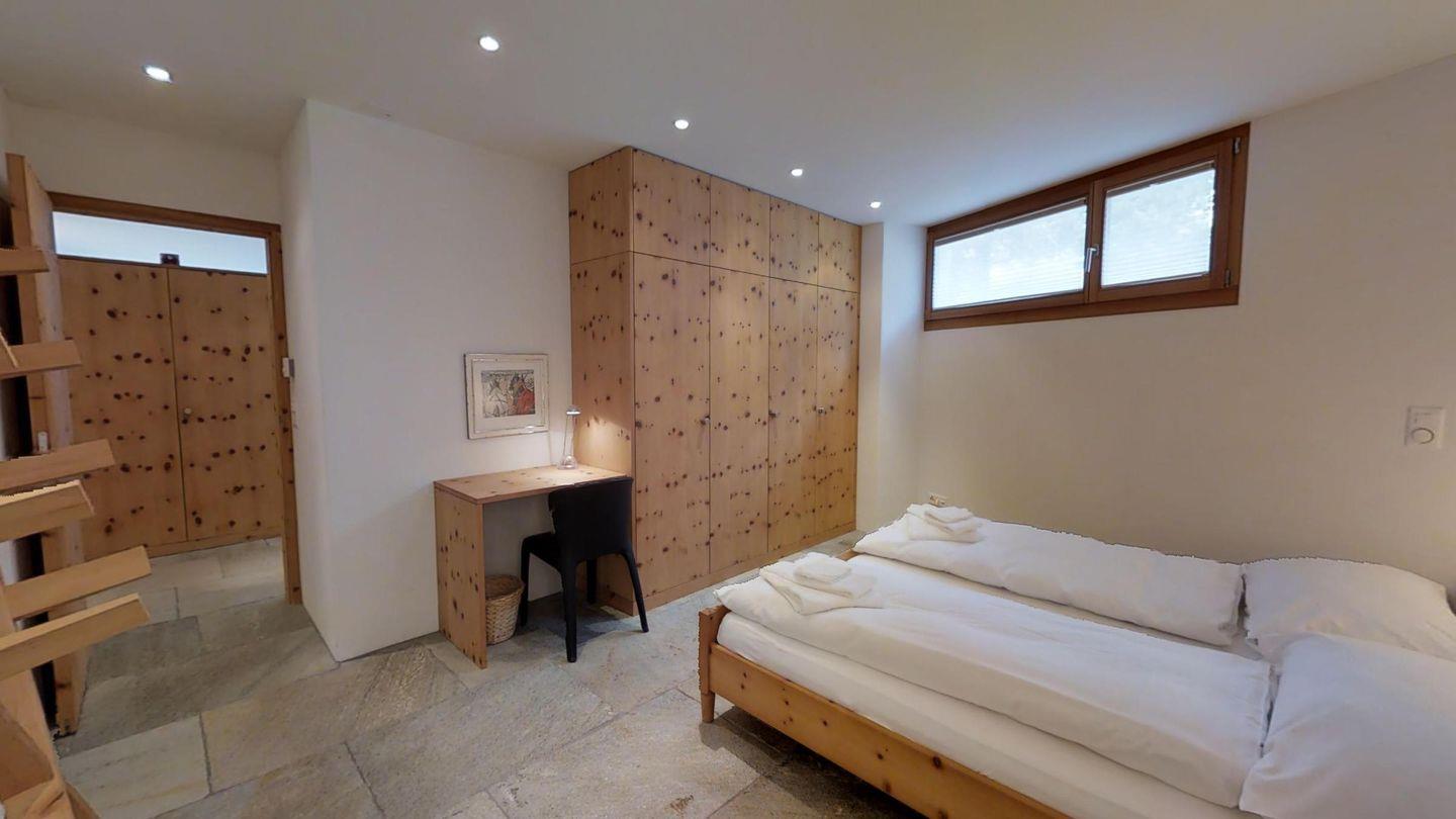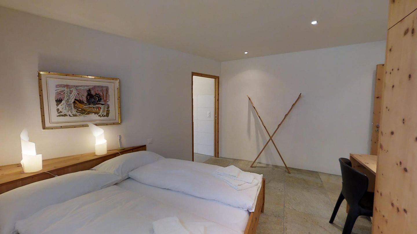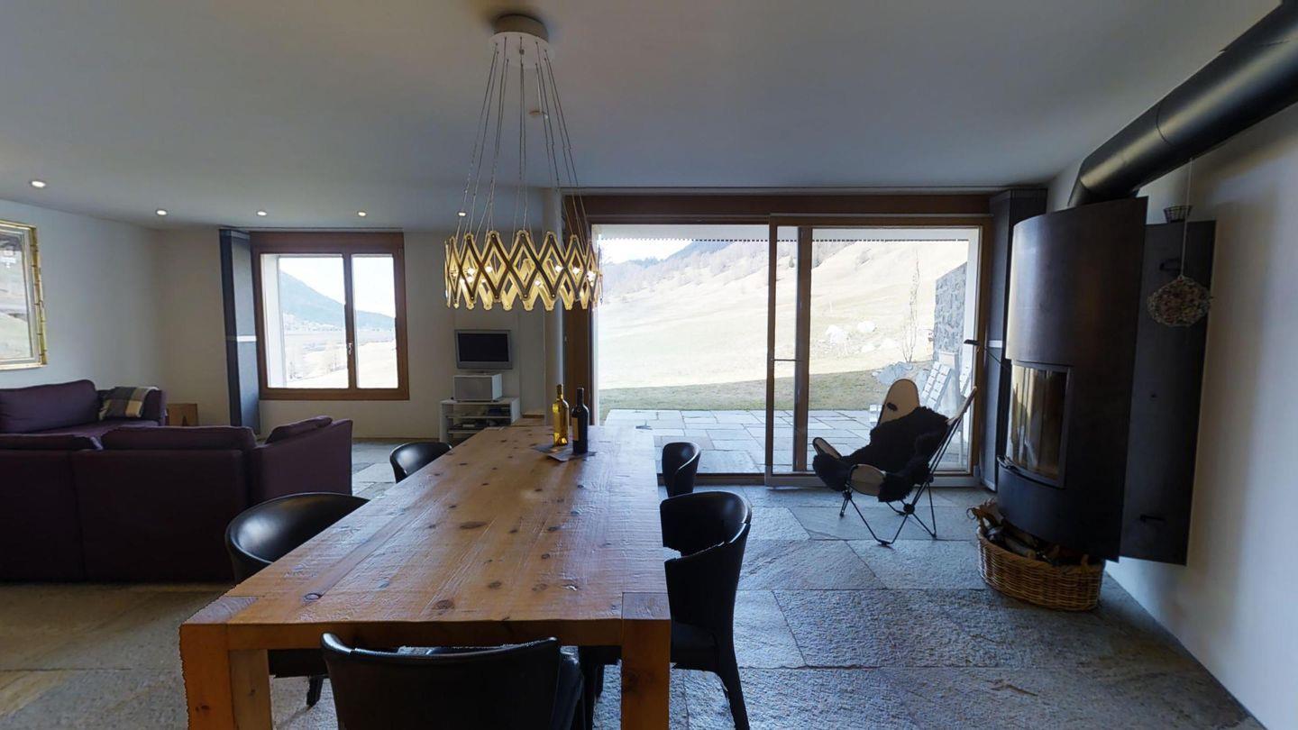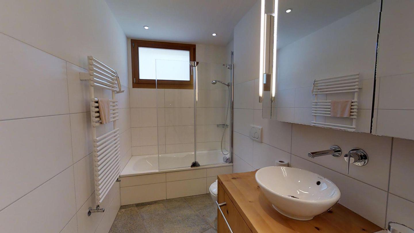 Sehr geschmackvoll eingerichtete 3½ Zimmerwohnung im Erdgeschoss ca. 110m2. Eingang mit Garderobe. Doppelschlafzimmer mit eigenem Bad mit Wanne, Lavabo, WC und Fenster. Wohn-/Esszimmer mit Kamin und Gartensitzplatz. Schöne Aussicht. TV, Radio und Internet. Offene Küche mit Kühlschrank/Gefrierfach, Backofen, Chicco d'Oro Kaffeemaschine, Geschirrspülmaschine. Schrank mit Waschmaschine und Tumbler. Doppelschlafzimmer mit Badezimmer mit Dusche, Doppellavabo und WC. Alles Steinböden. Ein Garagenplatz, Haustiere sind erlaubt.
