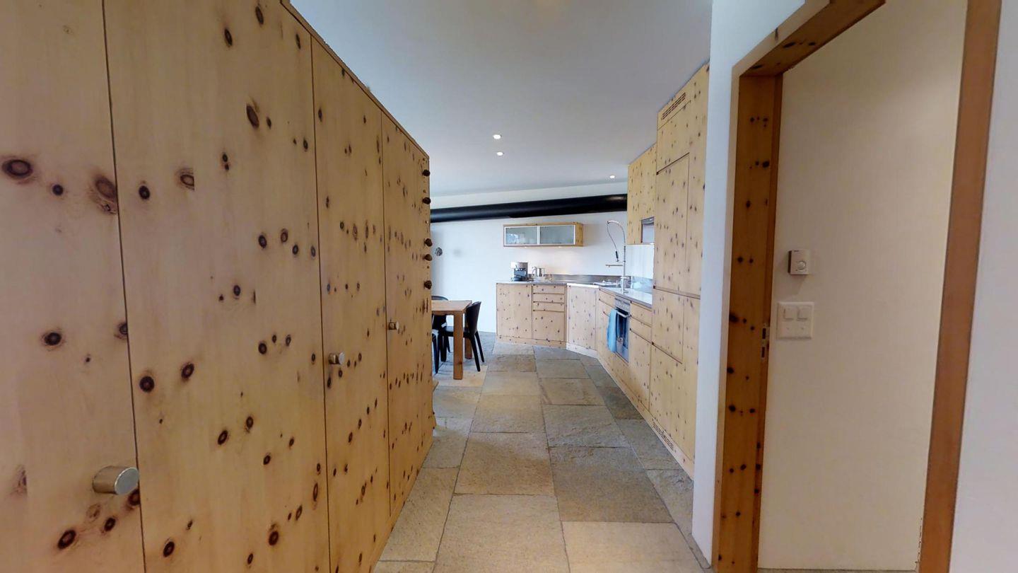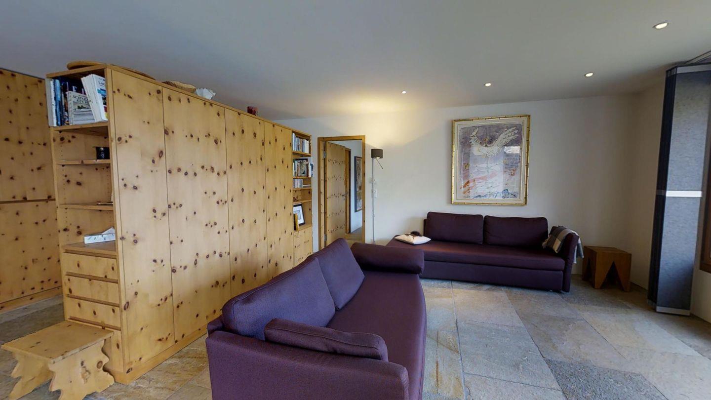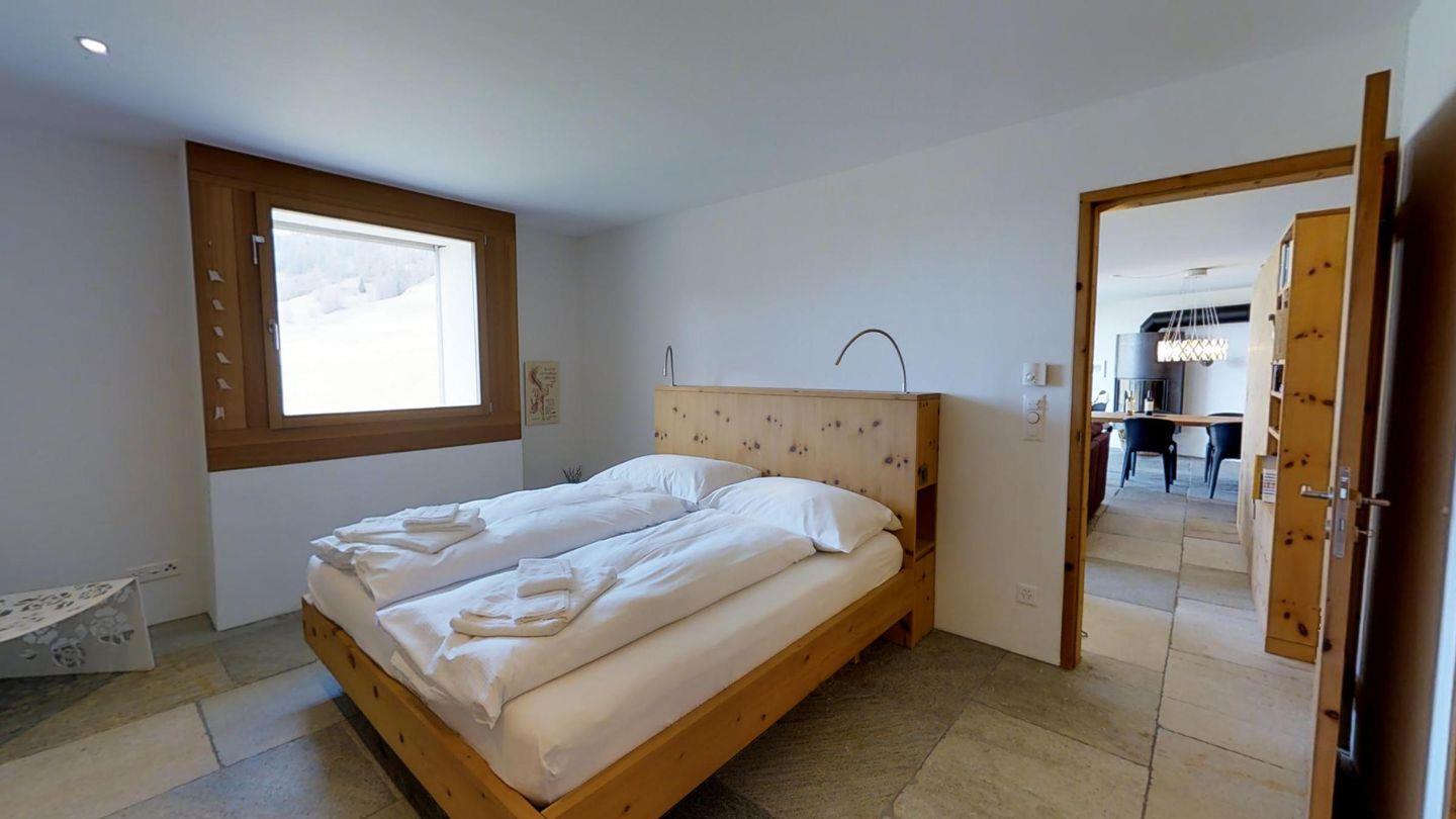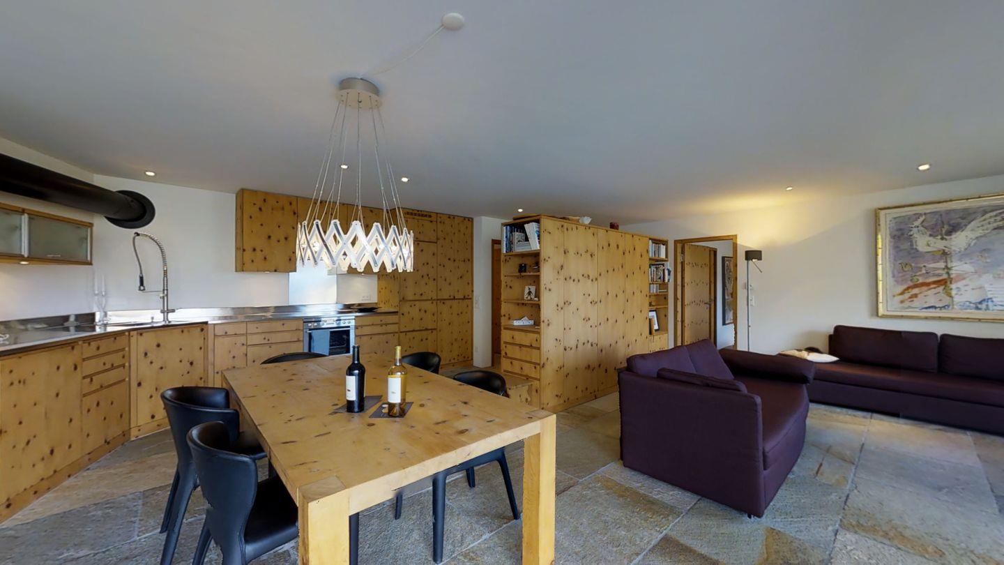 Sehr geschmackvoll eingerichtete 3½ Zimmerwohnung im Erdgeschoss ca. 110m2. Eingang mit Garderobe. Doppelschlafzimmer mit eigenem Bad mit Wanne, Lavabo, WC und Fenster. Wohn-/Esszimmer mit Kamin und Gartensitzplatz. Schöne Aussicht. TV, Radio und Internet. Offene Küche mit Kühlschrank/Gefrierfach, Backofen, Chicco d'Oro Kaffeemaschine, Geschirrspülmaschine. Schrank mit Waschmaschine und Tumbler. Doppelschlafzimmer mit Badezimmer mit Dusche, Doppellavabo und WC. Alles Steinböden. Ein Garagenplatz, Haustiere sind erlaubt.
