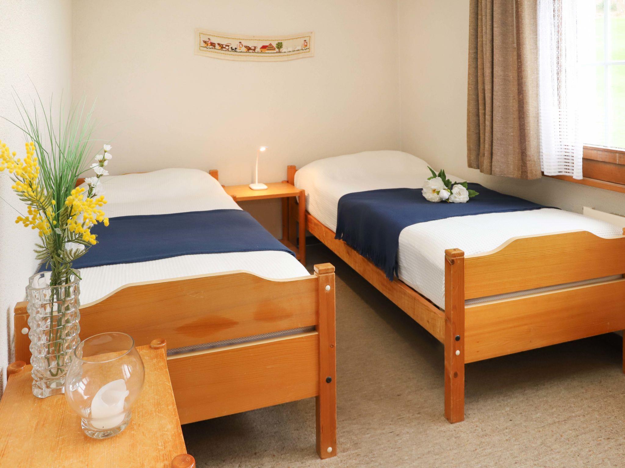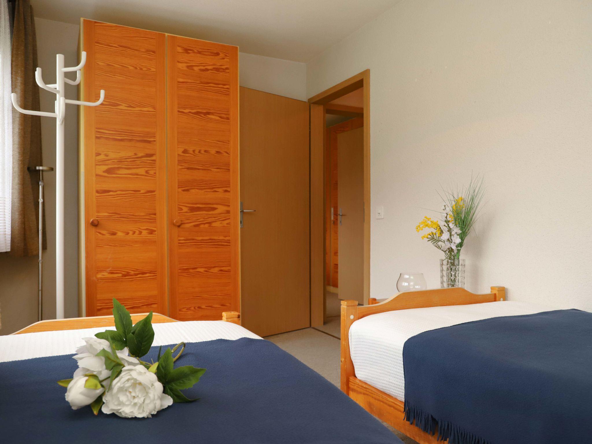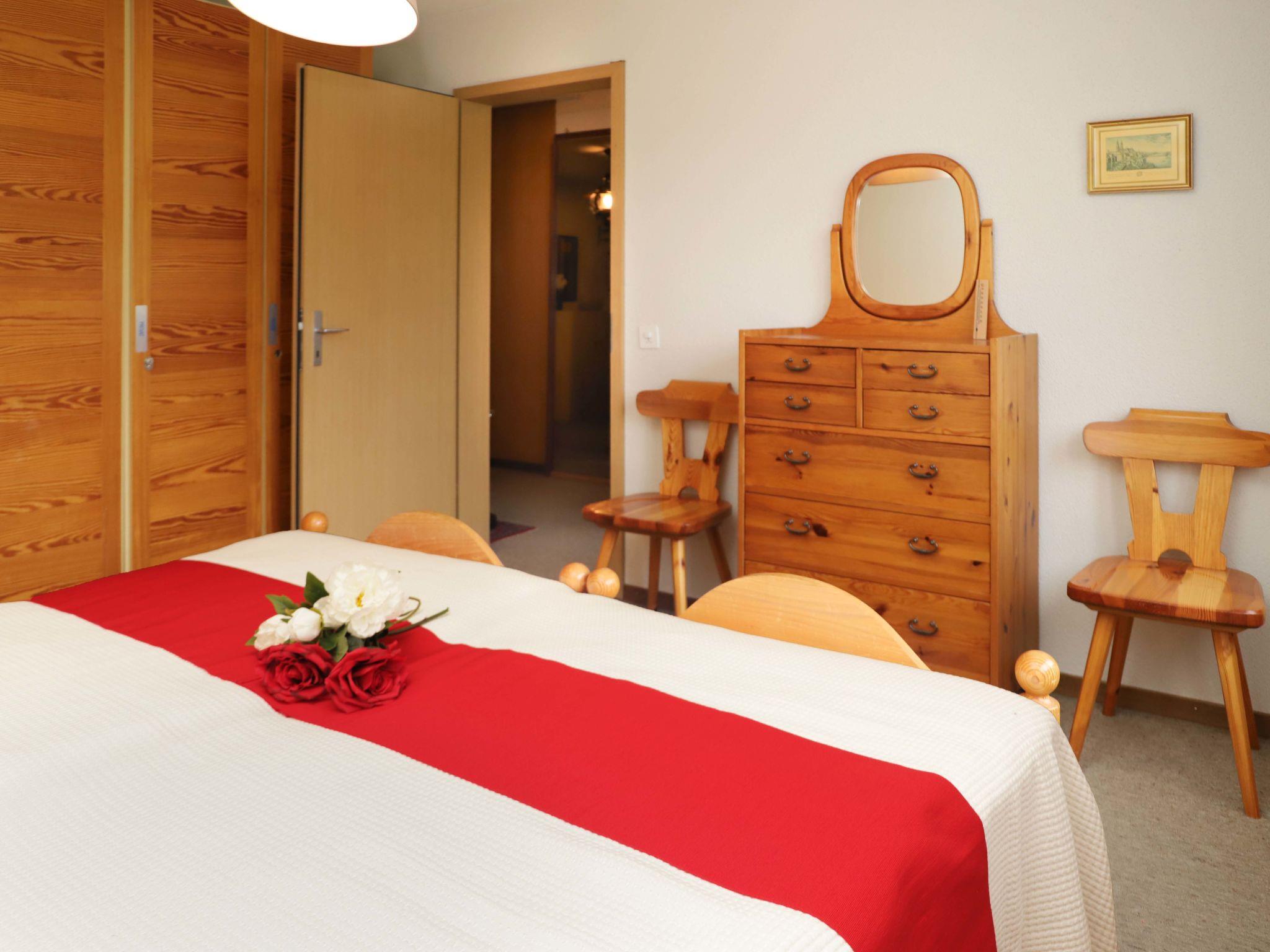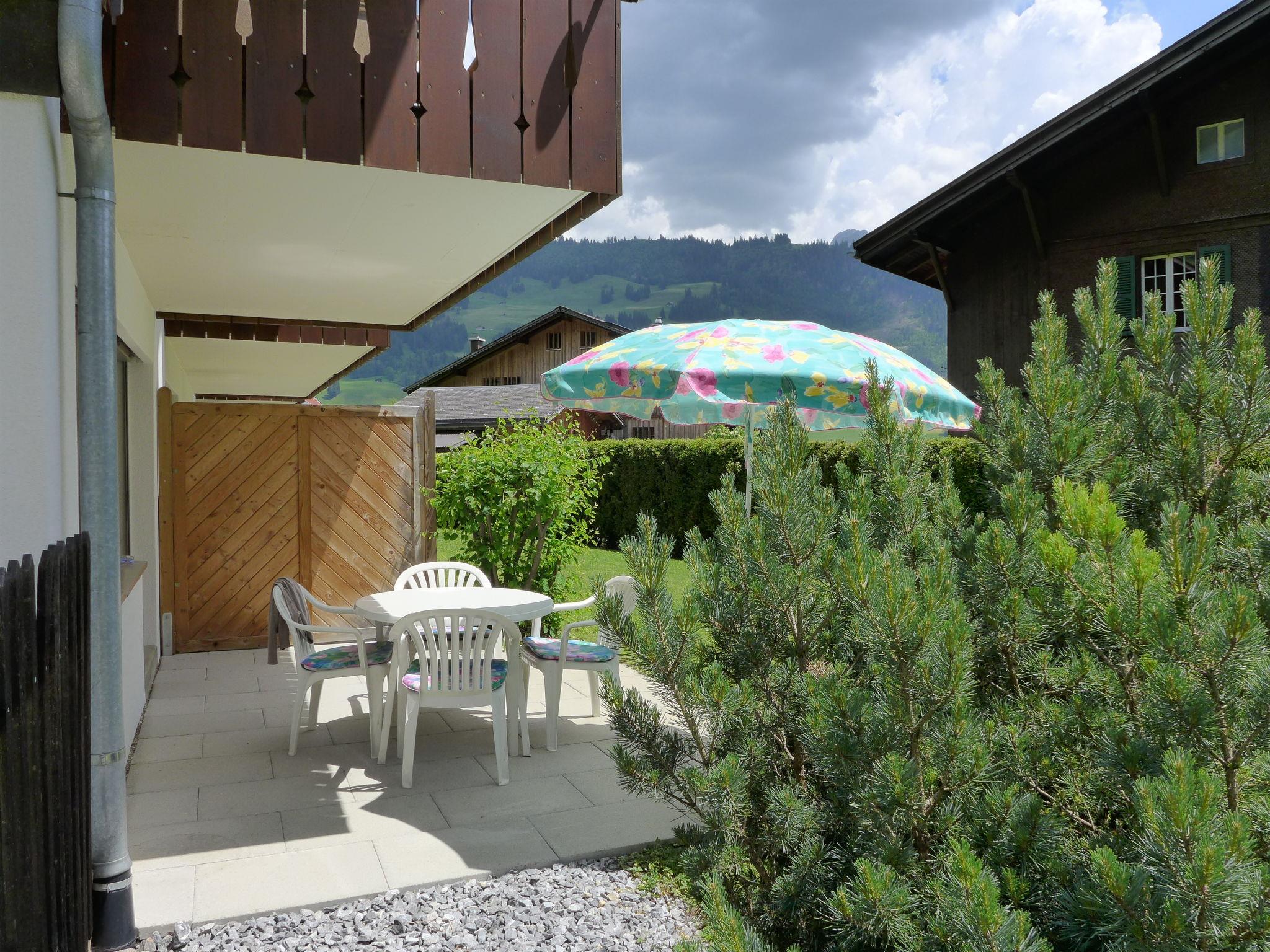 "Chalet Simmental P-3", 3-room apartment 66 m2, on the ground floor, south facing position. Spacious, very cosy furnishings: open living/dining room 23 m2 with dining nook, digital TV and radio. Exit to the terrace. 1 children's room 10 m2 with 2 beds (90 cm, length 190 cm). 1 double bedroom 15 m2 with 1 double bed (2 x 90 cm, length 200 cm). (3 hot plates, oven, dishwasher, toaster, kettle, microwave, electric coffee machine, Capsules for coffee machine (Nespresso) extra, raclette grill, fondue Set (cheese)) with small dining table. Bath/WC. Carpet. Large terrace, south facing position. Terrace furniture. Beautiful view of the mountains. Facilities: hair dryer. Internet (WiFi, free). Garage space n 3 on the property (1 car). Please note: suitable for families. Non-smokers only.