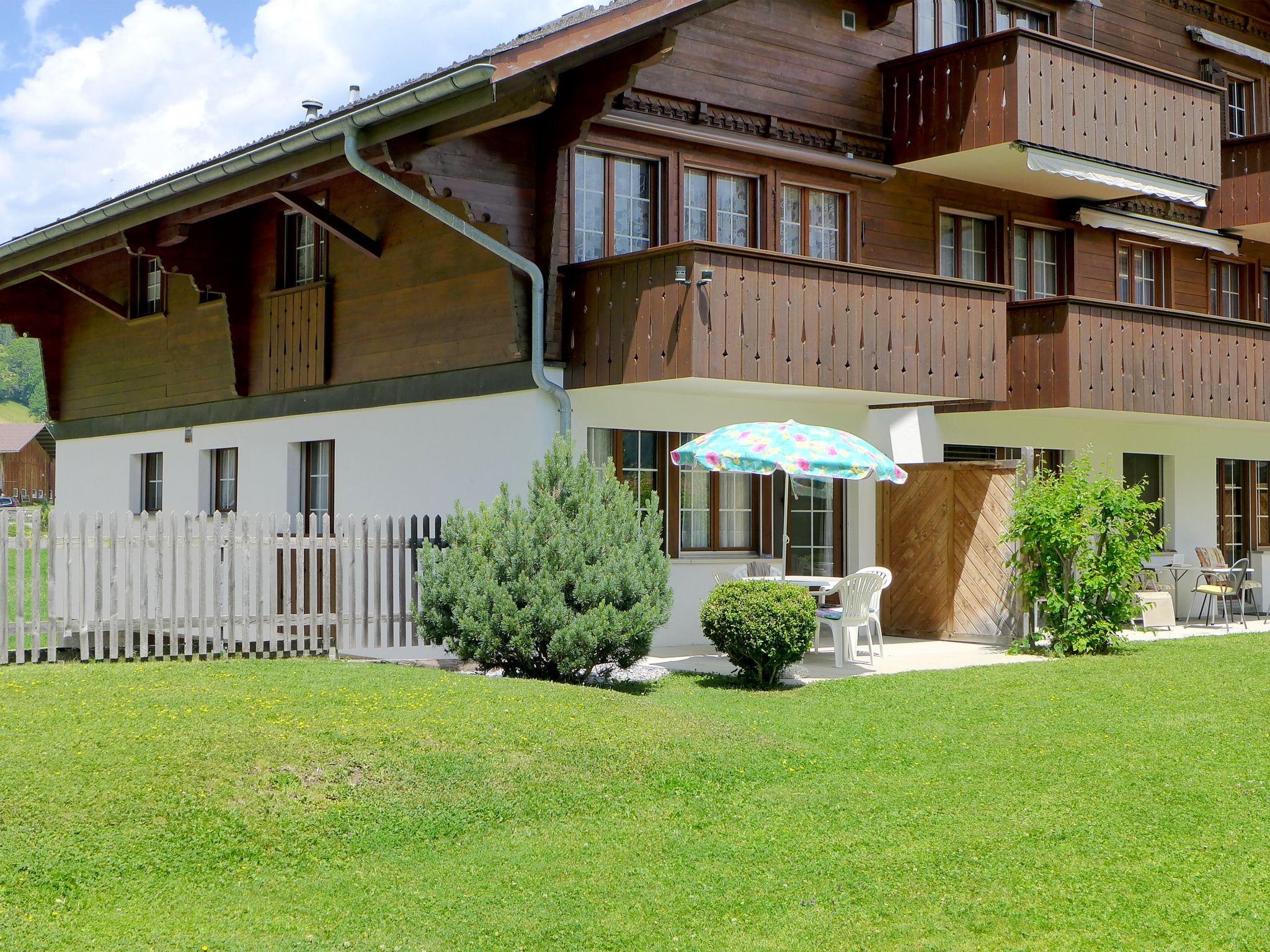 Apartment house "Simmental", 3 storeys, surrounded by fields. On the outskirts, 500 m from the centre of Zweisimmen, in a quiet, sunny position on a slope, in the countryside, south facing position. For shared use: well-kept garden, lawn for sunbathing. In the house: storage room for skis, central heating system. Single garage at the house. Shop 700 m, grocery 400 m, supermarket, restaurant, 10 minute walk to the centre, bus stop 50 m, railway station "Zweisimmen" 1 km, outdoor swimming pool 1.6 km. Golf course (18 hole) 10 km, tennis 1.2 km, walking paths from the house 50 m, gondola lift 1.3 km, skisport facilities 2 km, ski bus stop 50 m, sled run 8 km, cross country ski track 8 km. Nearby attractions: Gstaad 16 km, Glacier 3000, Lenk. Well-known ski regions can easily be reached: Rinderberg - Skiwelt Gstaad, Sparenmoos Langlaufparadies. Hiking paths: Naturschutzgebiet Sparenmoos.