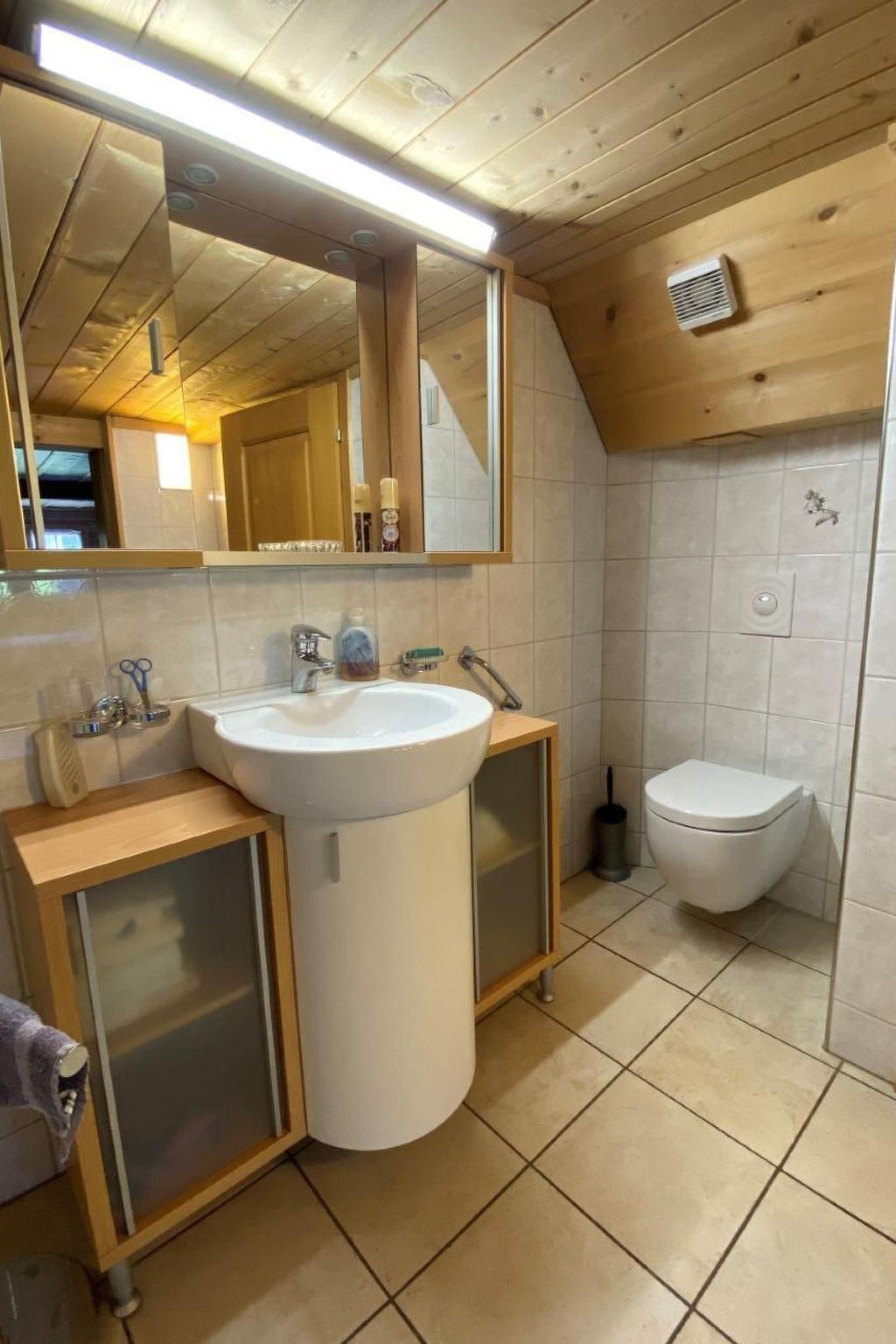 On the upper floor: lounge, bedroom with double bed, bedroom with 2 single beds, bathroom with washbasin / WC