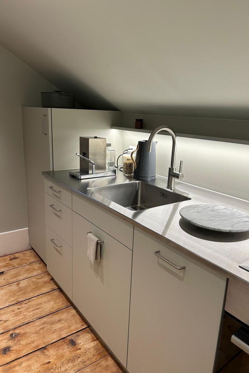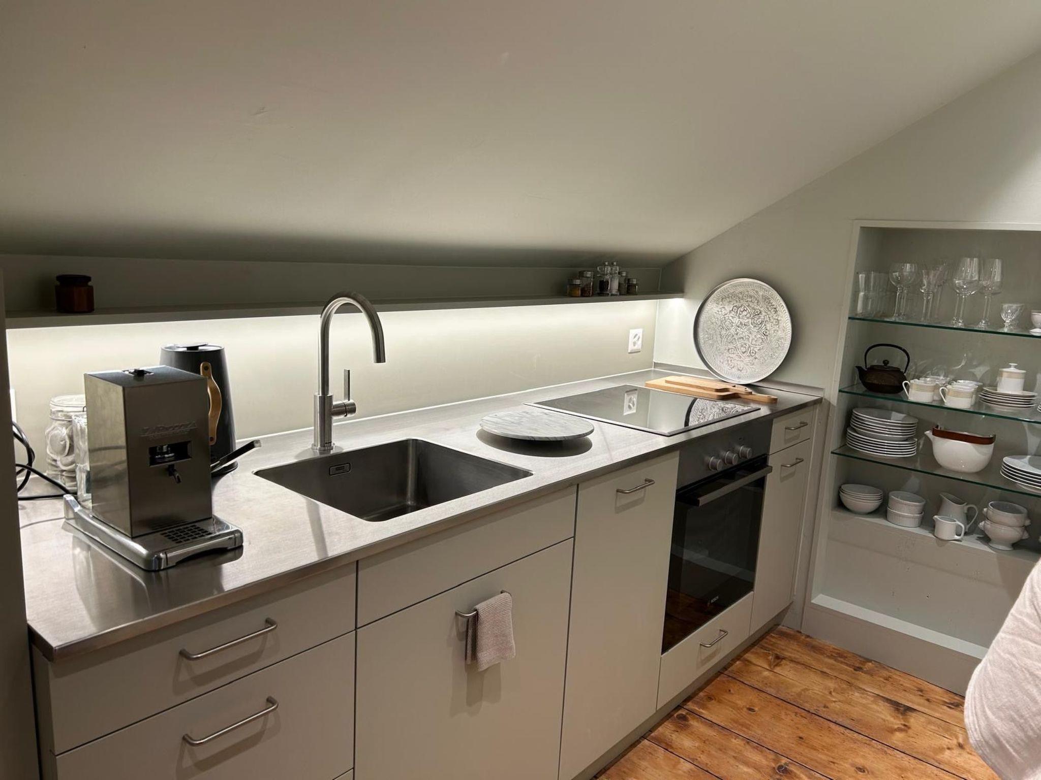 The functionally equipped kitchen has a 4-ring hob, a pod coffee machine, a kettle and a dishwasher - ideal for self-catering. There is also a washing machine for your sole use. The underfloor heating in the bathroom provides extra comfort, especially in the cooler months.