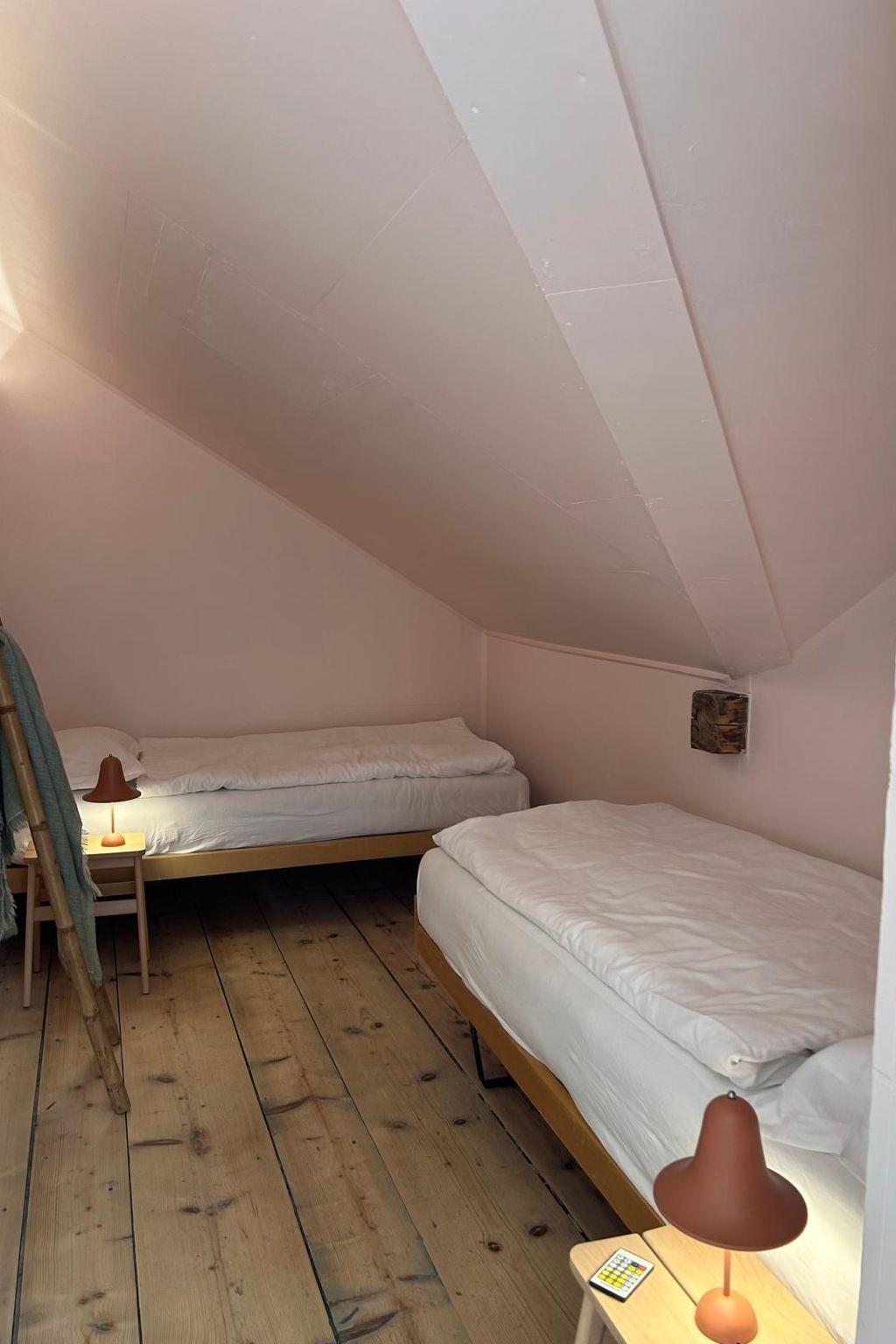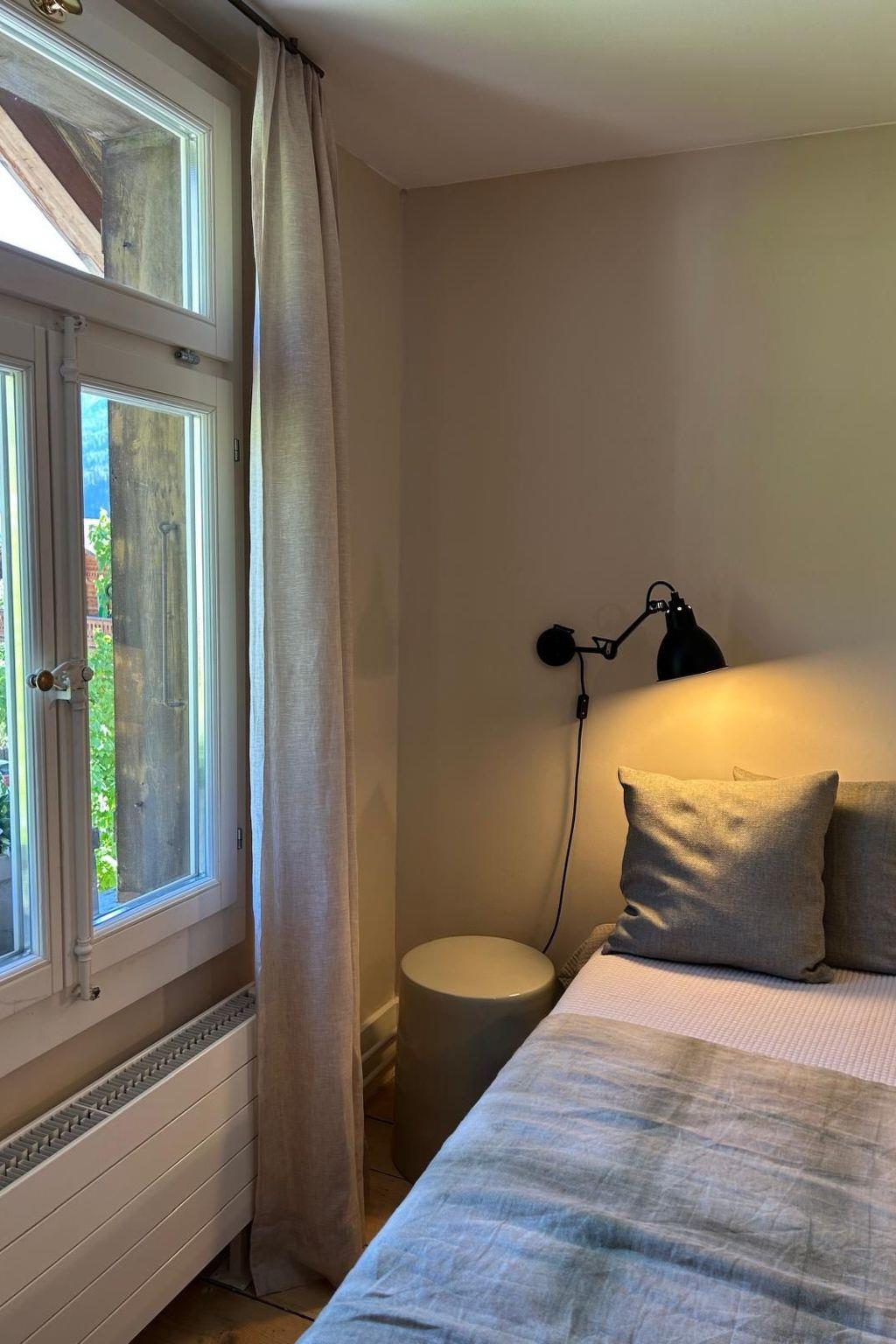 - A bedroom with two single beds, which does not have its own window, but receives daylight through the balcony door in the adjoining living room and also offers a pleasant feeling of space.