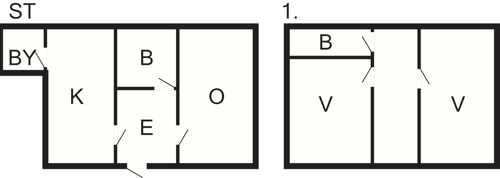 Stugan består av kök, vardagsrum samt badrum på plan ett. På plan två finns två sovrum, ett med dubbelsäng och ett med en enkelsäng och en våningssäng, samt en toalett.